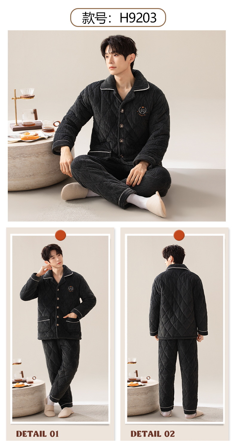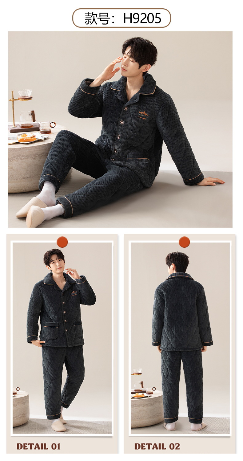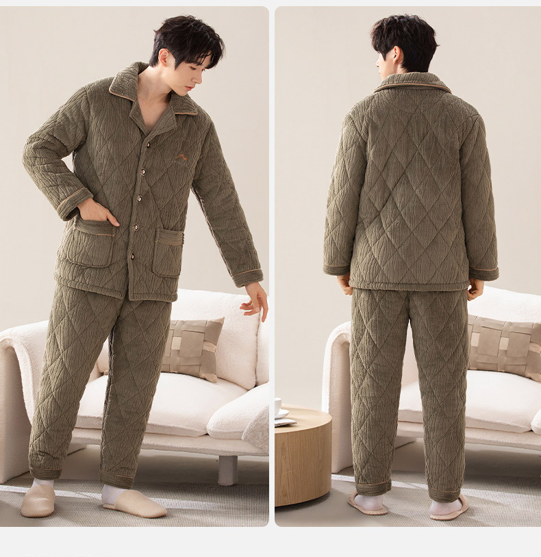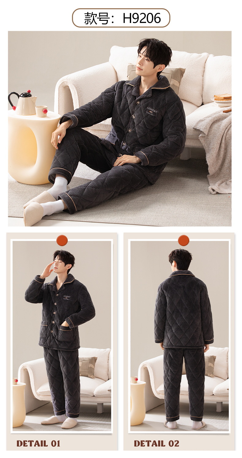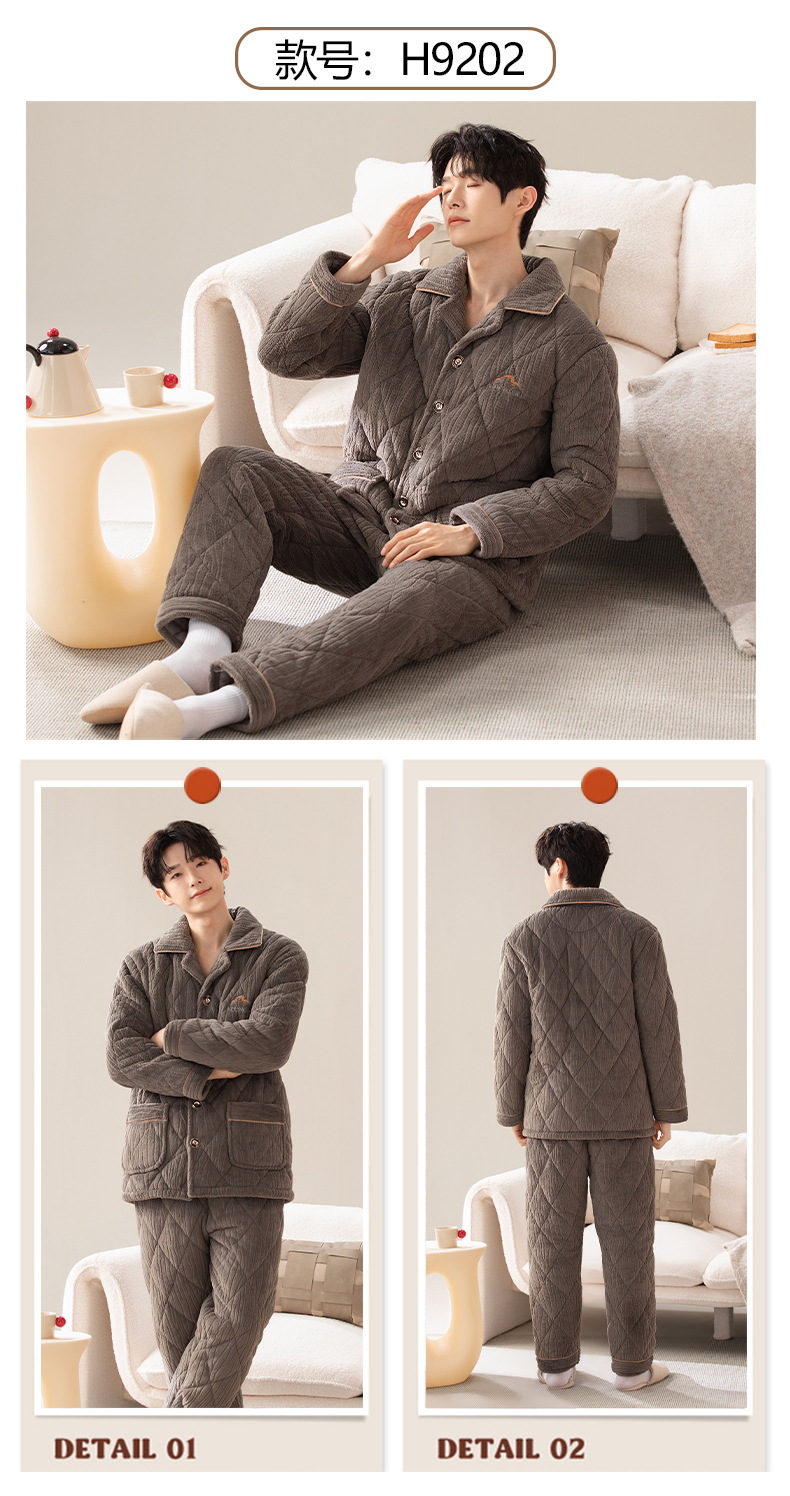 Pijamas de invierno para hombres de tres capas de algodón intercalado otoño y invierno juveniles para niños engrosados con un conjunto de ropa para el hogar de lana de coral