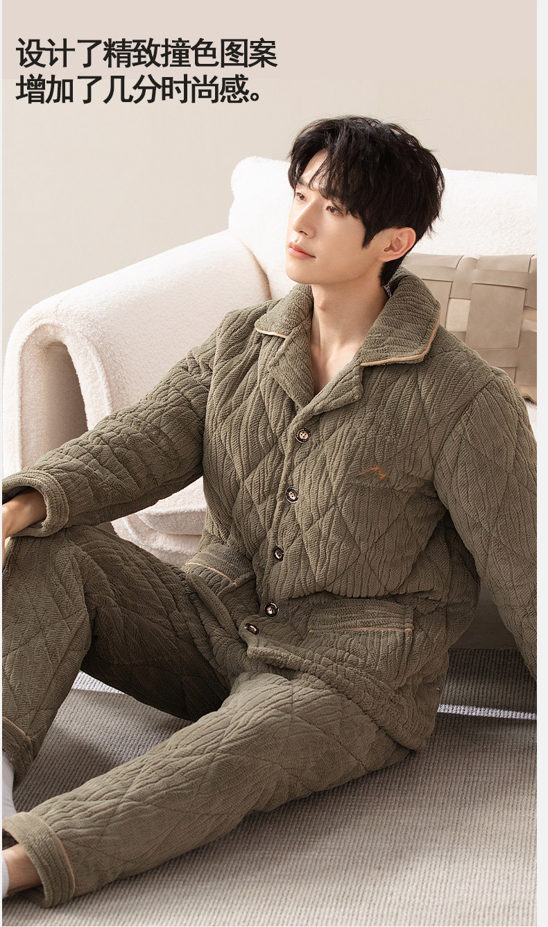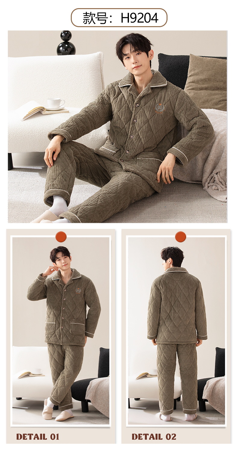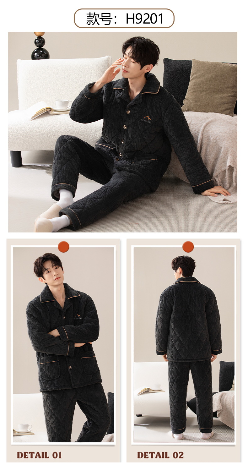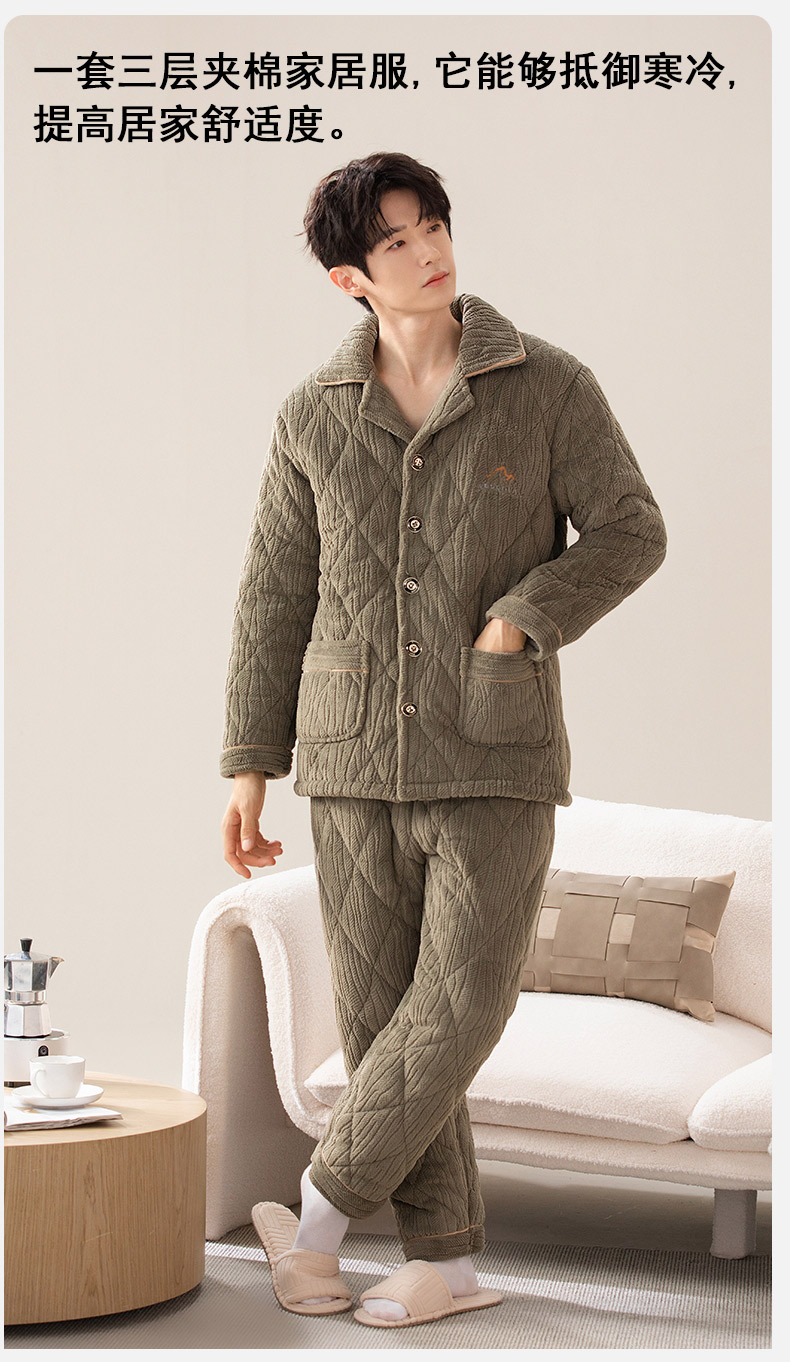 Pijamas de invierno para hombres de tres capas de algodón intercalado otoño y invierno juveniles para niños engrosados con un conjunto de ropa para el hogar de lana de coral