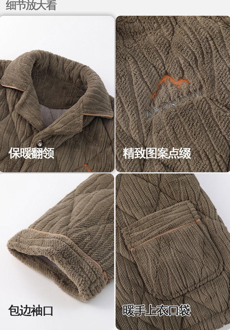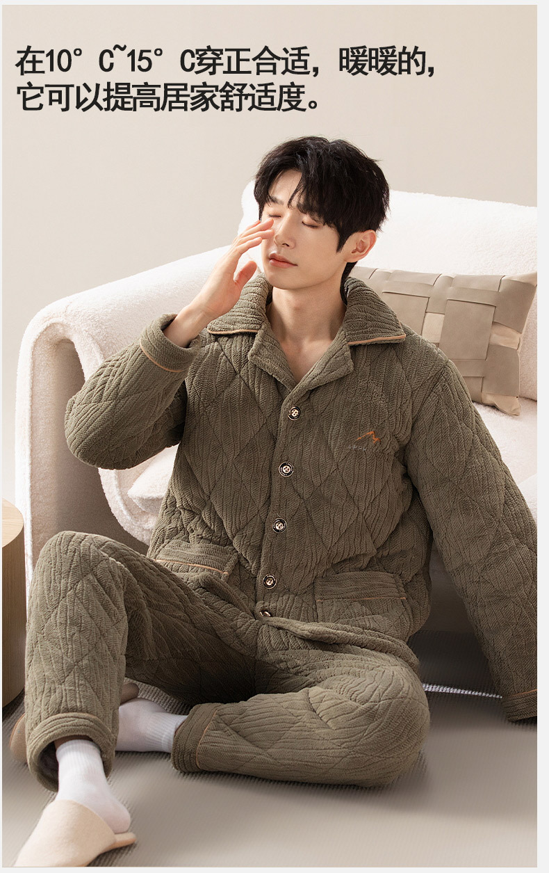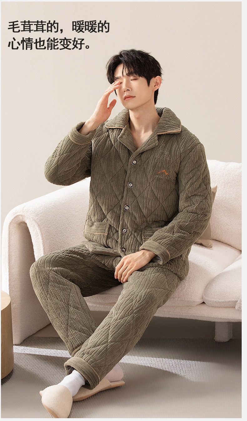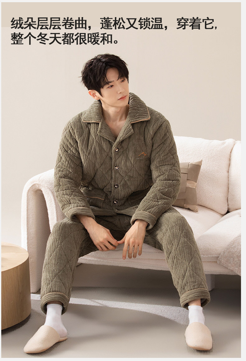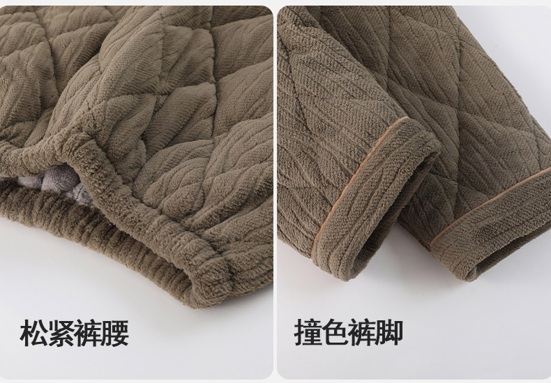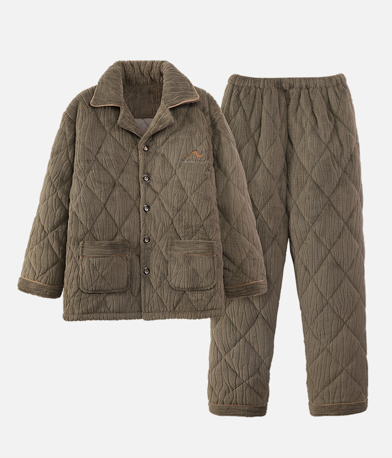 Pijamas de invierno para hombres de tres capas de algodón intercalado otoño y invierno juveniles para niños engrosados con un conjunto de ropa para el hogar de lana de coral