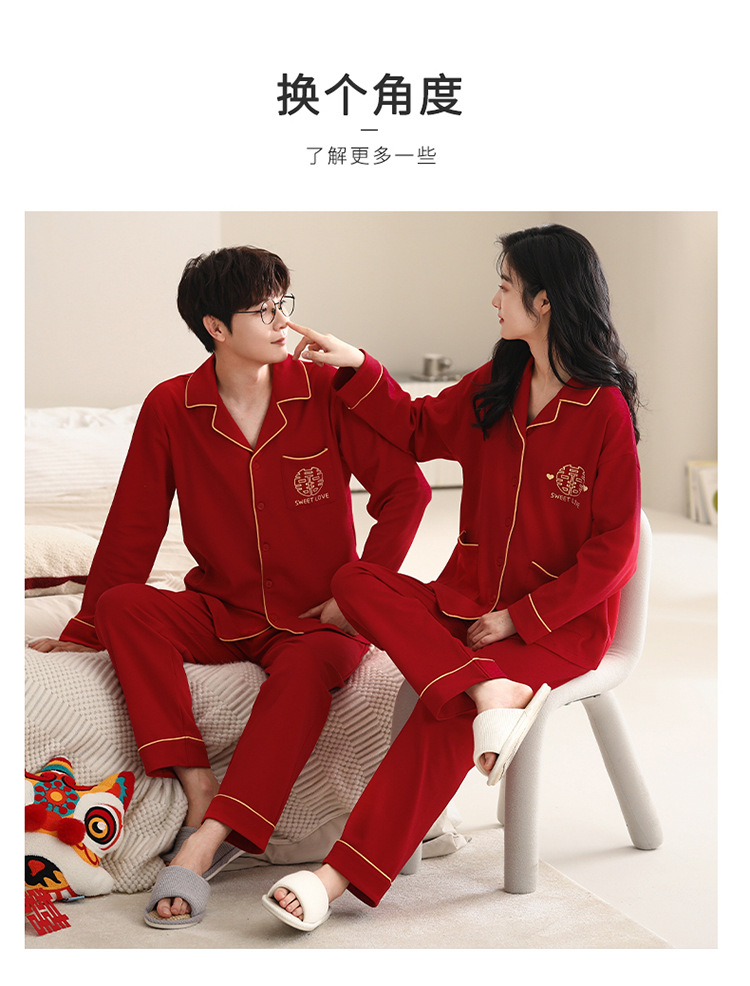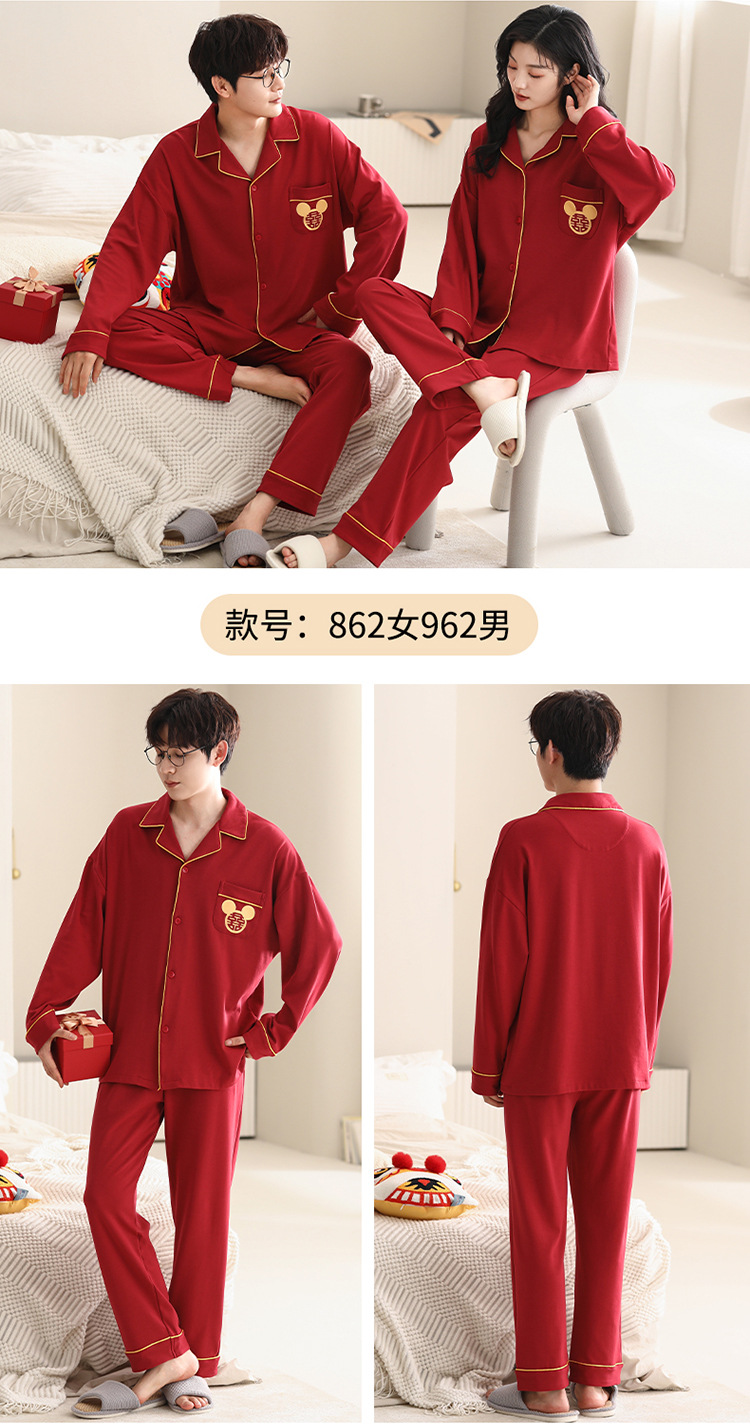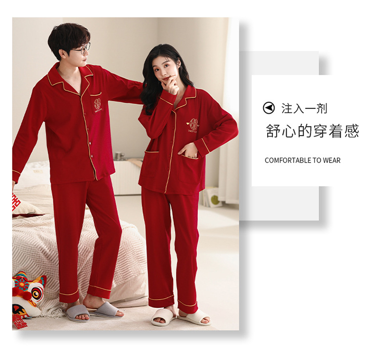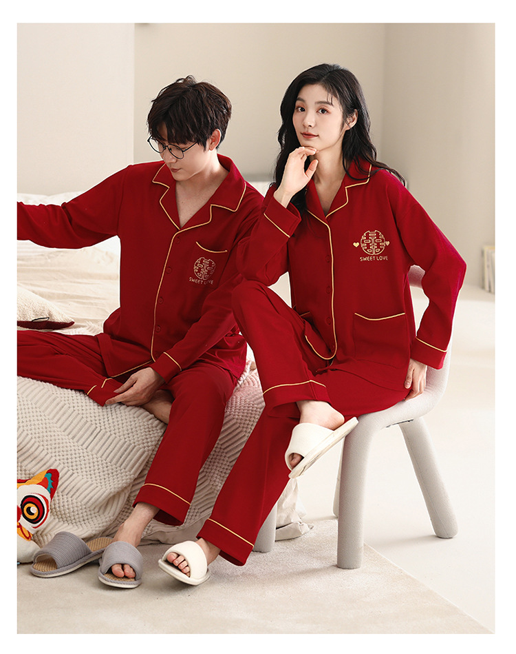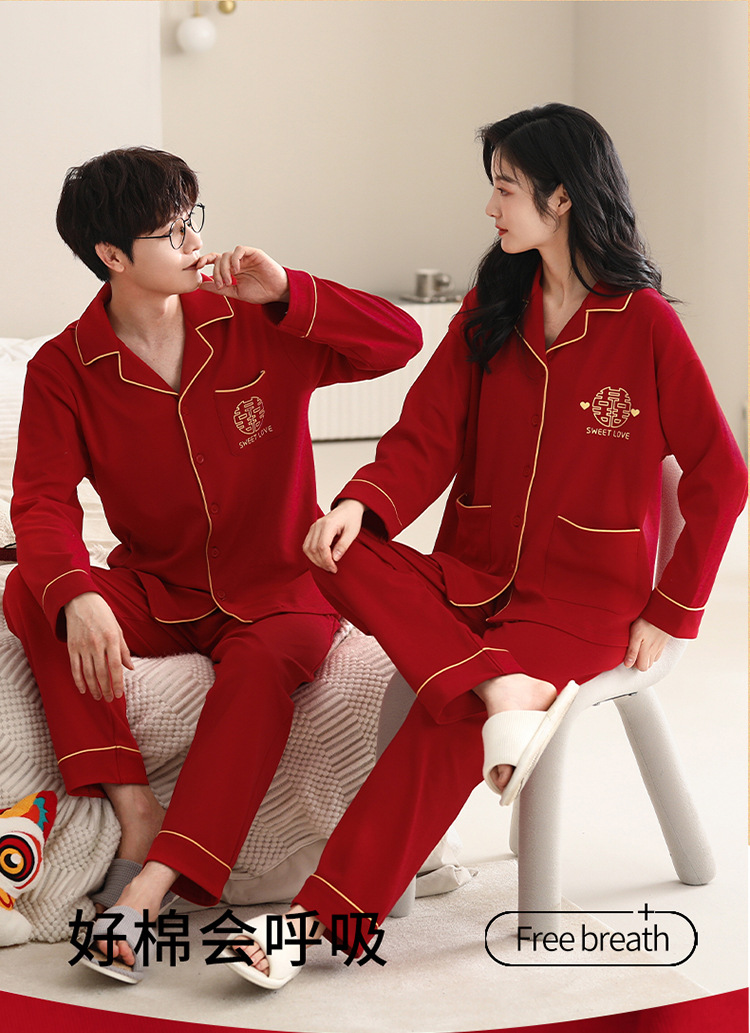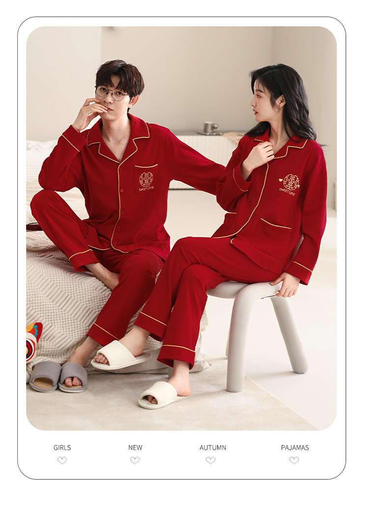 Pijamas de pareja traje de manga larga rojo Algodón mujer primavera y otoño boda de los hombres Otoño e Invierno año de nacimiento homewear