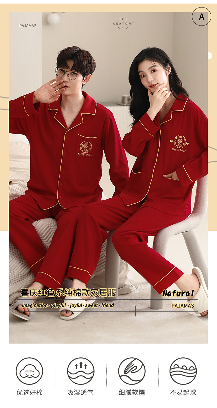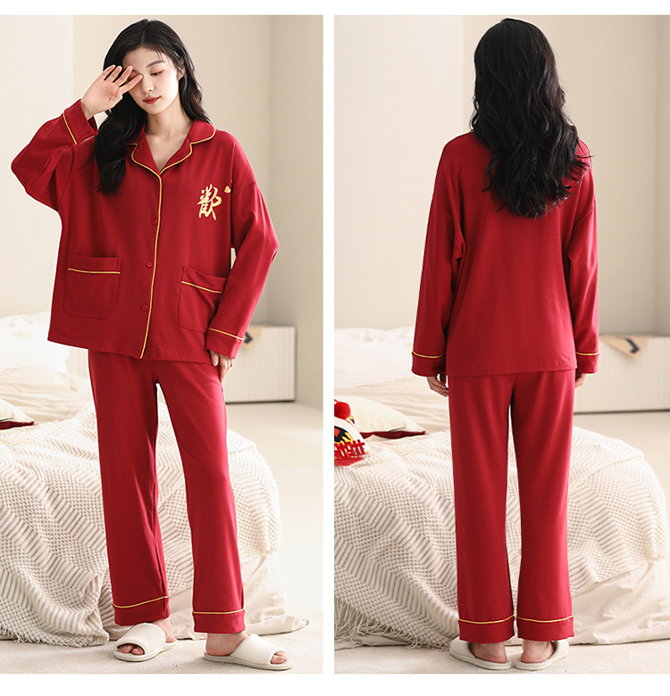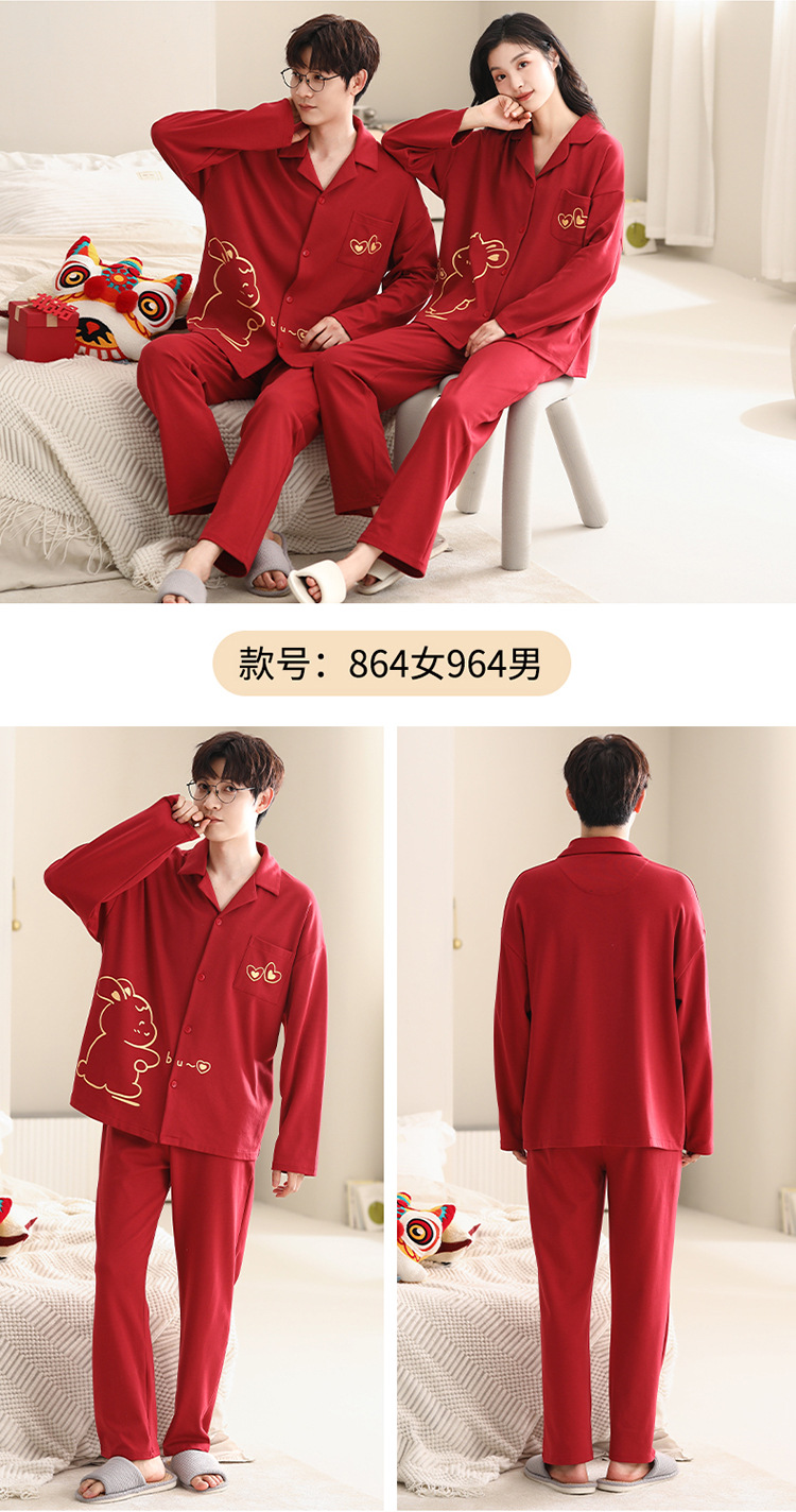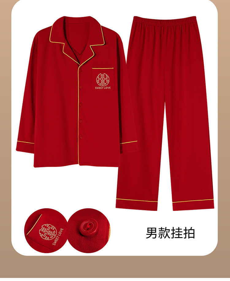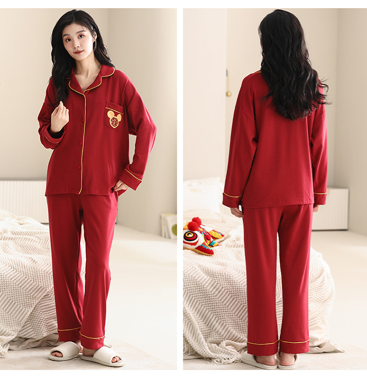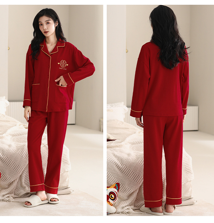 Pijamas de pareja traje de manga larga rojo Algodón mujer primavera y otoño boda de los hombres Otoño e Invierno año de nacimiento homewear