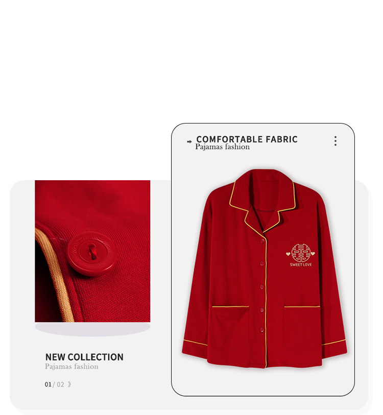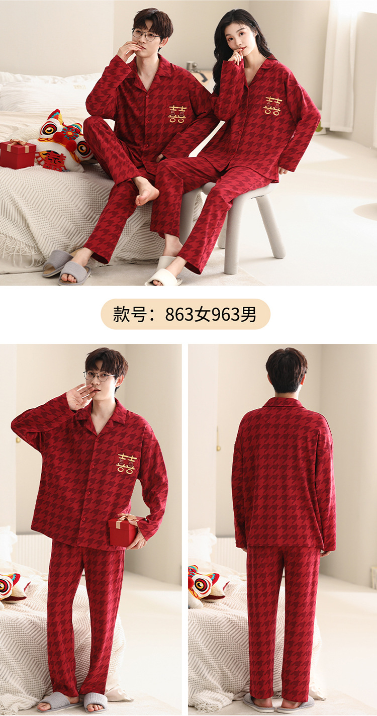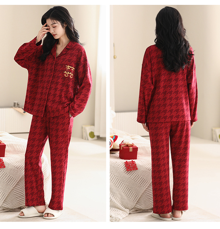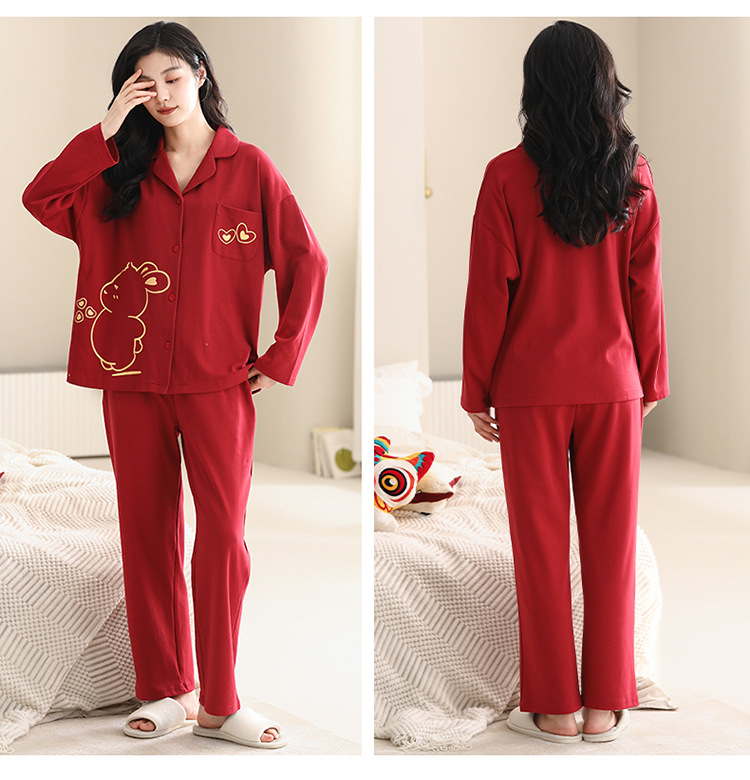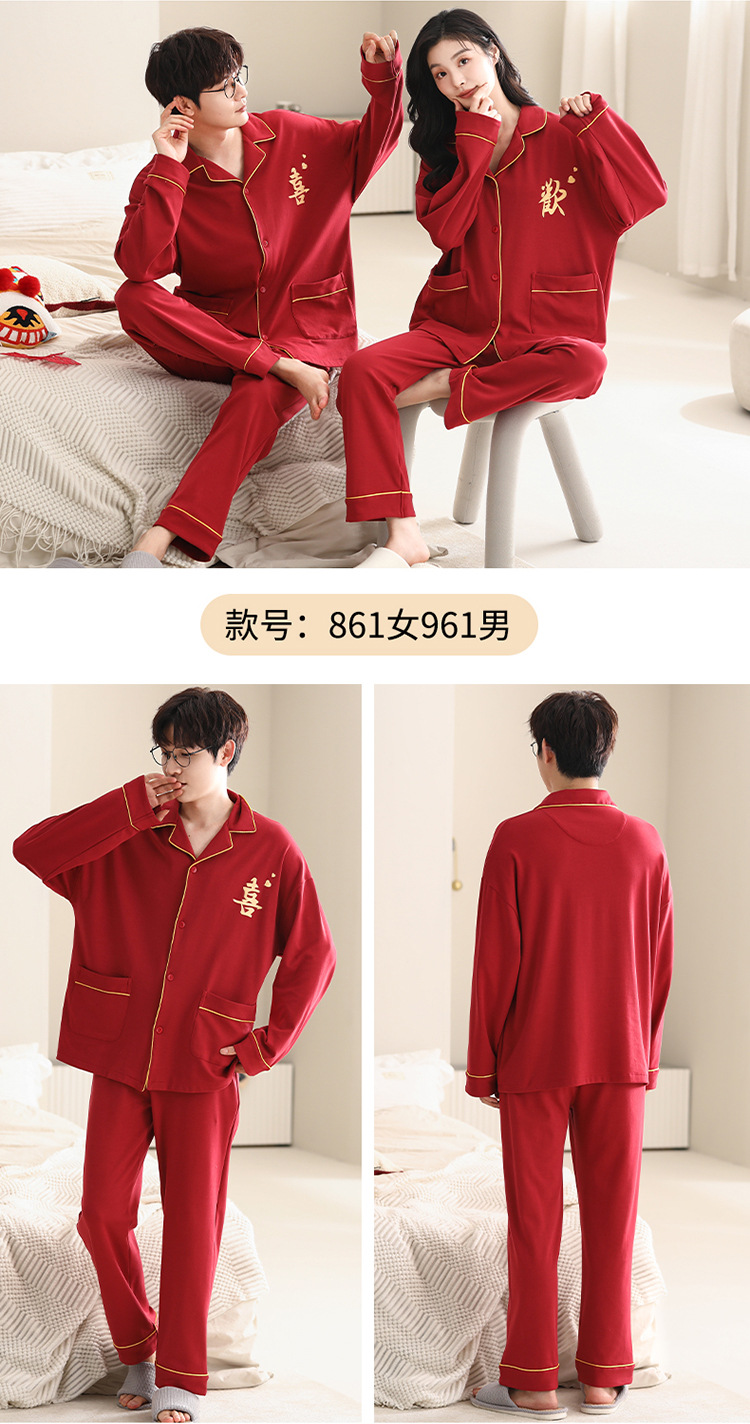 Pijamas de pareja traje de manga larga rojo Algodón mujer primavera y otoño boda de los hombres Otoño e Invierno año de nacimiento homewear