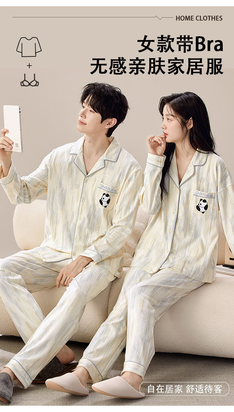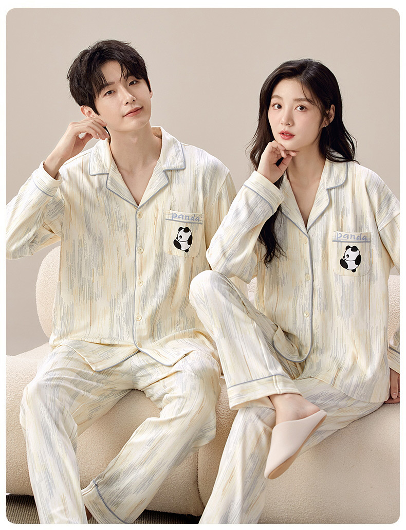 Pajama de pareja de primavera y otoño de mujeres Cardigan cuello casual suelto invierno hombre grande conjunto de ropa de casa se puede usar fuera