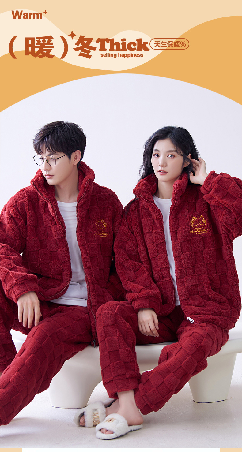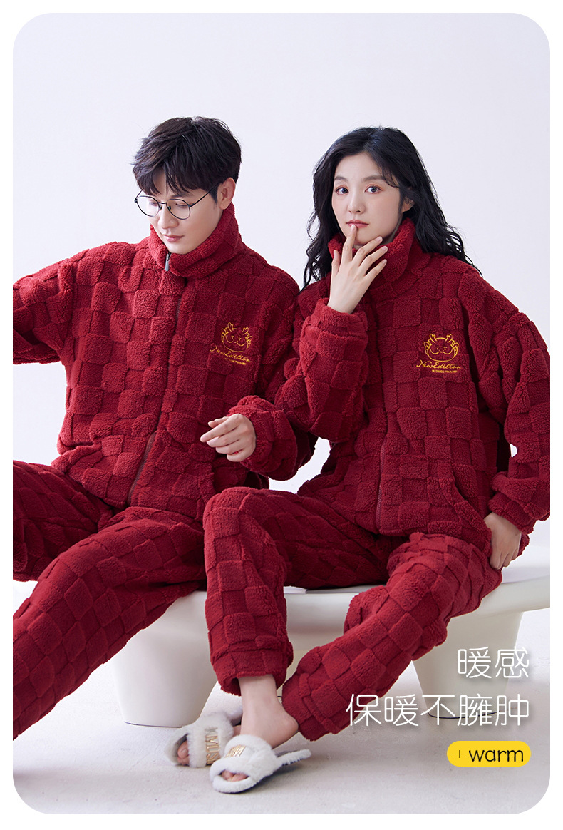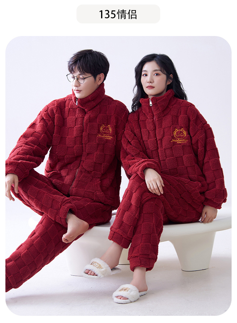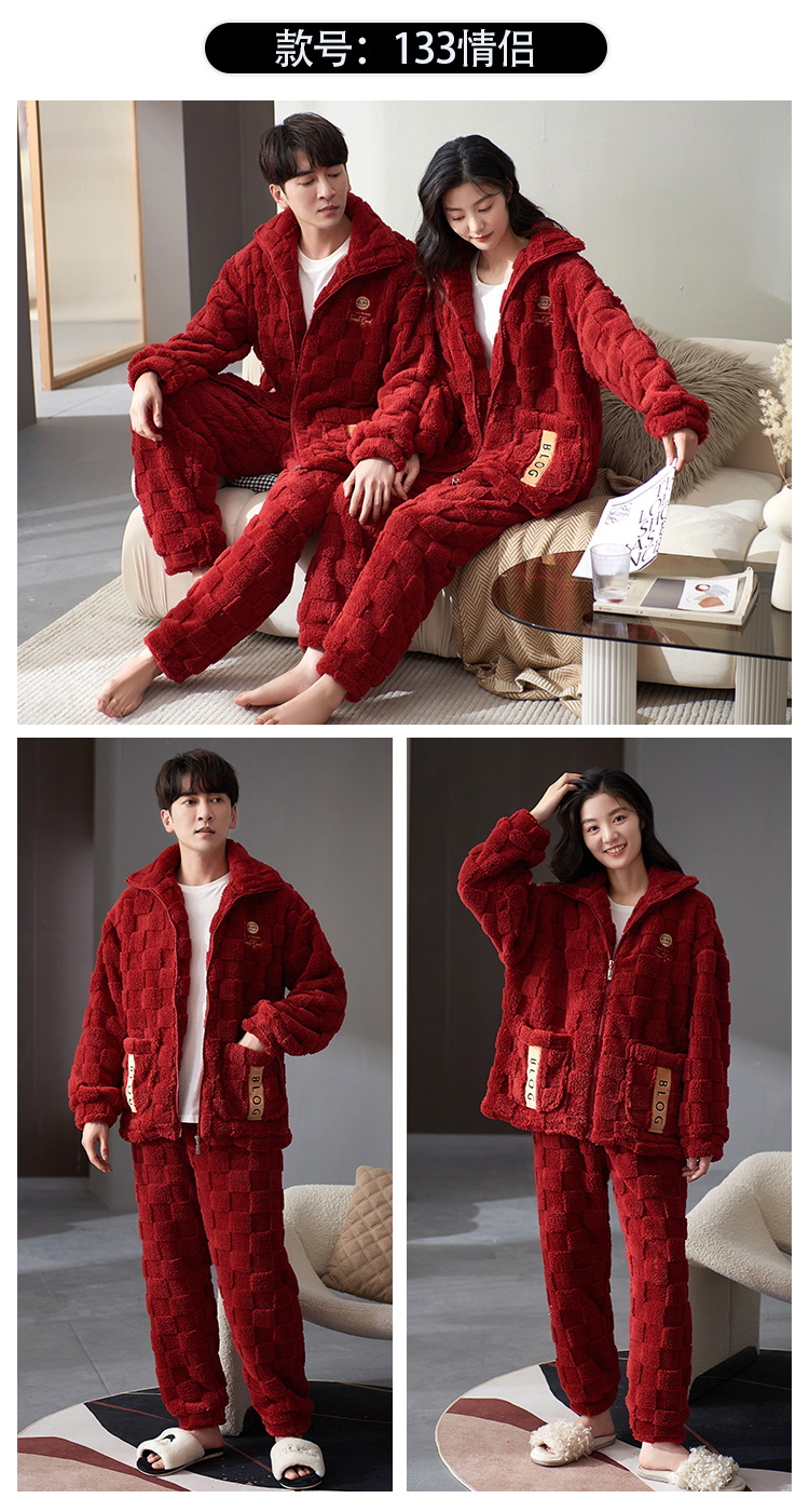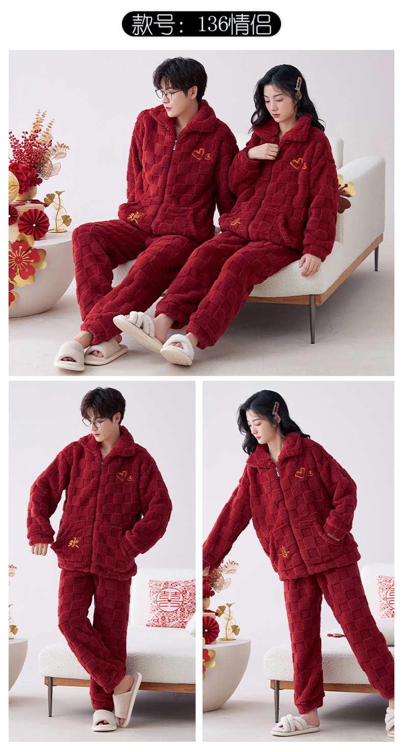 Boda boda roja engrosada de lana forrada de franela pijamas de invierno de las mujeres de coral suelto de lana pareja Pijamas