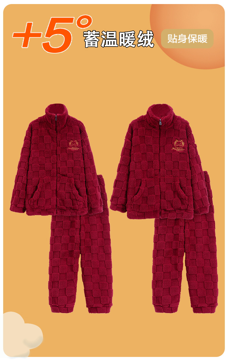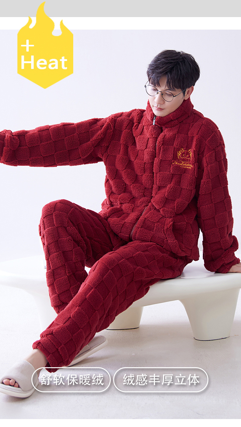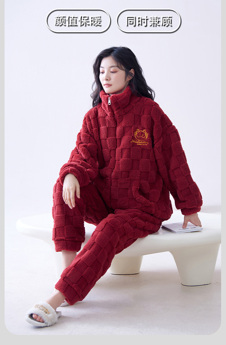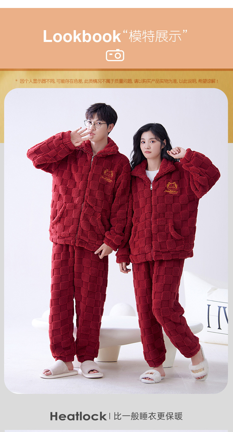 Boda boda roja engrosada de lana forrada de franela pijamas de invierno de las mujeres de coral suelto de lana pareja Pijamas