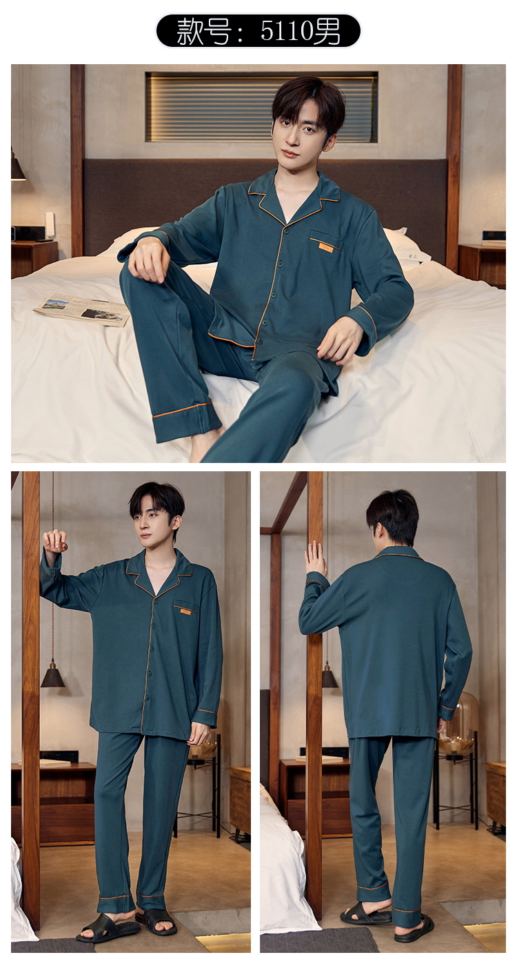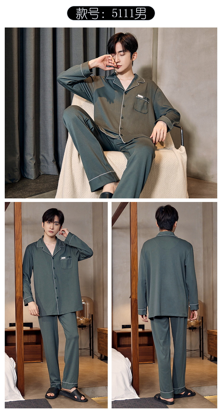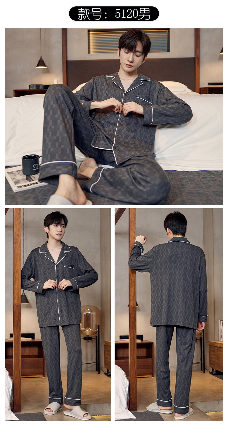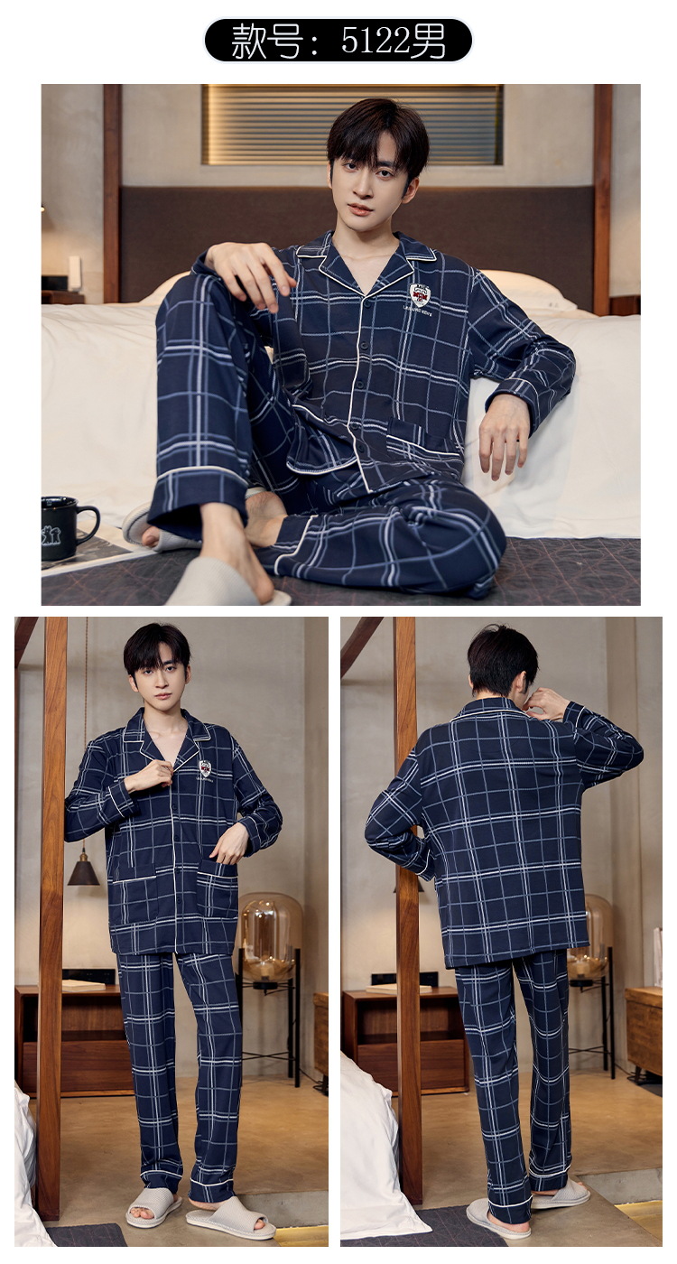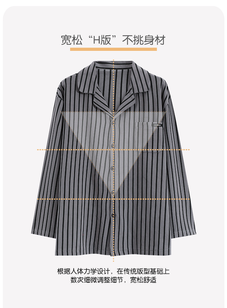 Pijamas de algodón para hombres otoño nuevos pantalones de manga larga Chaqueta de punto solapa traje de hombre casual a rayas simple ropa para el hogar