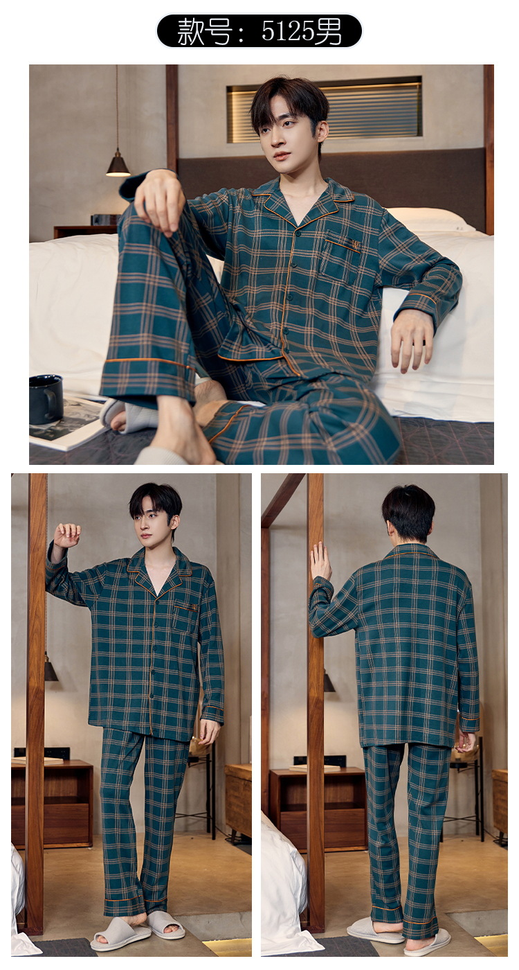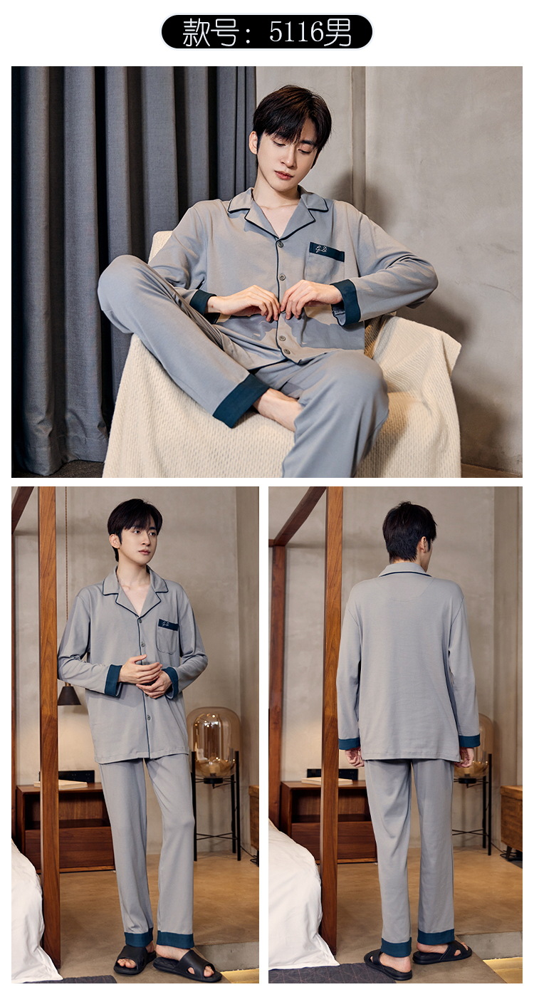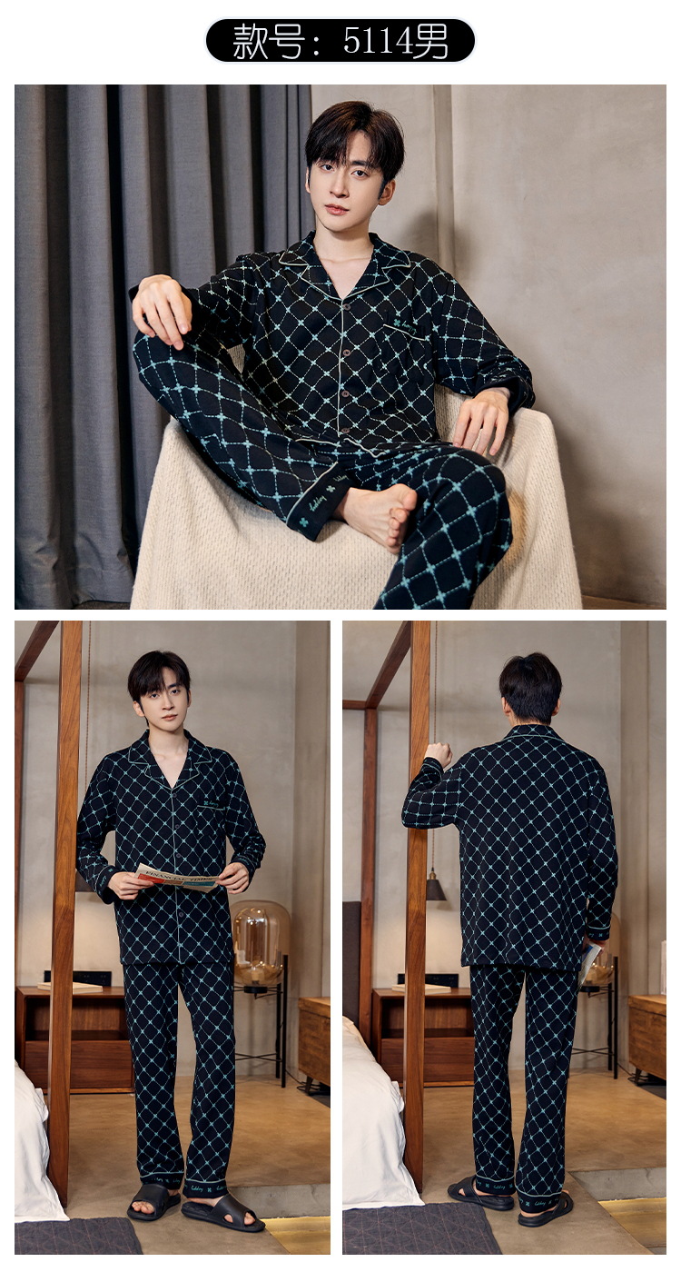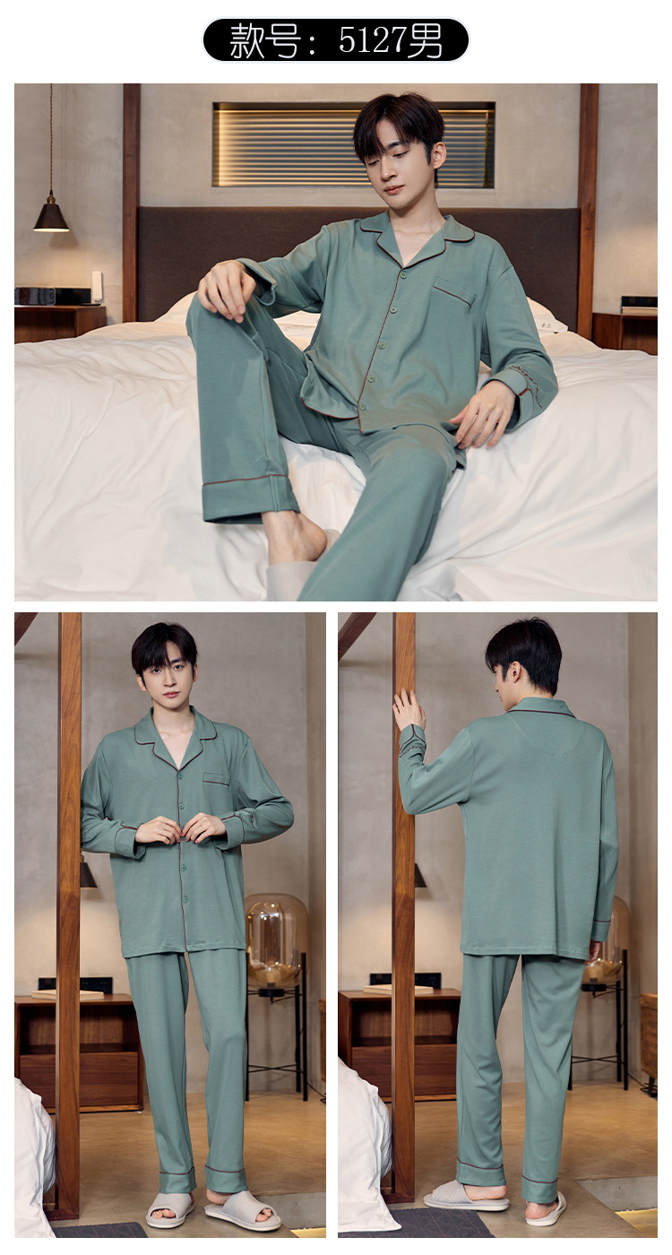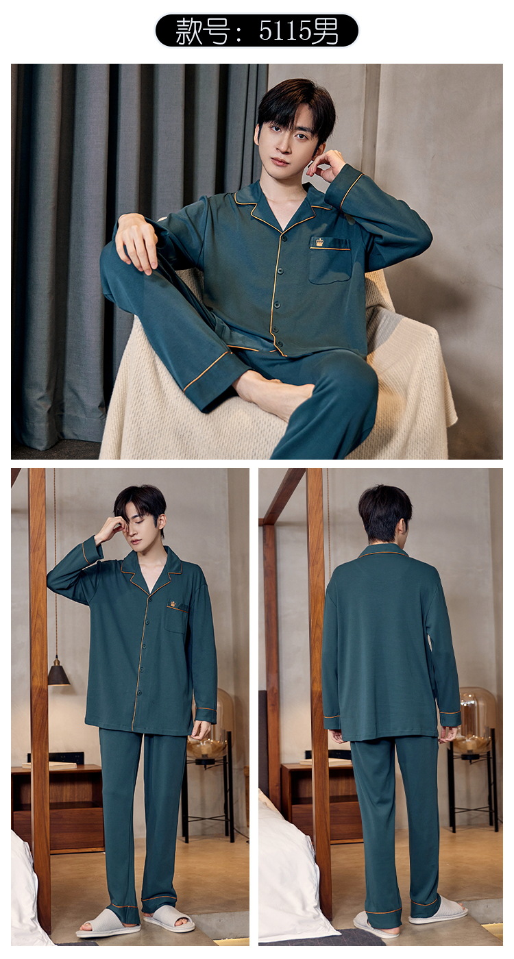 Pijamas de algodón para hombres otoño nuevos pantalones de manga larga Chaqueta de punto solapa traje de hombre casual a rayas simple ropa para el hogar