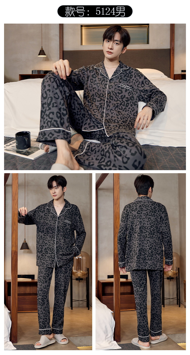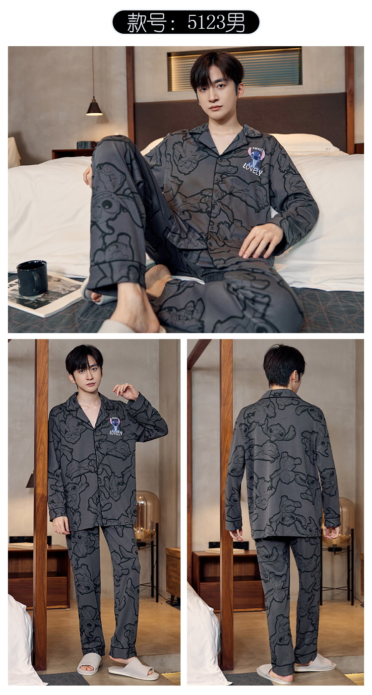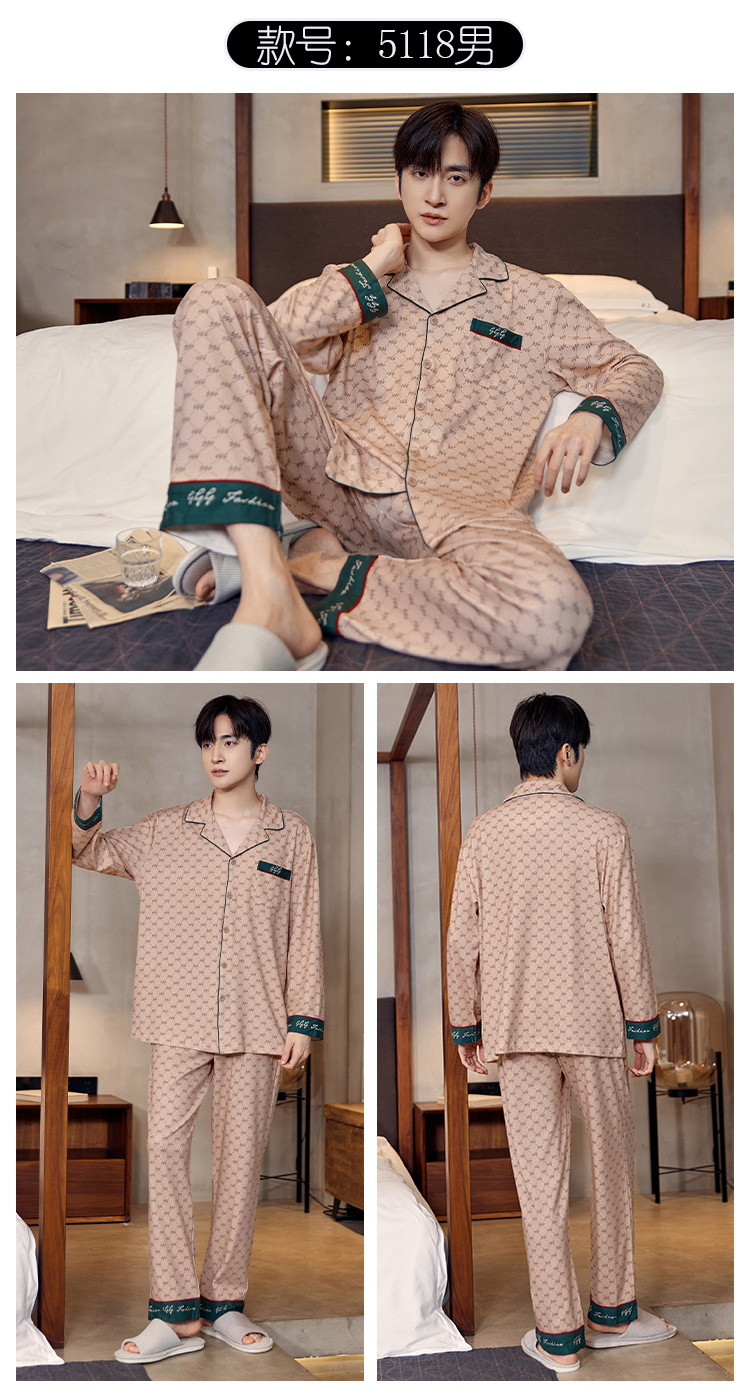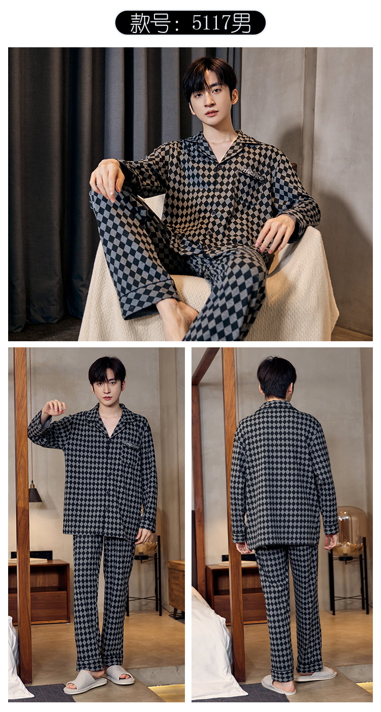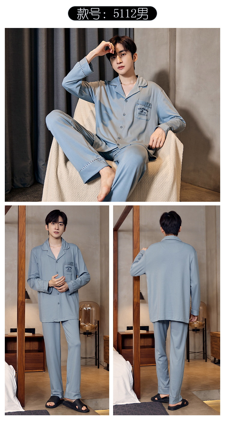 Pijamas de algodón para hombres otoño nuevos pantalones de manga larga Chaqueta de punto solapa traje de hombre casual a rayas simple ropa para el hogar