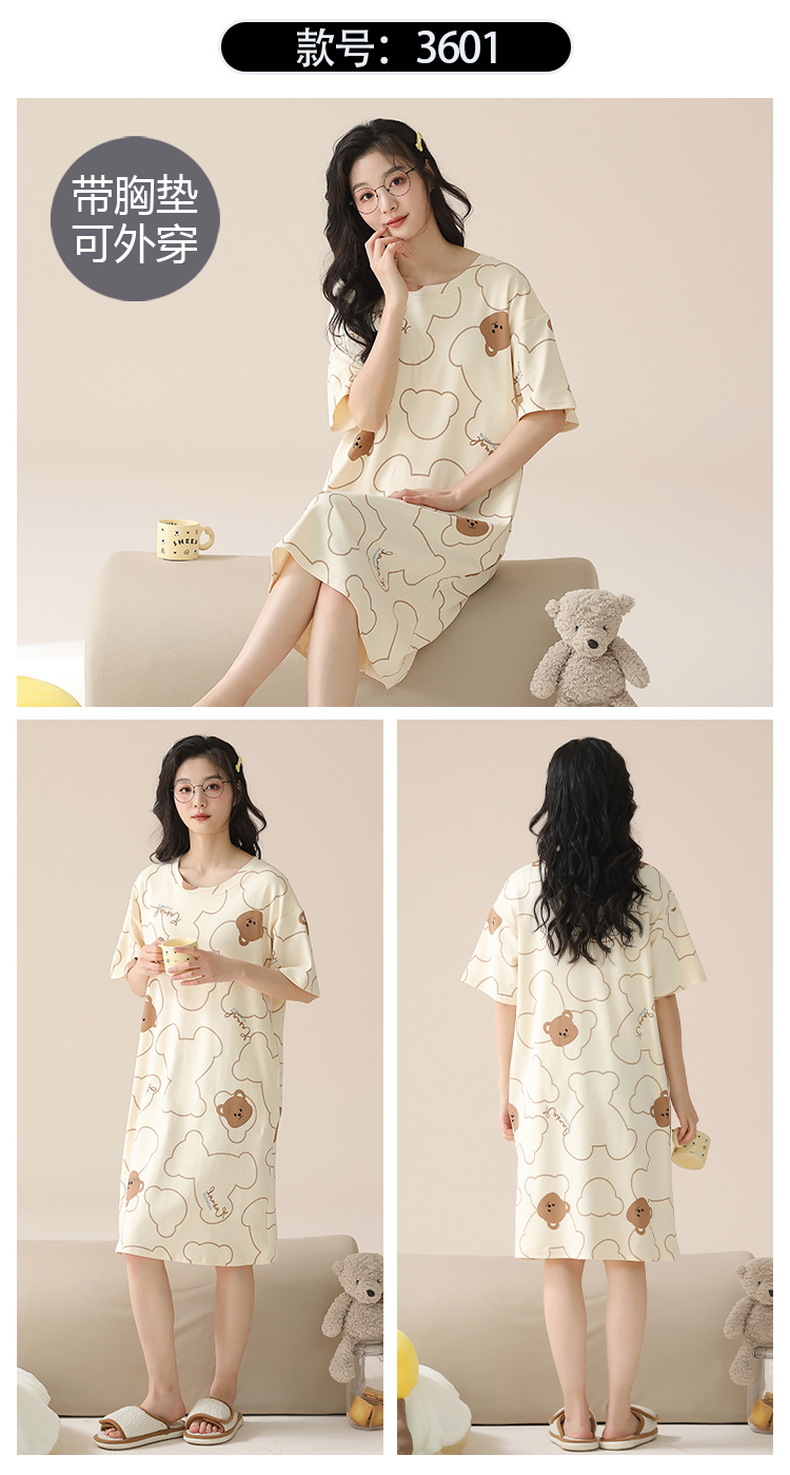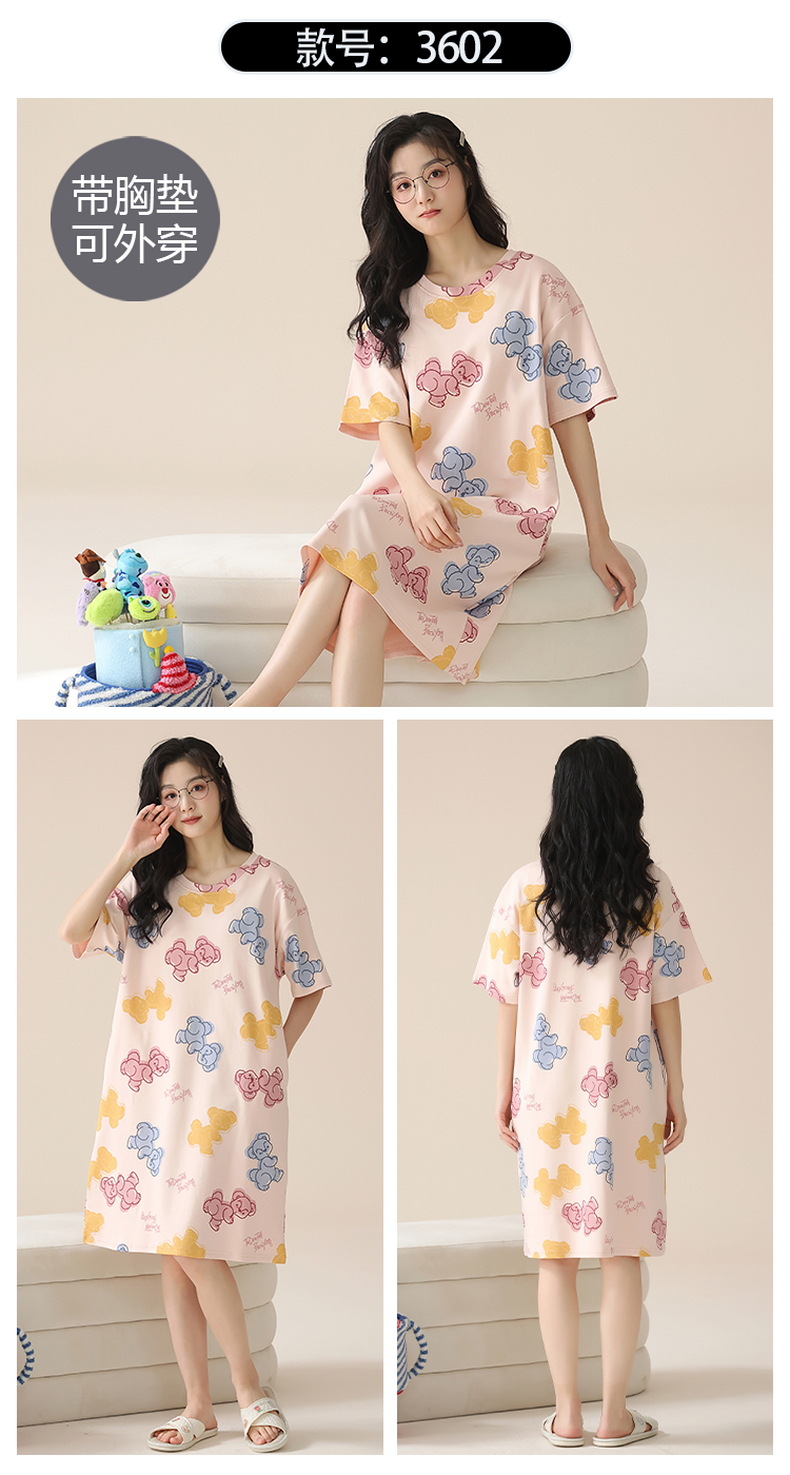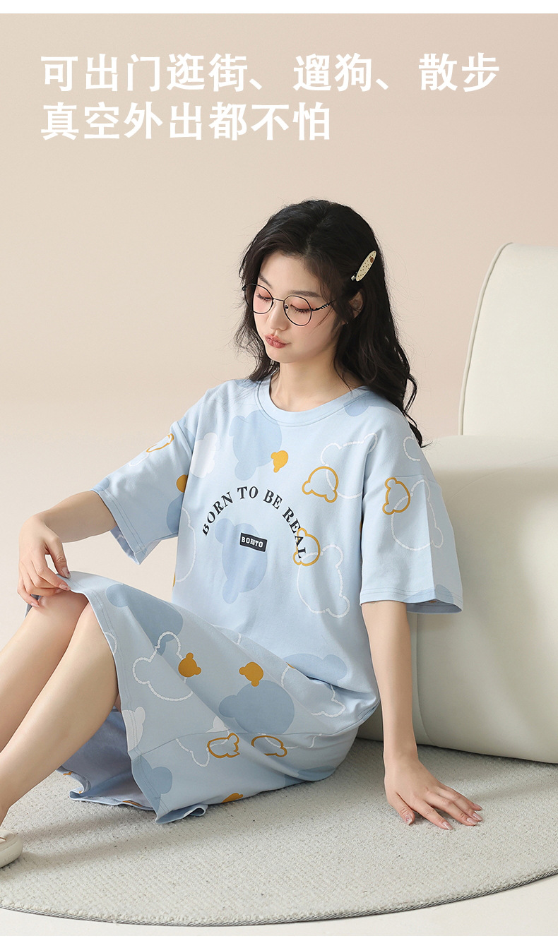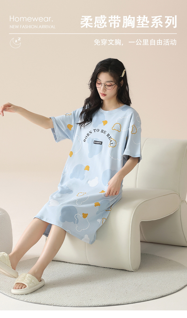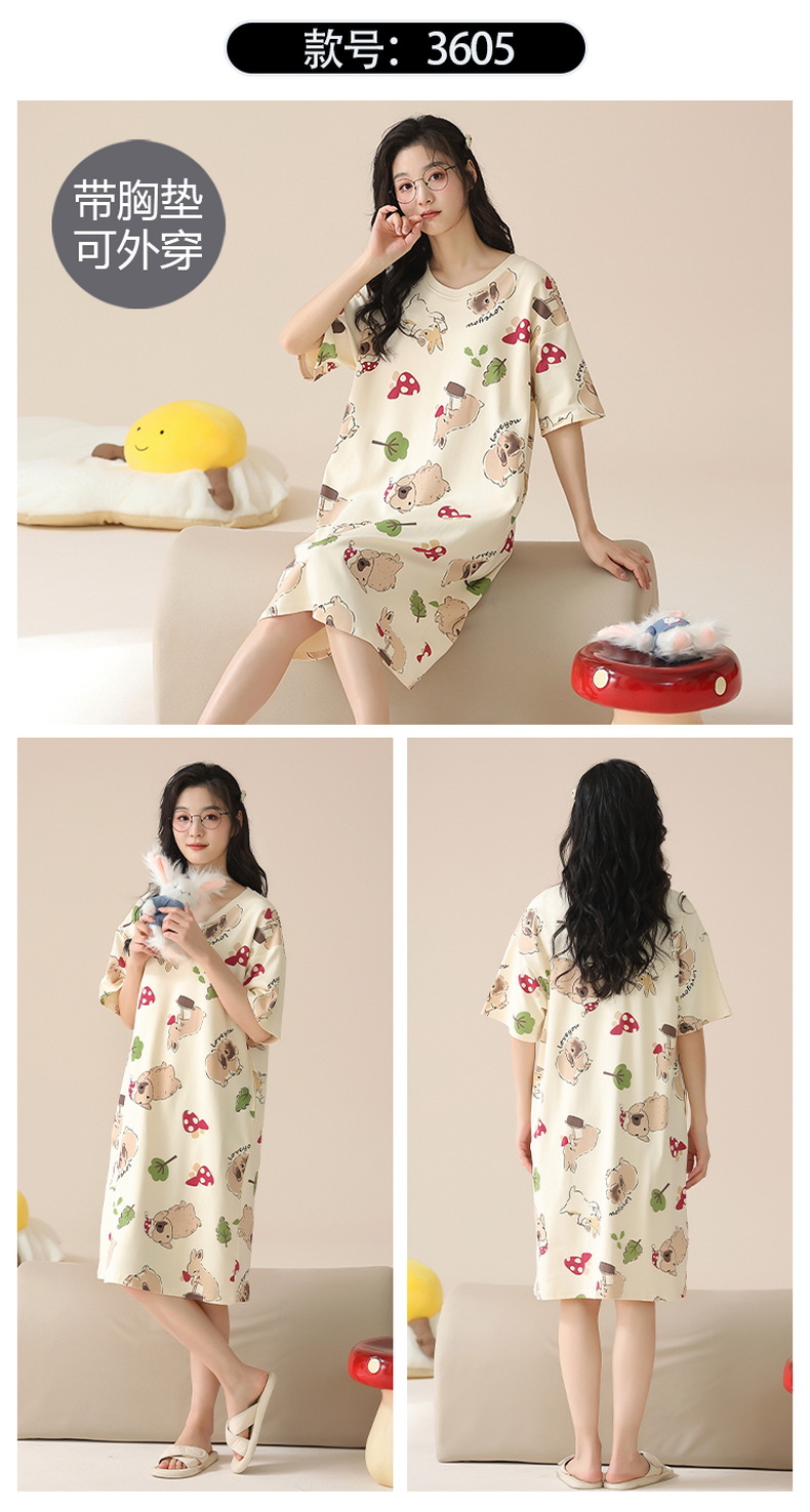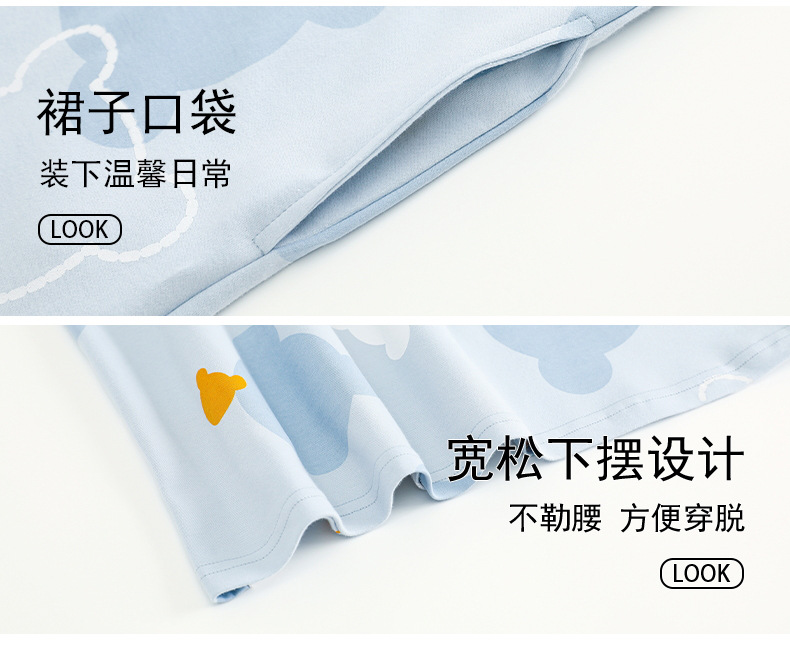 2024 verano corbata redonda cojín en el pecho pijama mujer camisón de dibujos animados estampado de manga corta se puede usar falda delgada de longitud media para niña