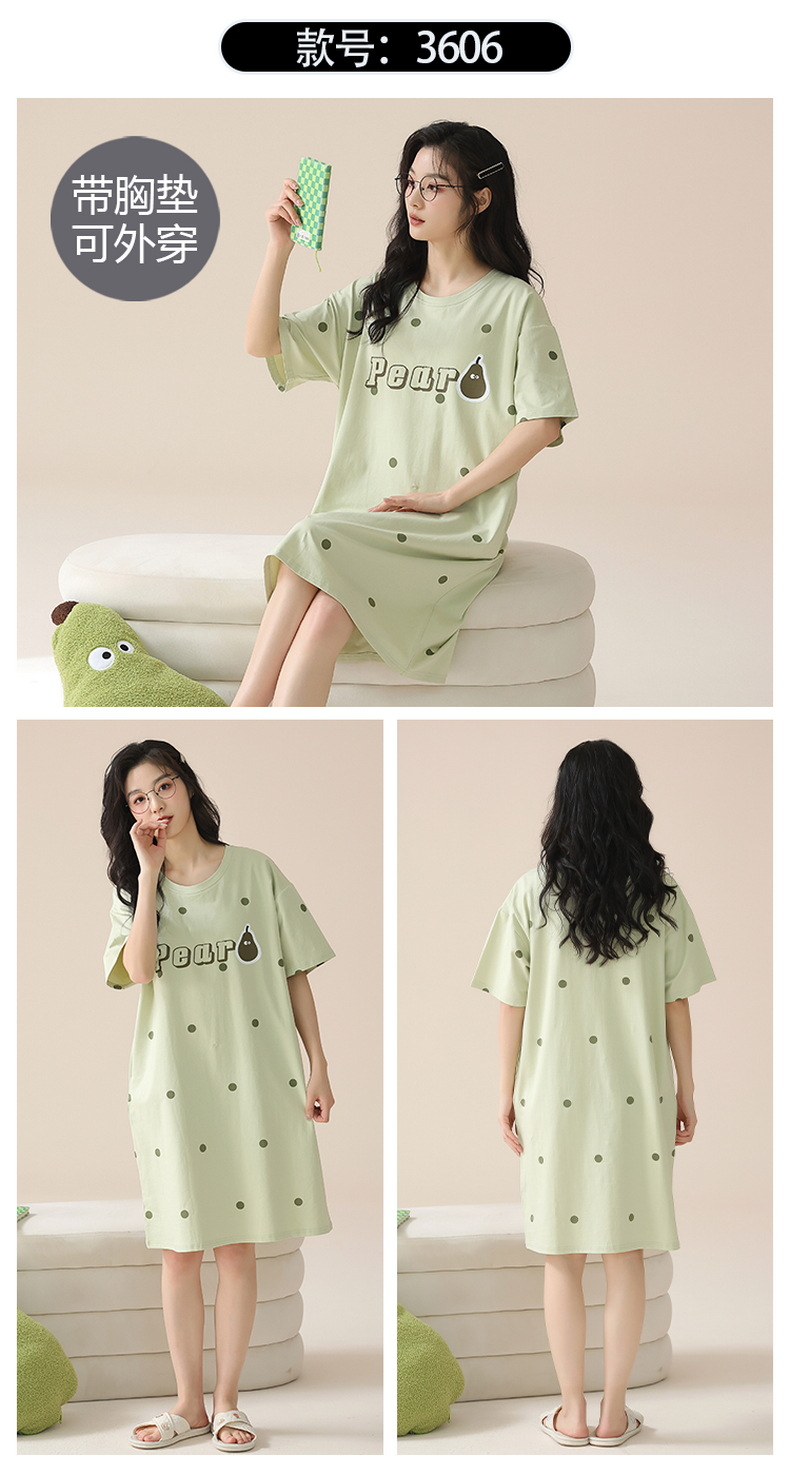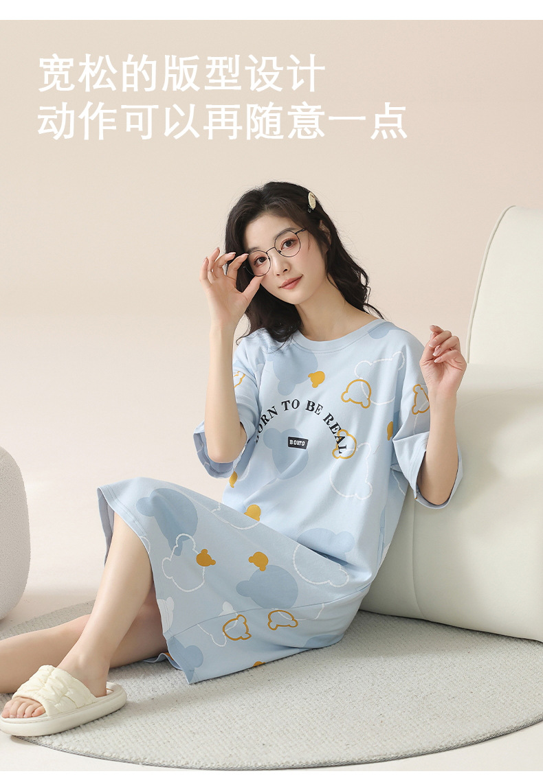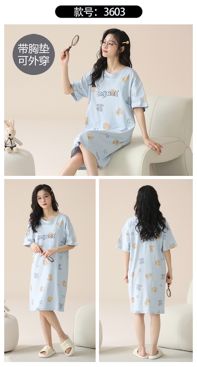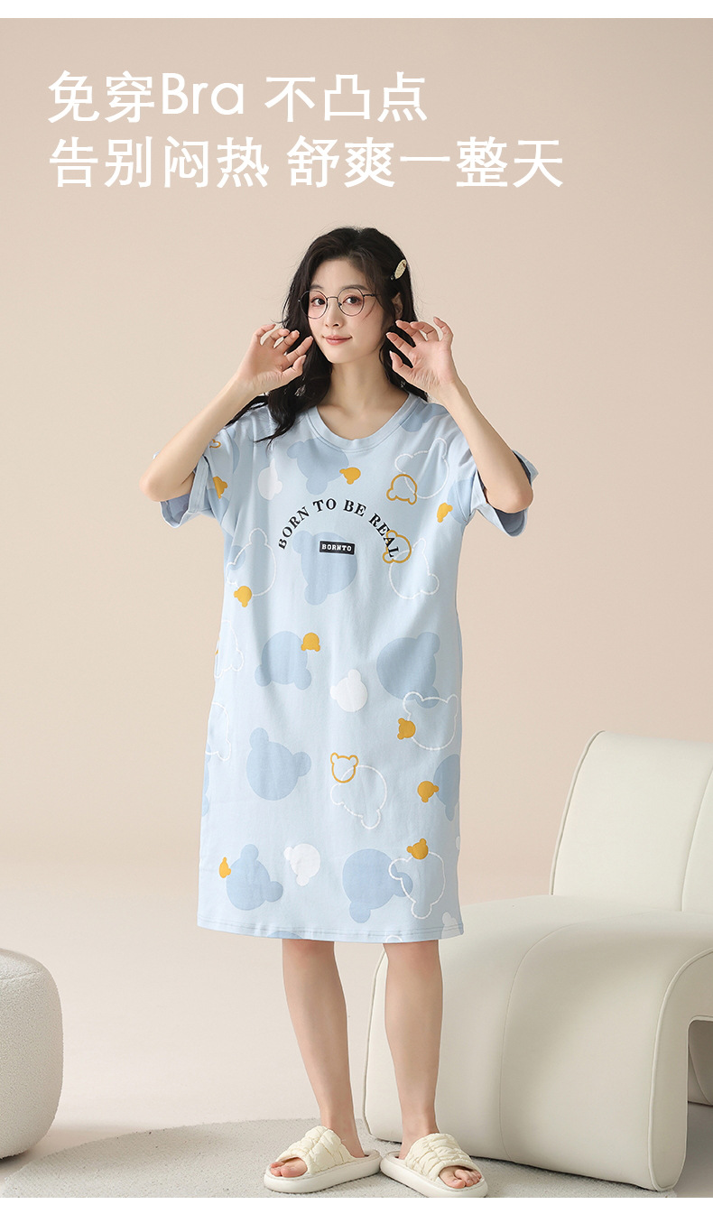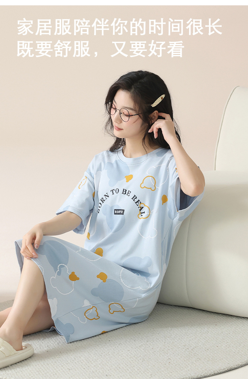 2024 verano corbata redonda cojín en el pecho pijama mujer camisón de dibujos animados estampado de manga corta se puede usar falda delgada de longitud media para niña