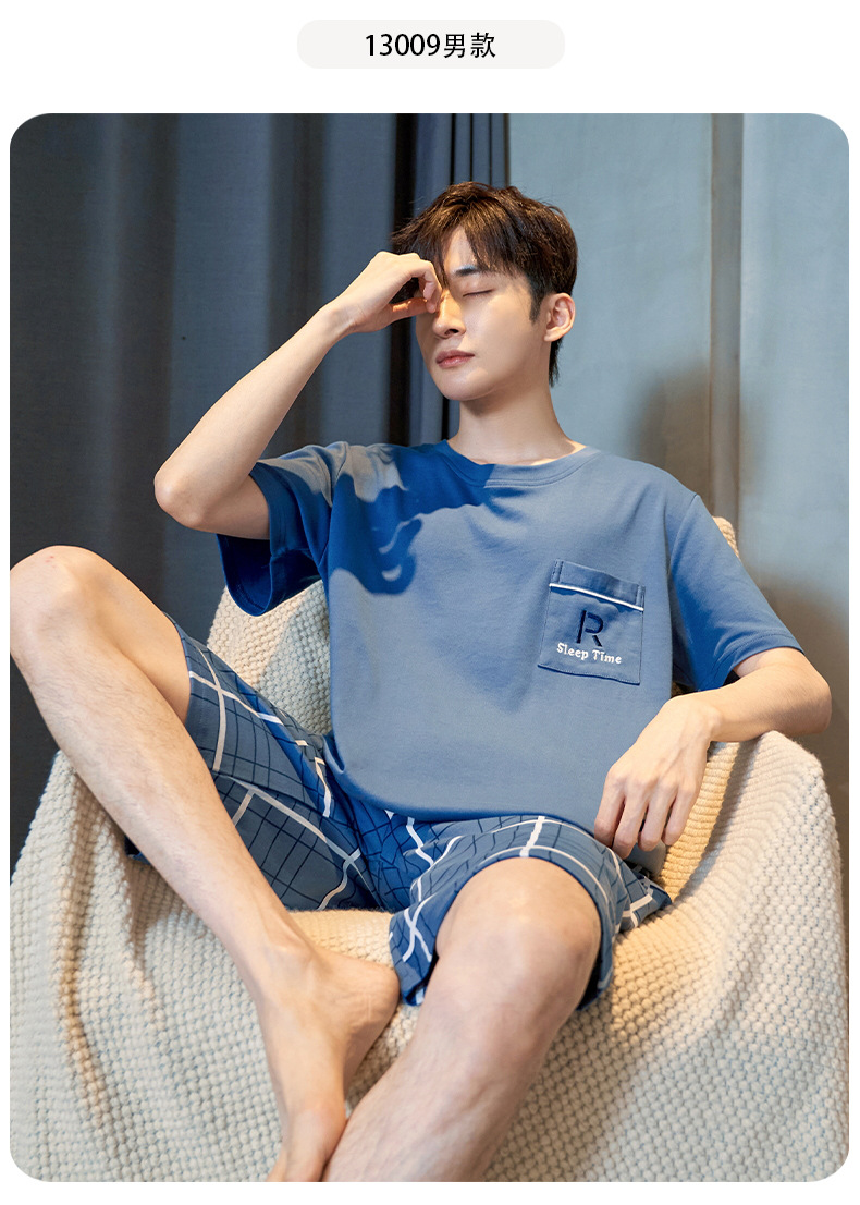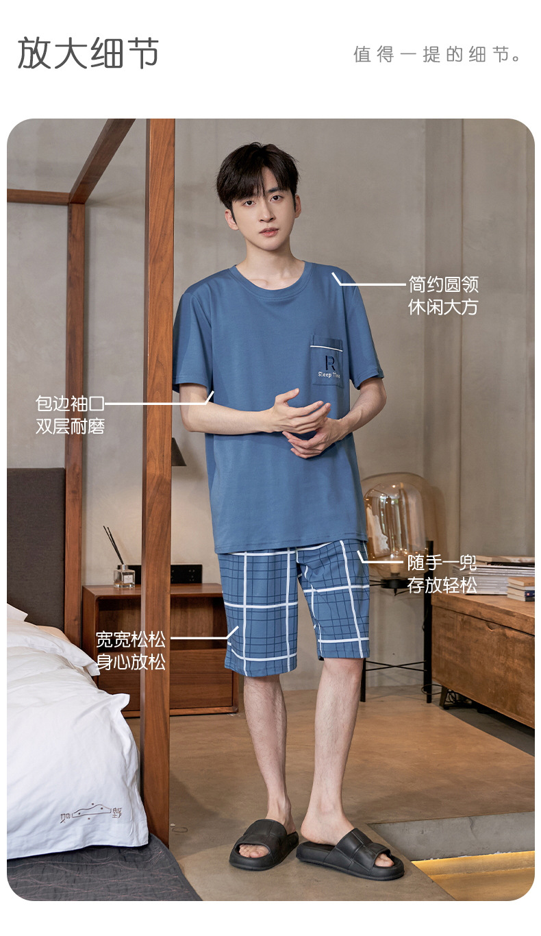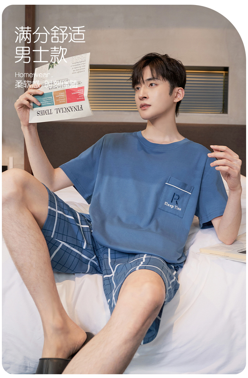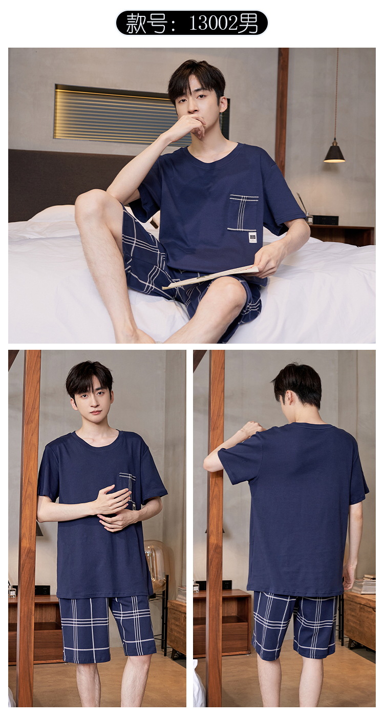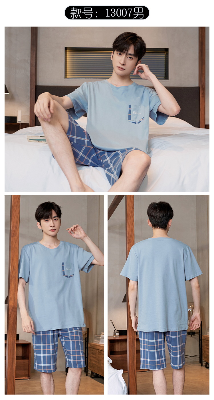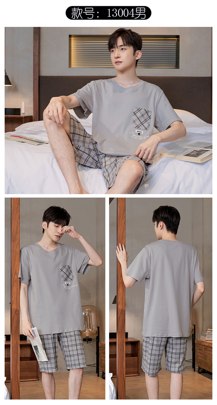 Pijama de algodón de los hombres de verano cortos de manga corta de algodón de alta calidad Juventud más tamaño de verano Plaid