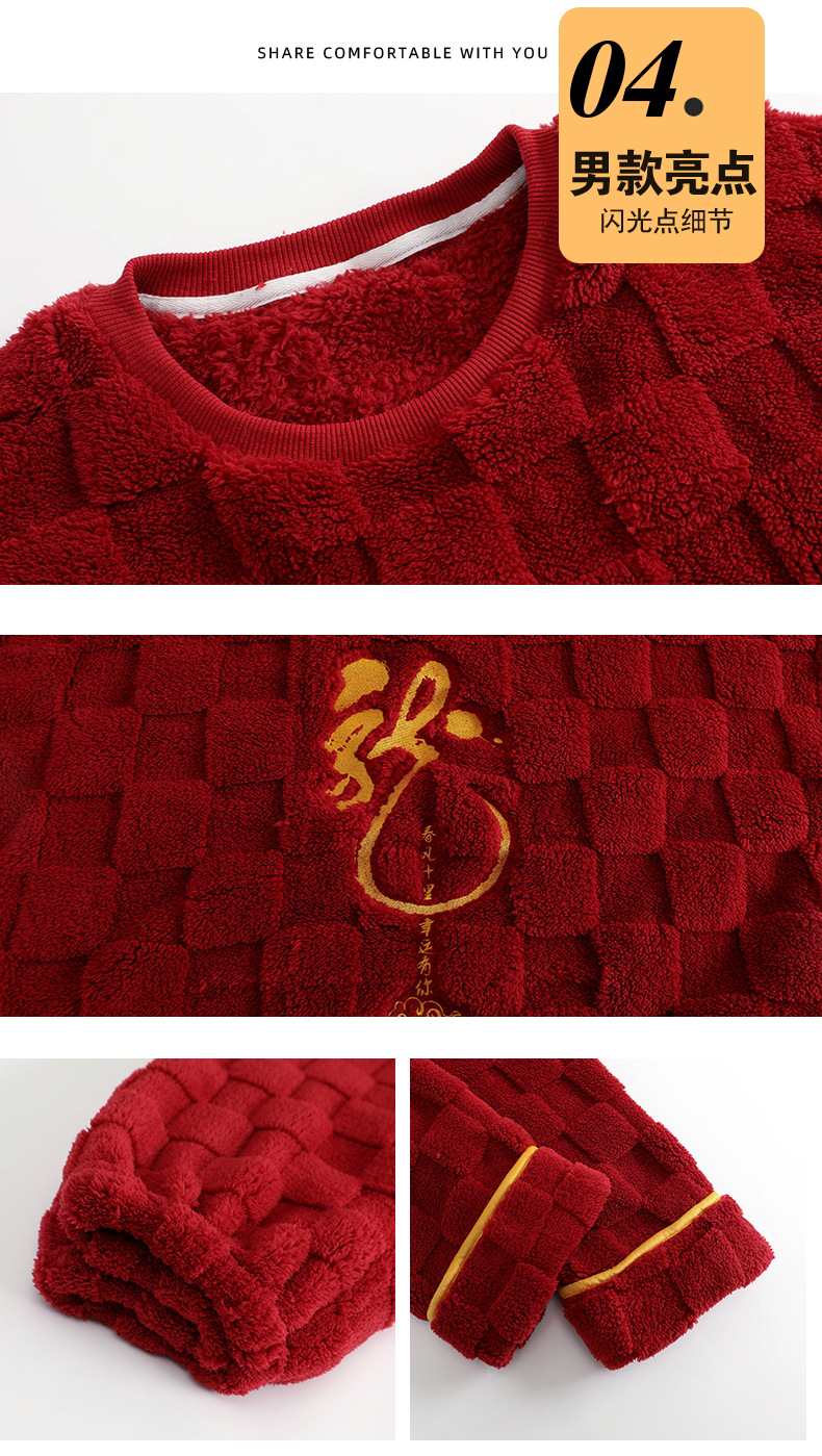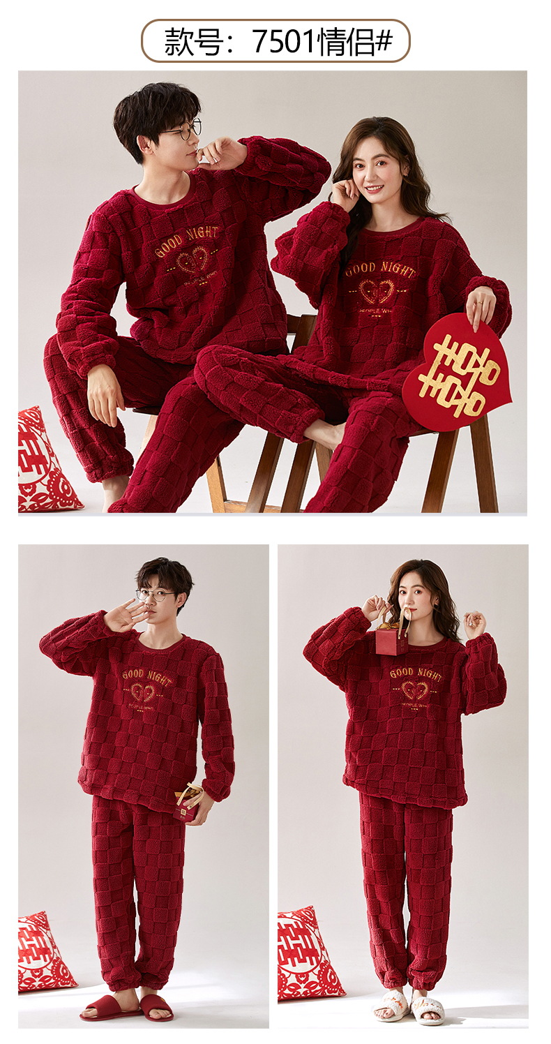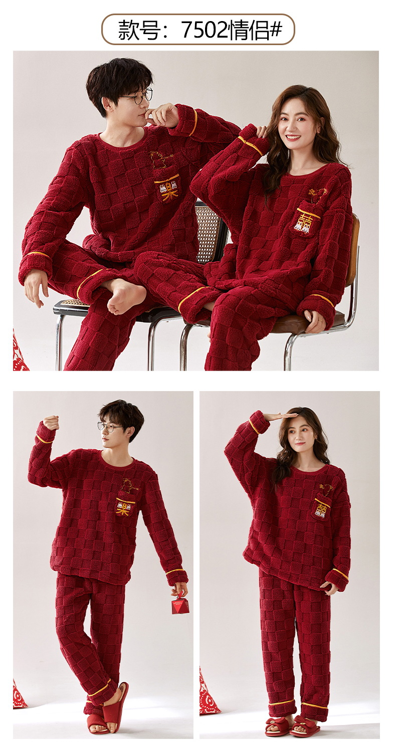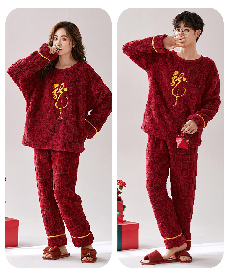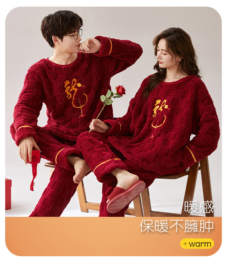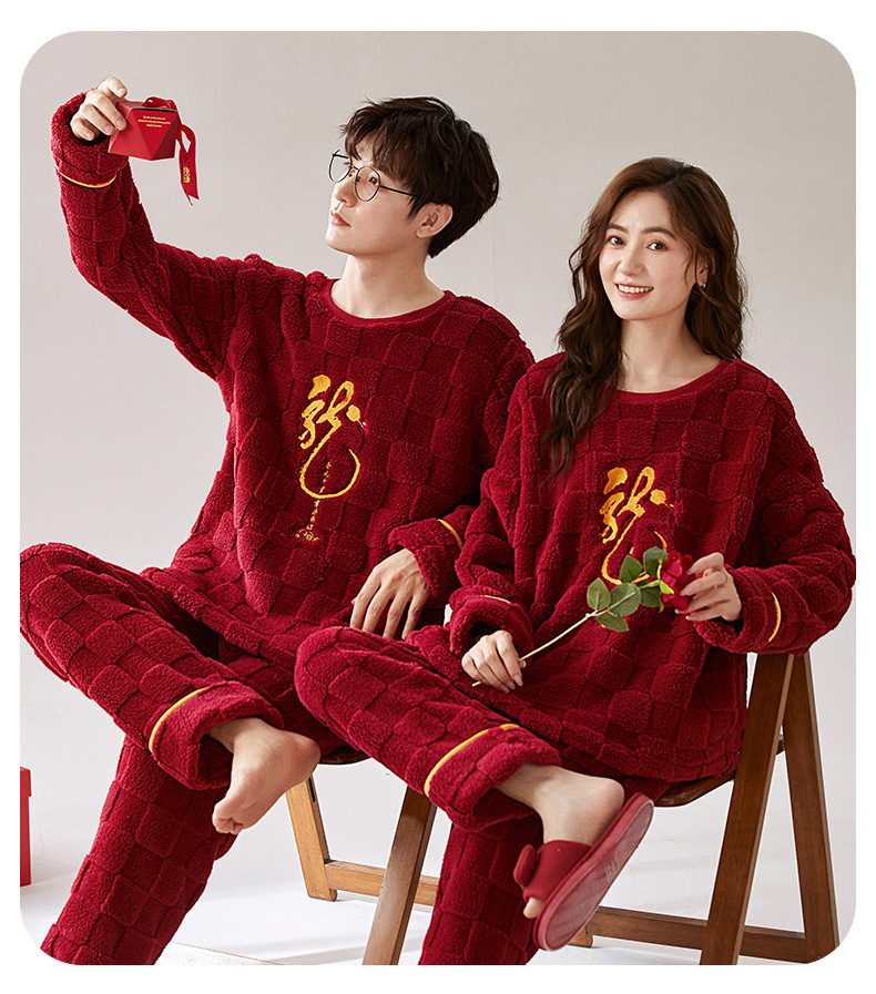 Pijamas de pareja roja engrosada coral polar Otoño e Invierno de las mujeres año de nacimiento boda festivo hombres de franela homewear