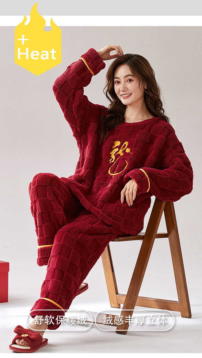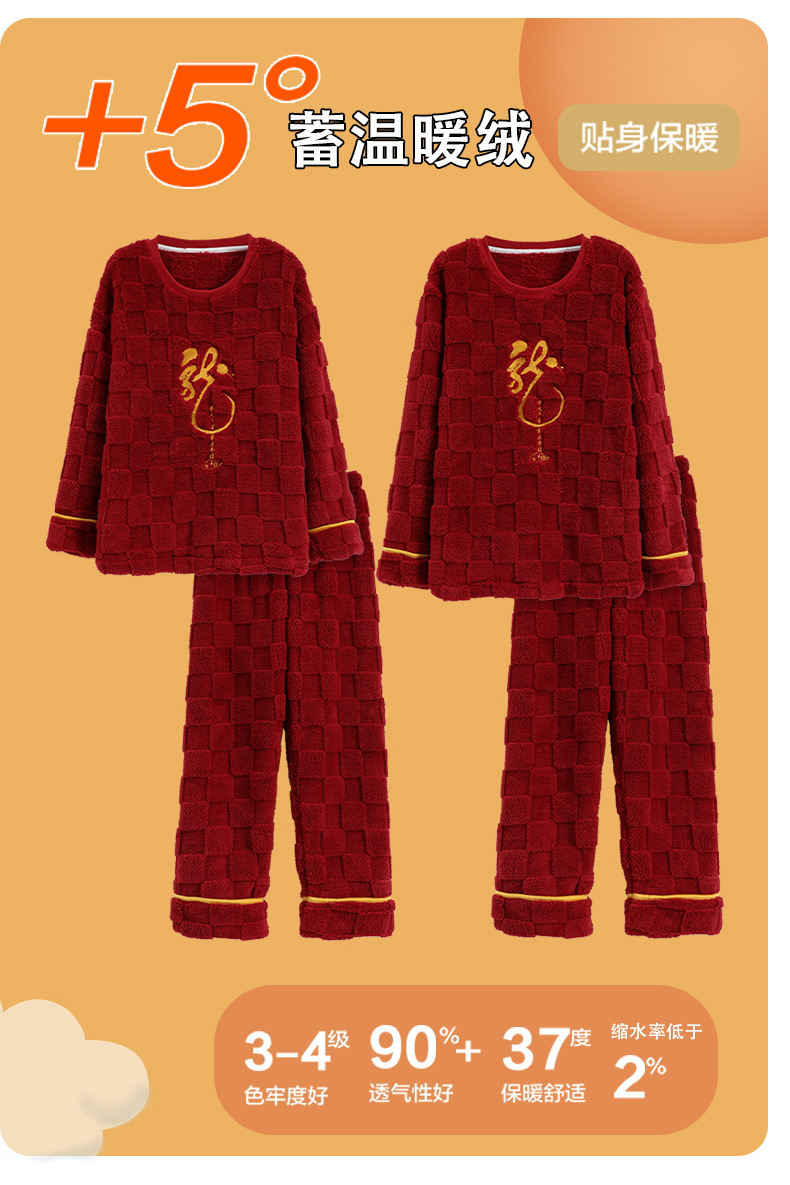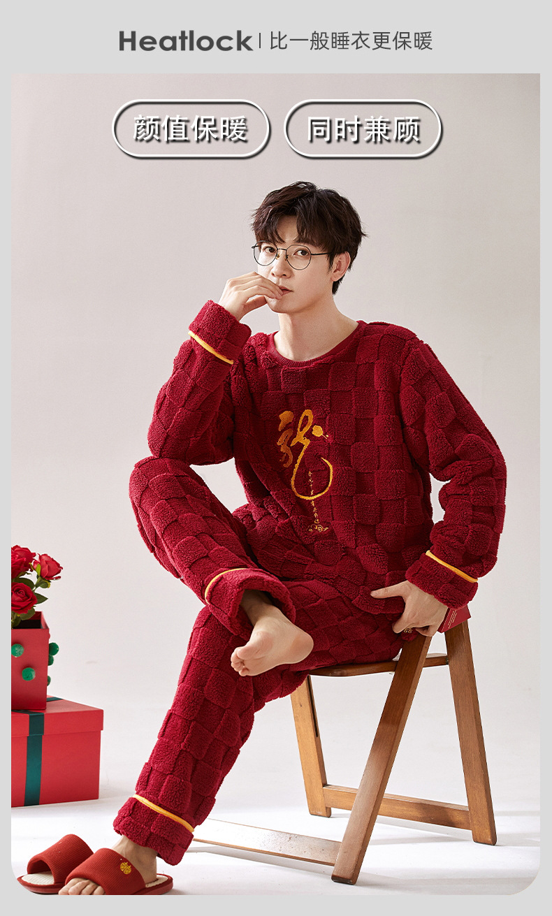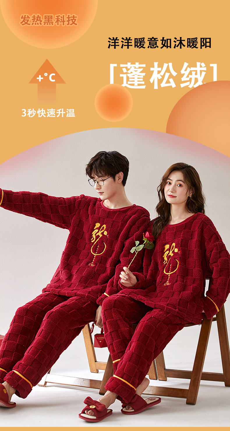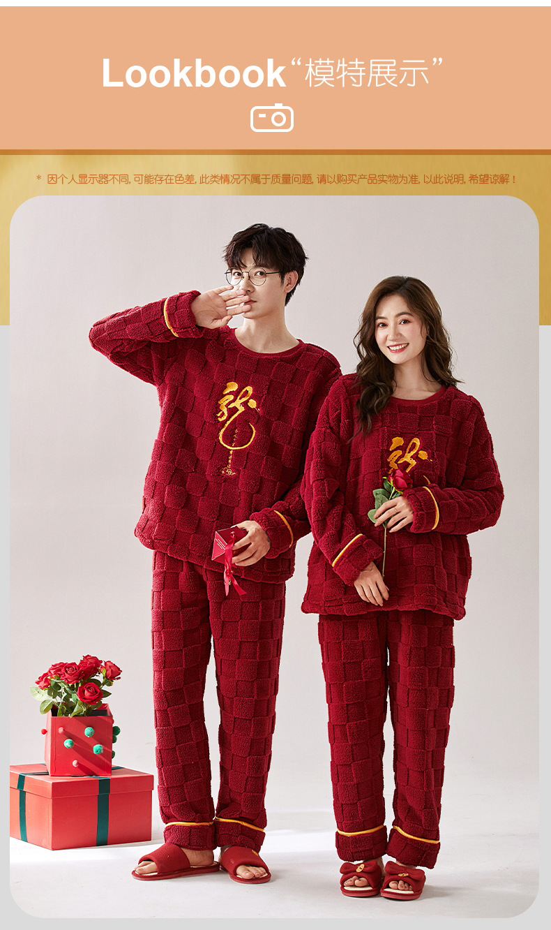 Pijamas de pareja roja engrosada coral polar Otoño e Invierno de las mujeres año de nacimiento boda festivo hombres de franela homewear