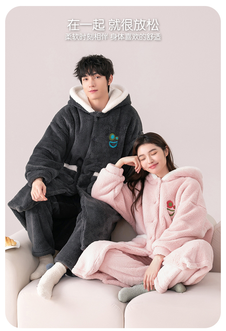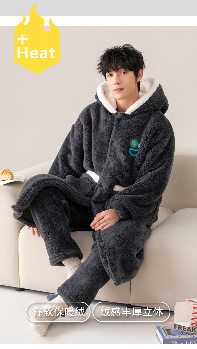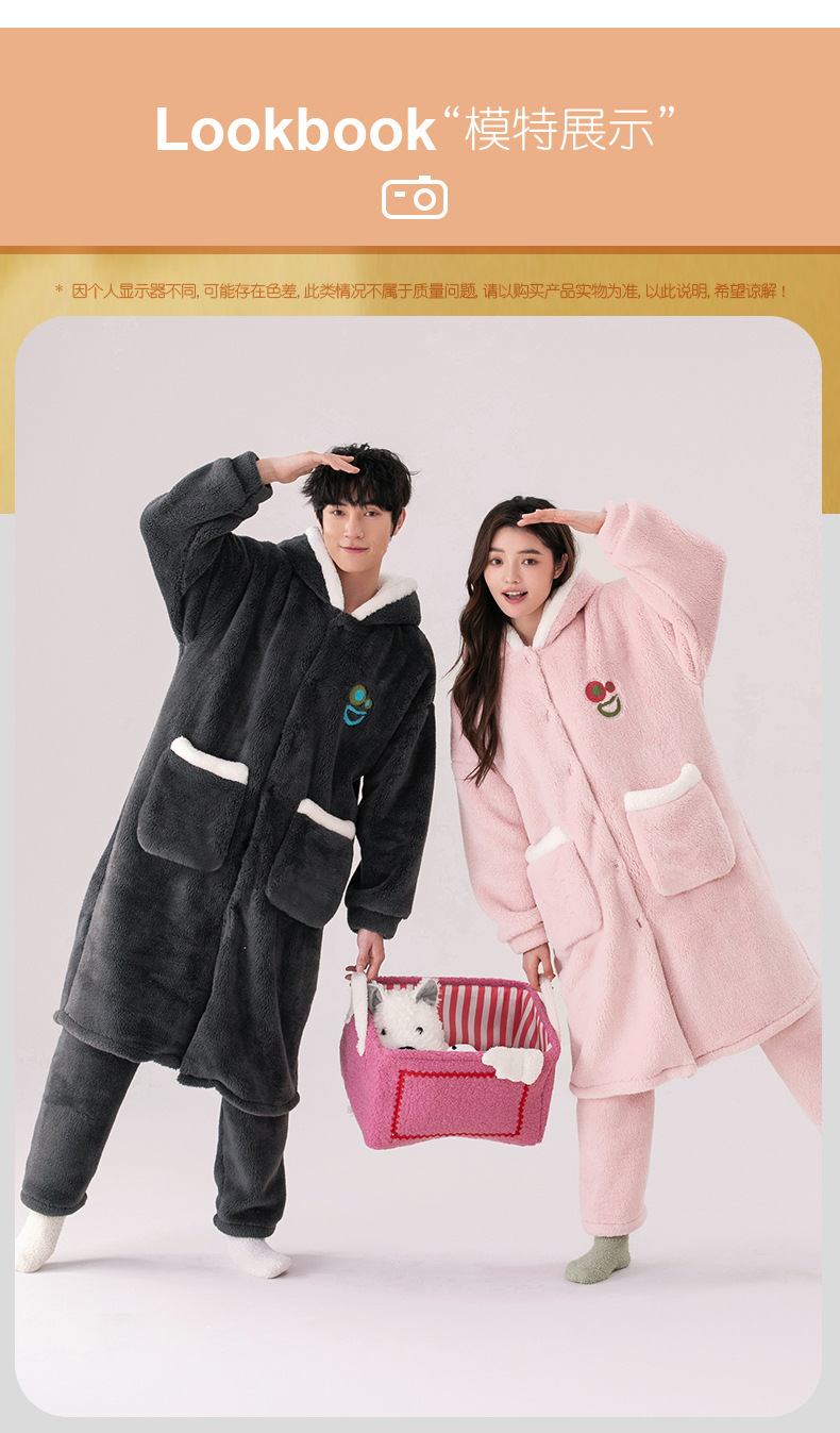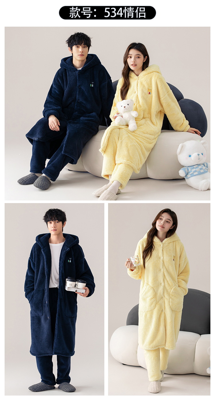 Otoño e Invierno pareja pijama de las mujeres de coral de lana engrosada de lana forrada de los hombres sueltos de franela homewear camisón traje