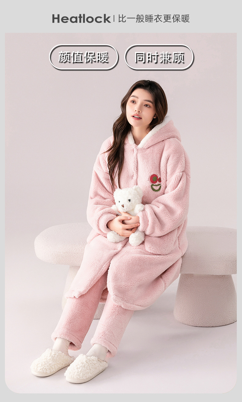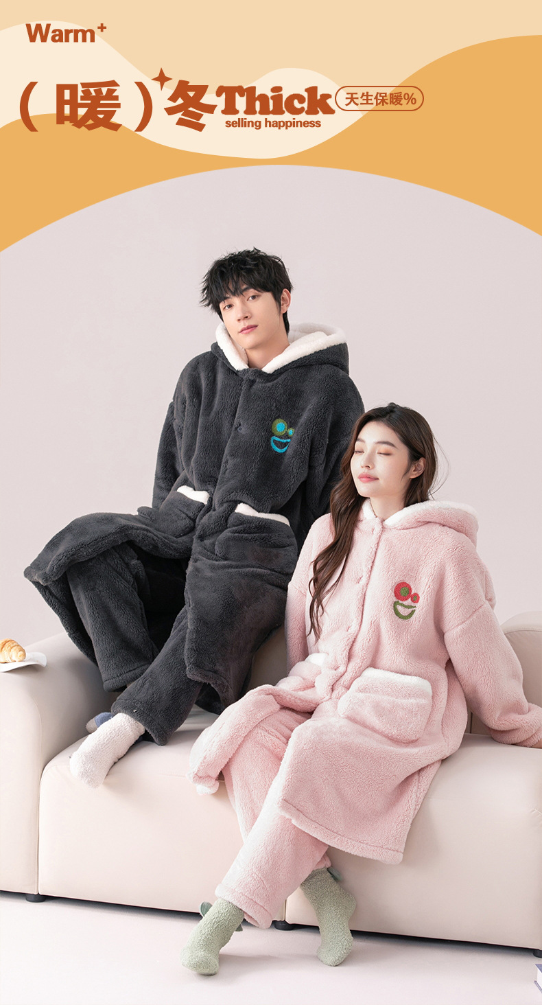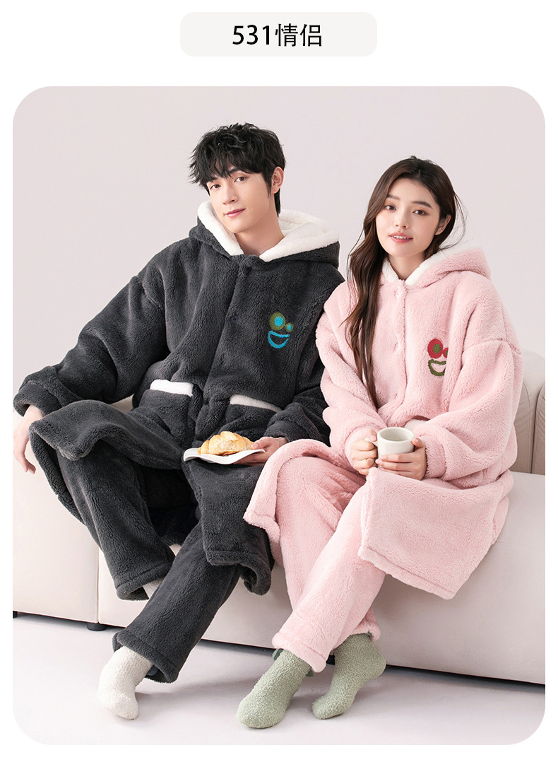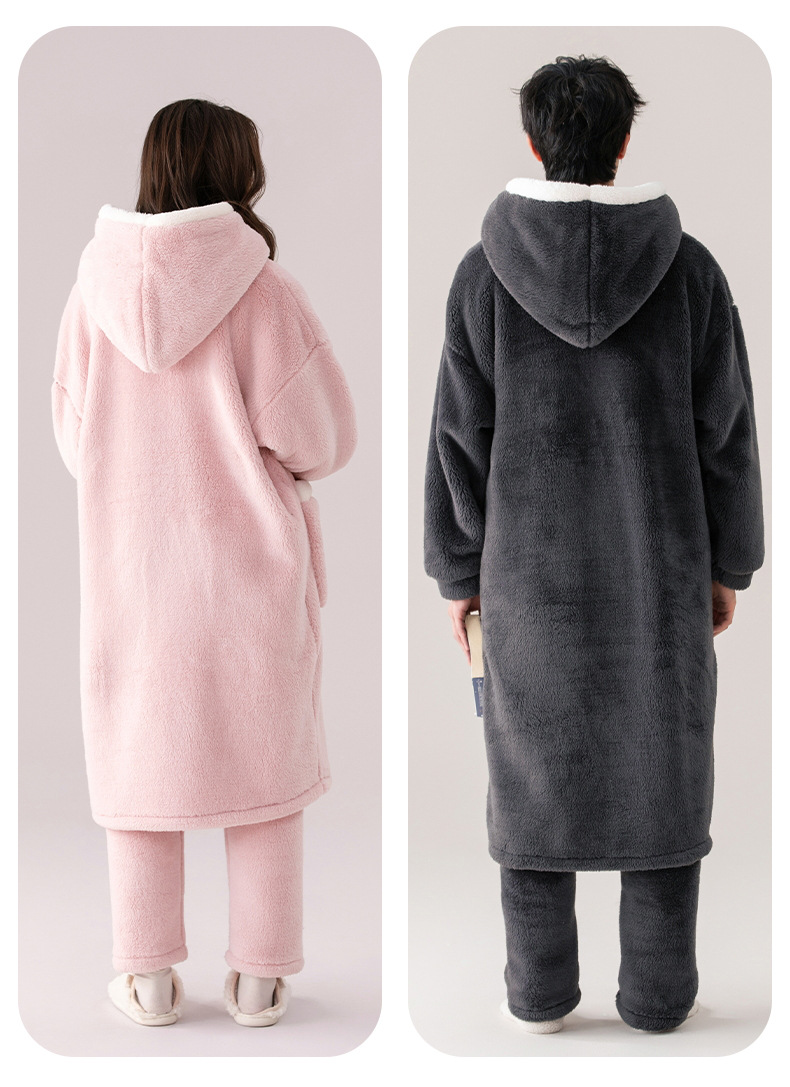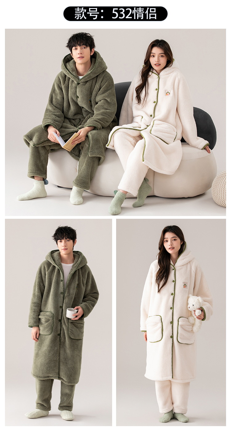 Otoño e Invierno pareja pijama de las mujeres de coral de lana engrosada de lana forrada de los hombres sueltos de franela homewear camisón traje