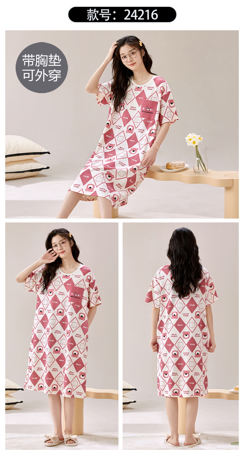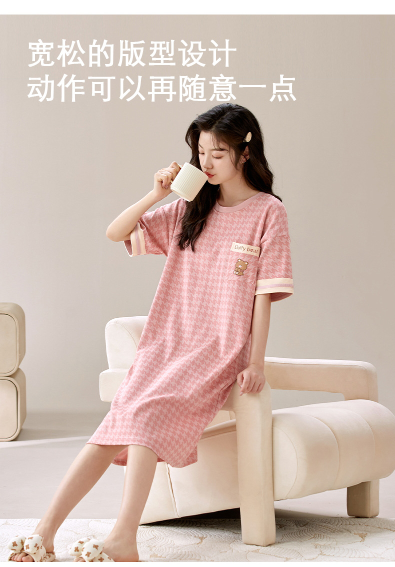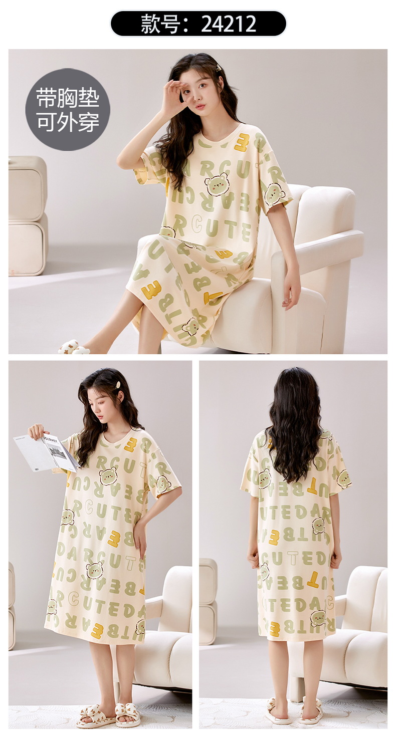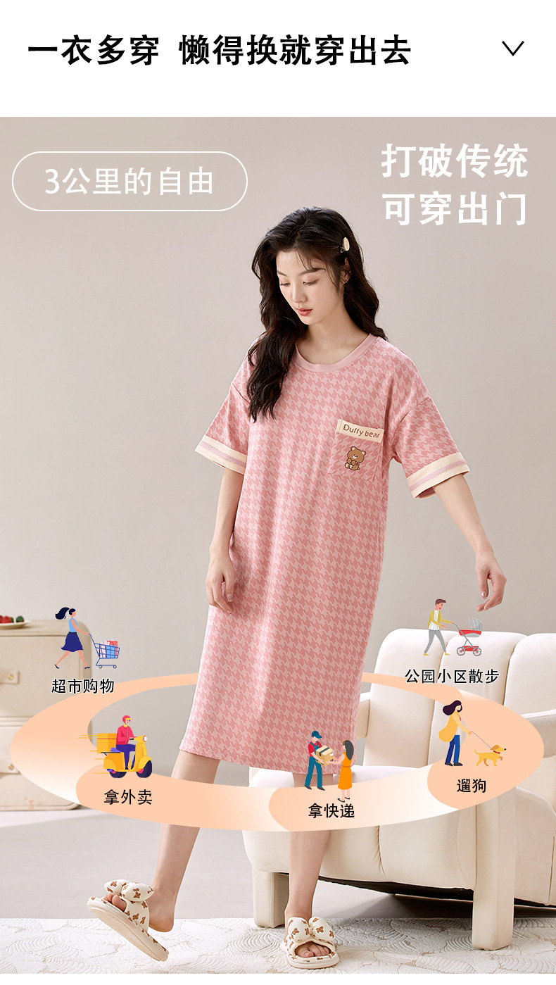 2024 nuevo camisón para mujer verano de manga corta vestido de longitud media por encima de la rodilla pijama de dibujos animados lindo servicio a domicilio