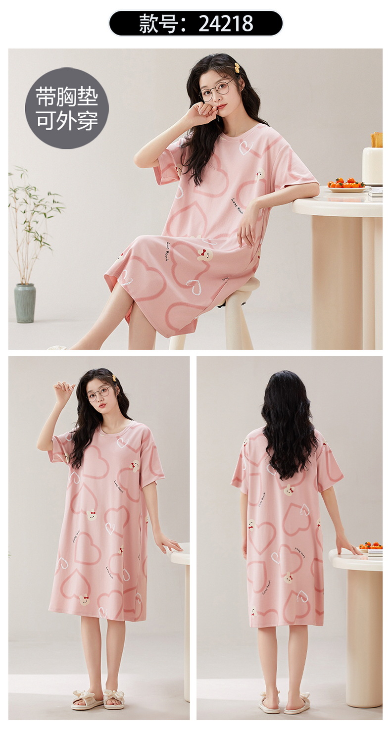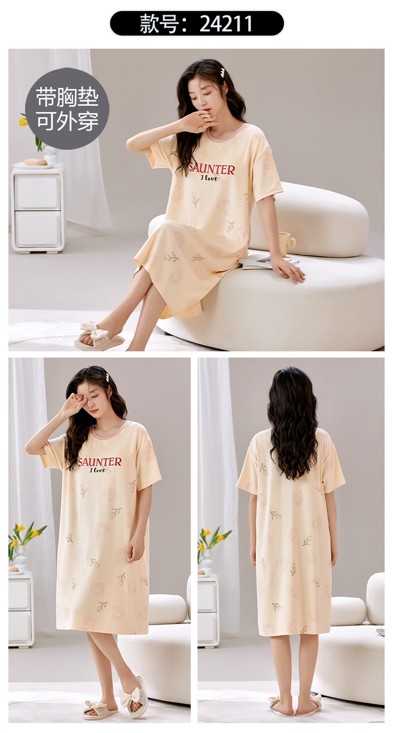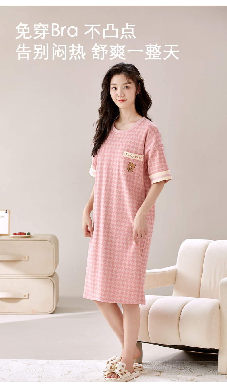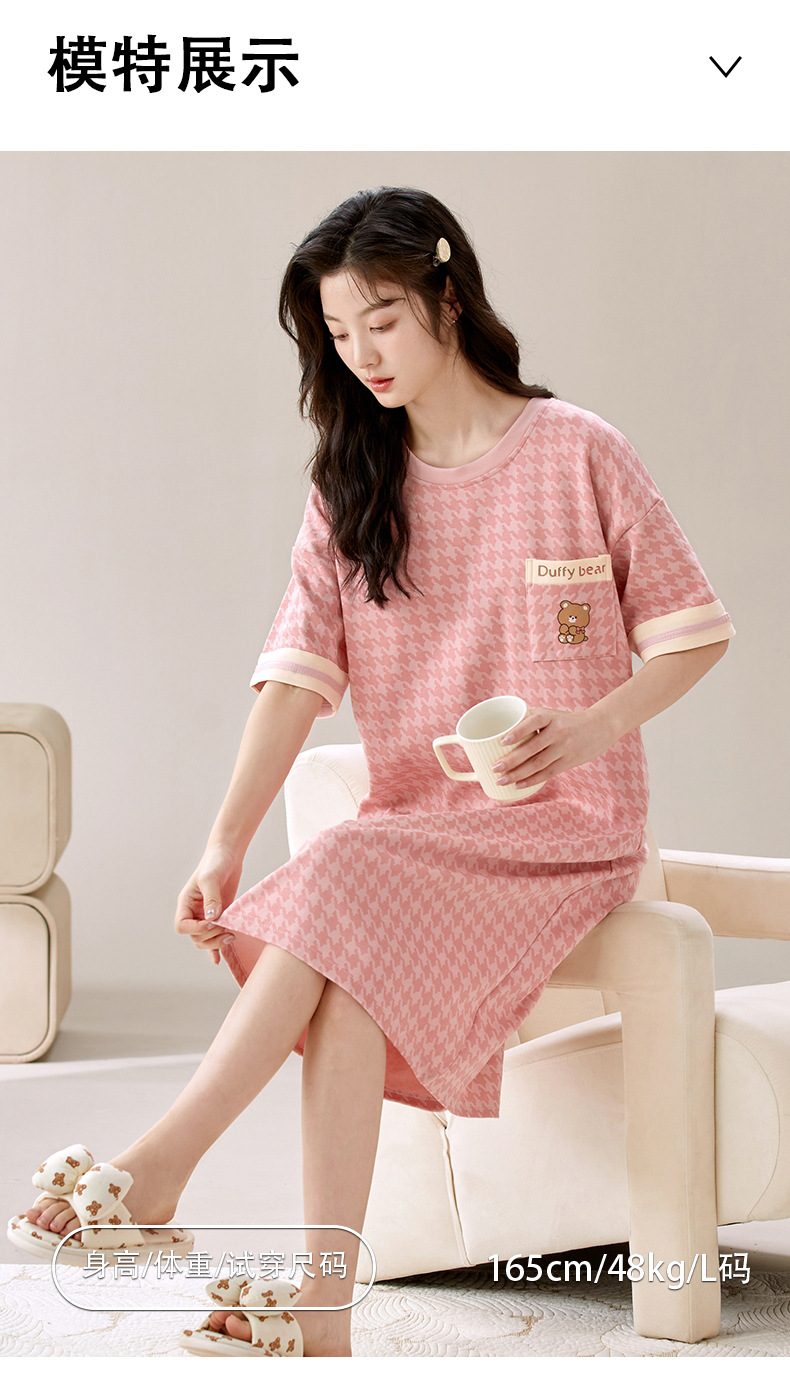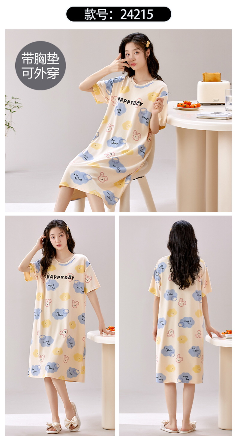 2024 nuevo camisón para mujer verano de manga corta vestido de longitud media por encima de la rodilla pijama de dibujos animados lindo servicio a domicilio