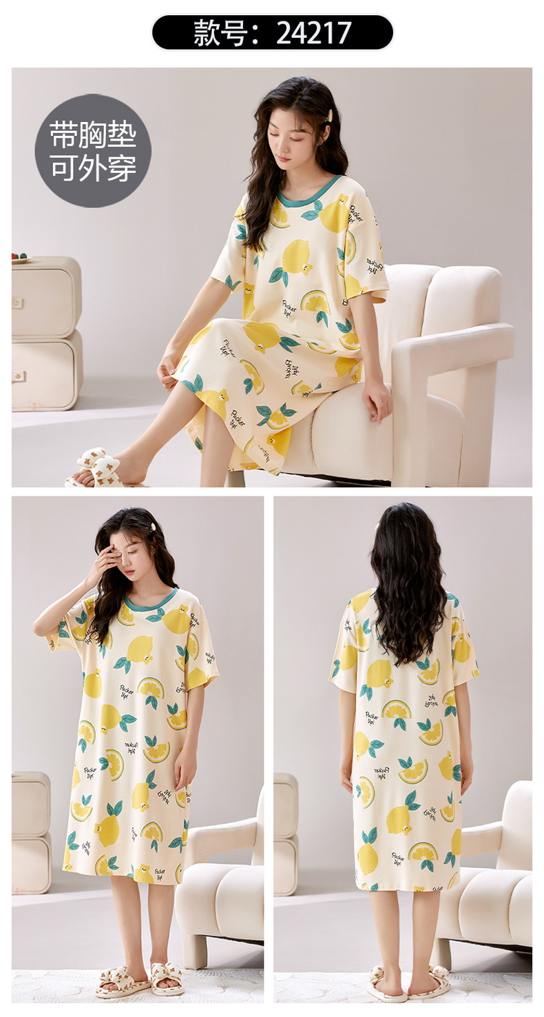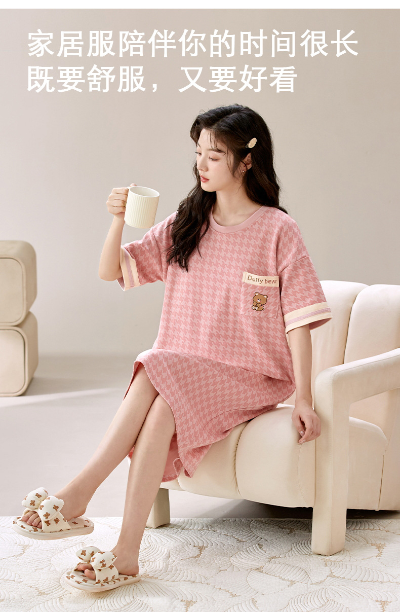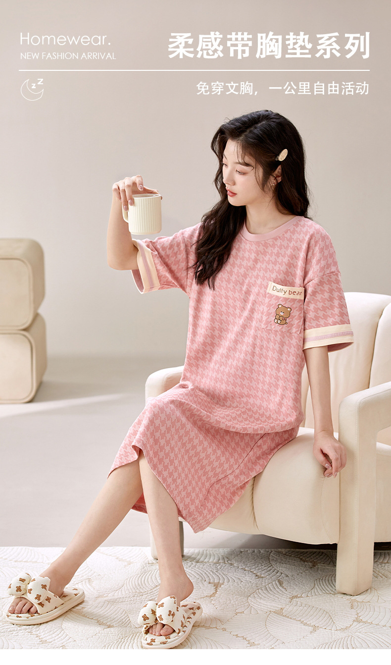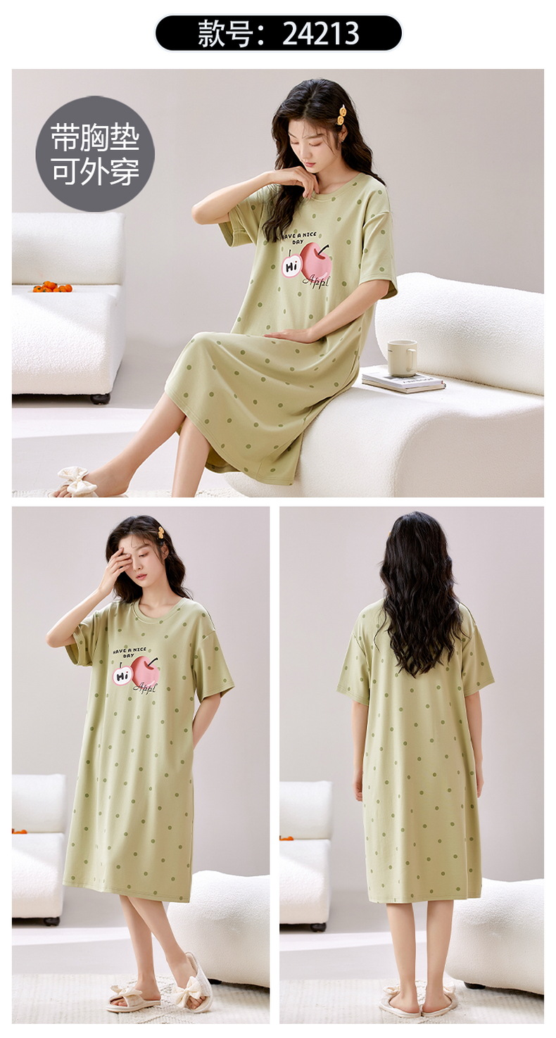 2024 nuevo camisón para mujer verano de manga corta vestido de longitud media por encima de la rodilla pijama de dibujos animados lindo servicio a domicilio
