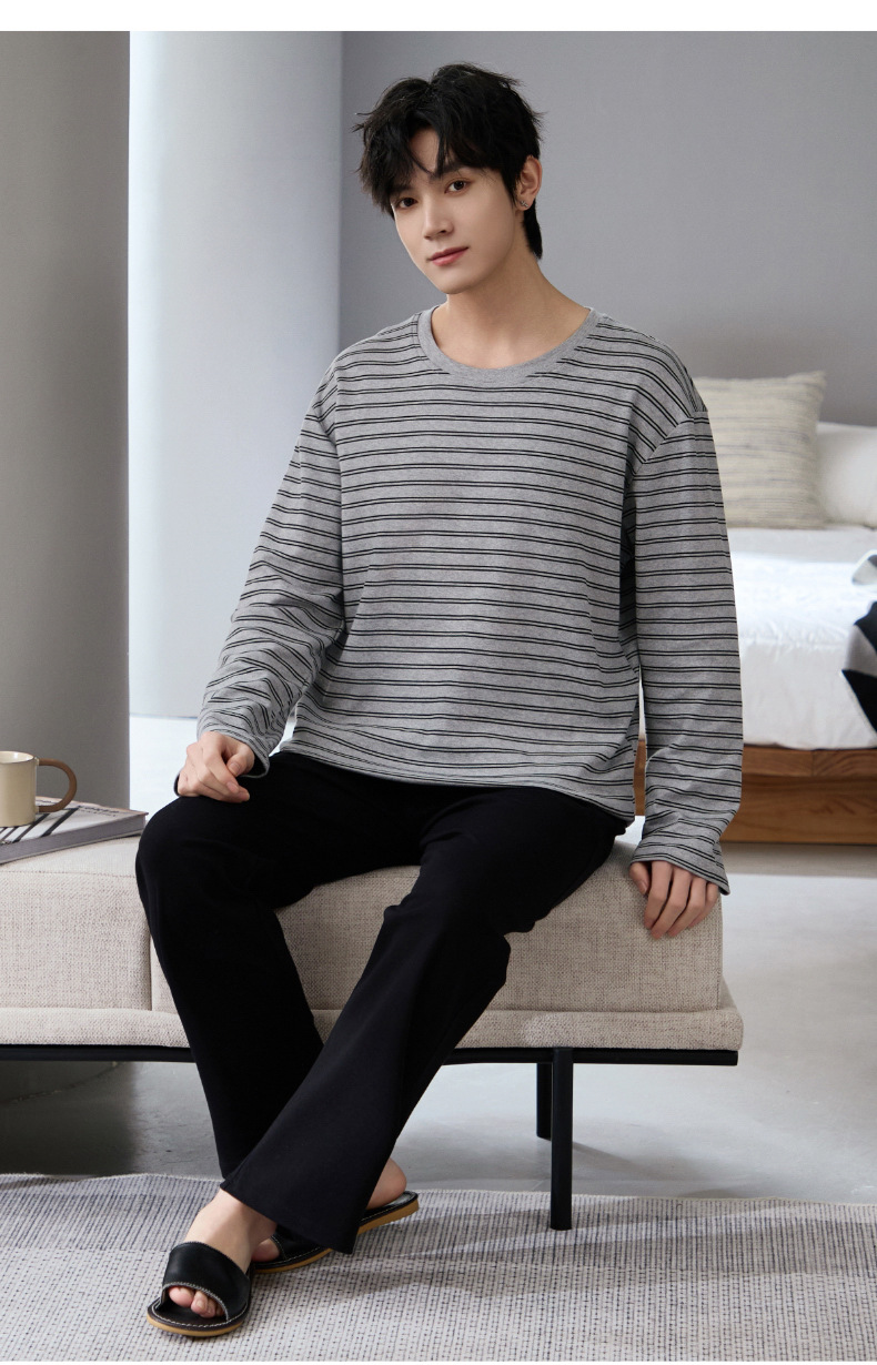 7A clase pijama de algodón de doble cara para hombres primavera, otoño y verano 2025 nueva manga larga 100% algodón engordado ropa para el hogar de tamaño grande