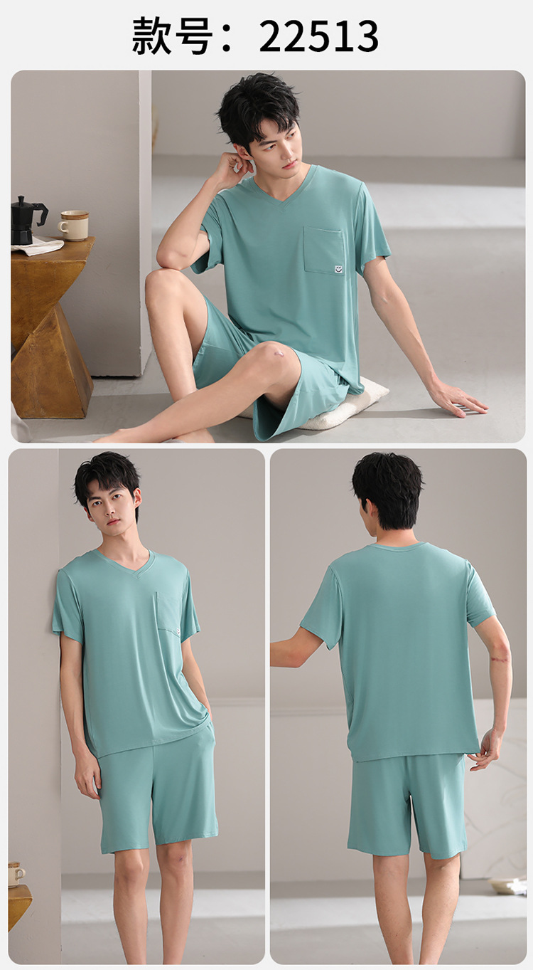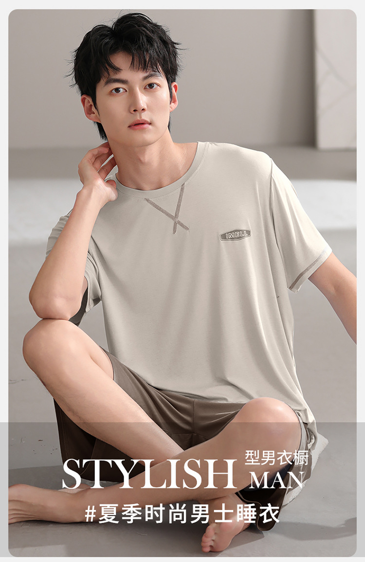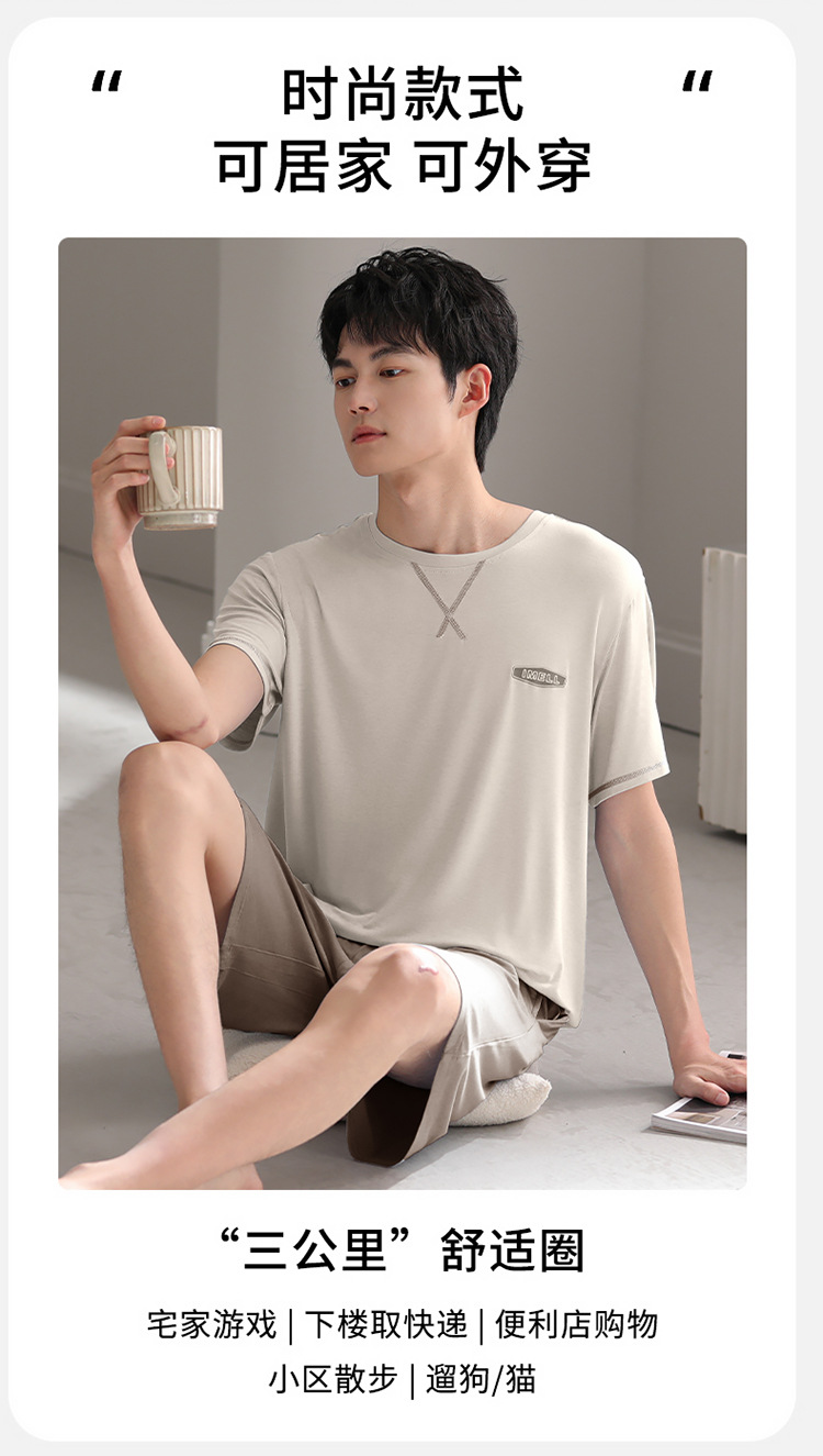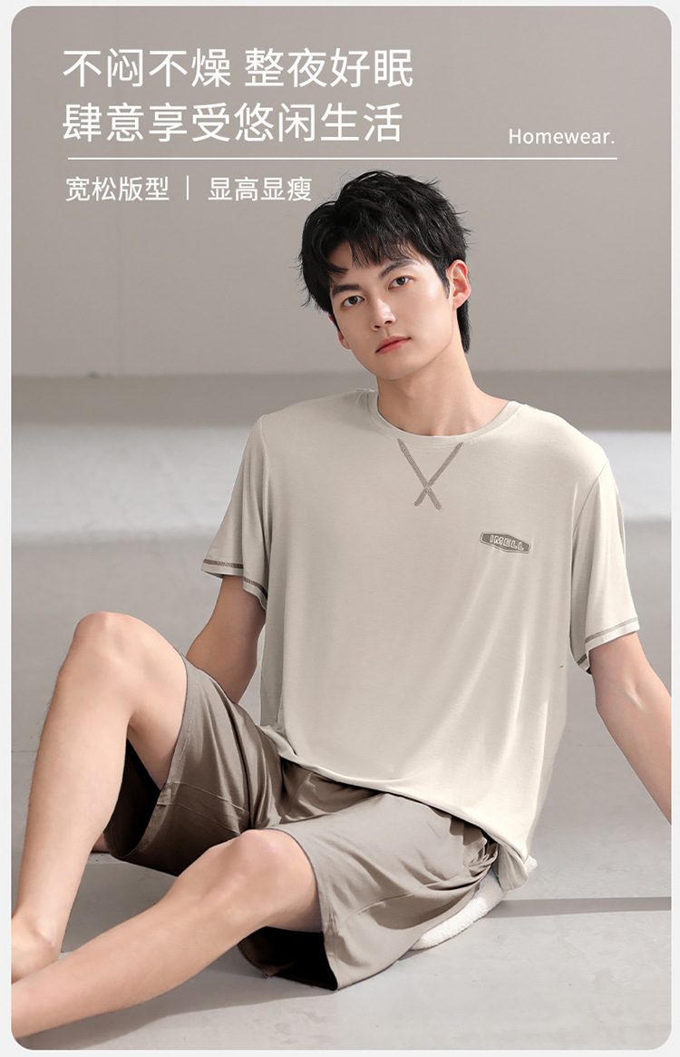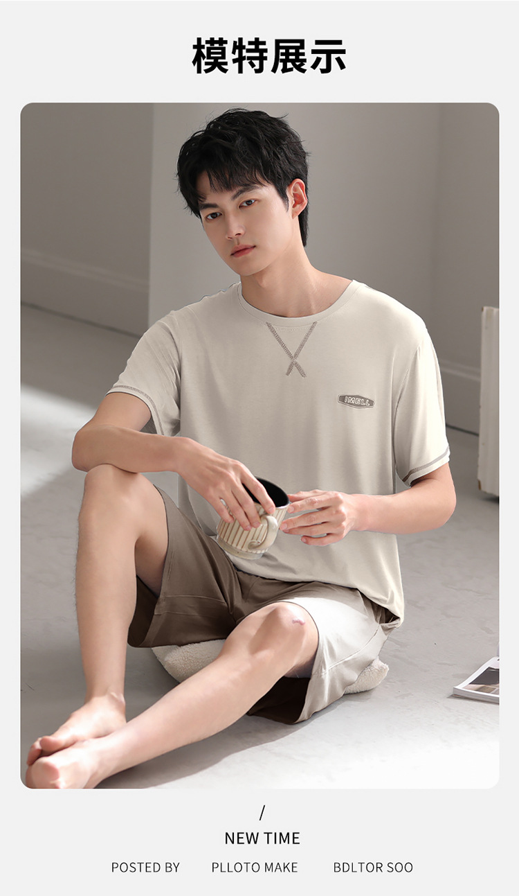 Pijamas de hombre modales, pantalones cortos de mangas cortas de verano, ropa delgada para el hogar juvenil, 2025 nuevo conjunto