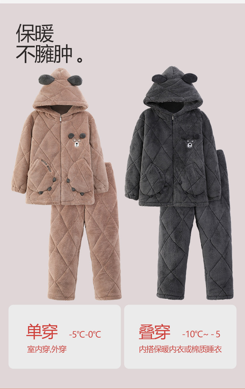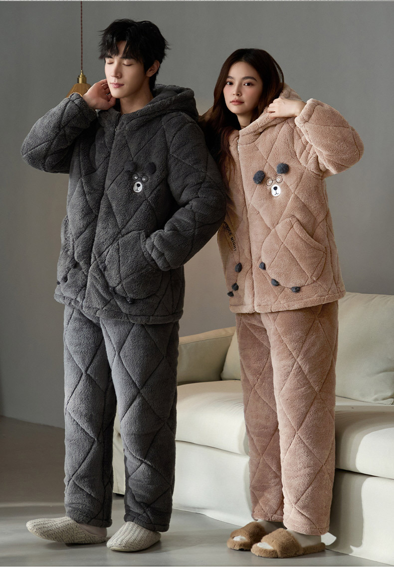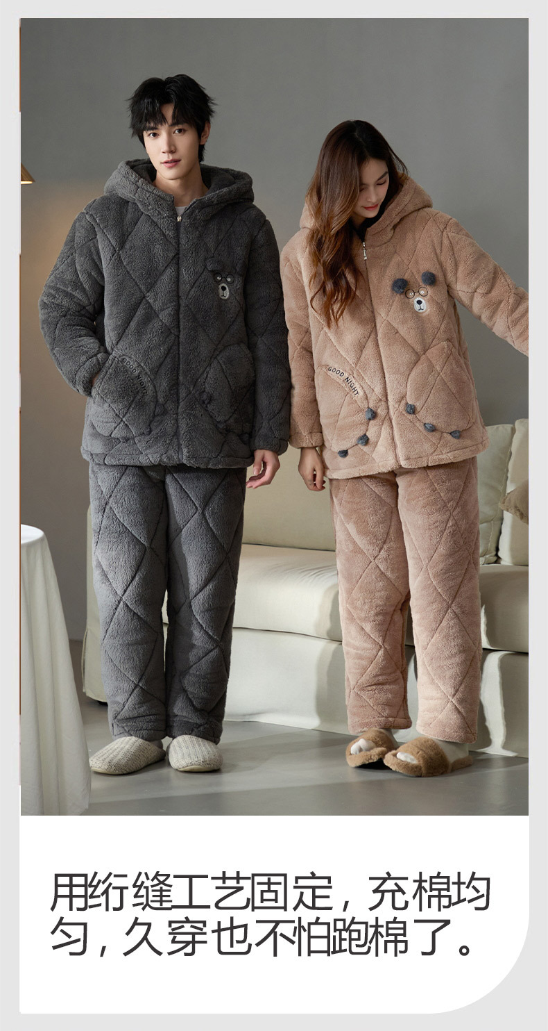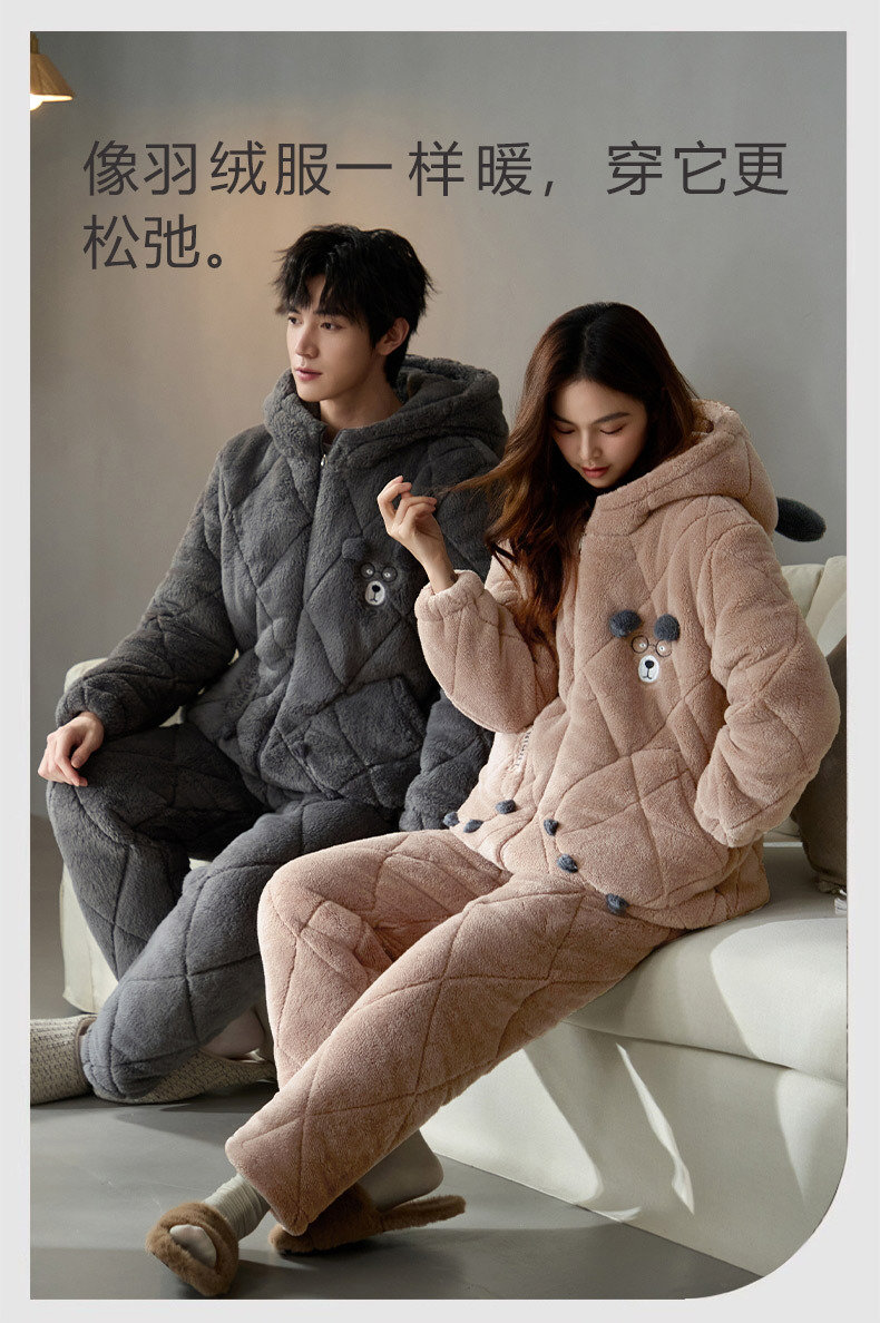 Coral de lana más lana gruesa chaqueta de algodón de tres capas super gruesa pareja de pijamas de mujer otoño invierno ropa de hogar encapuchada hombre 2024