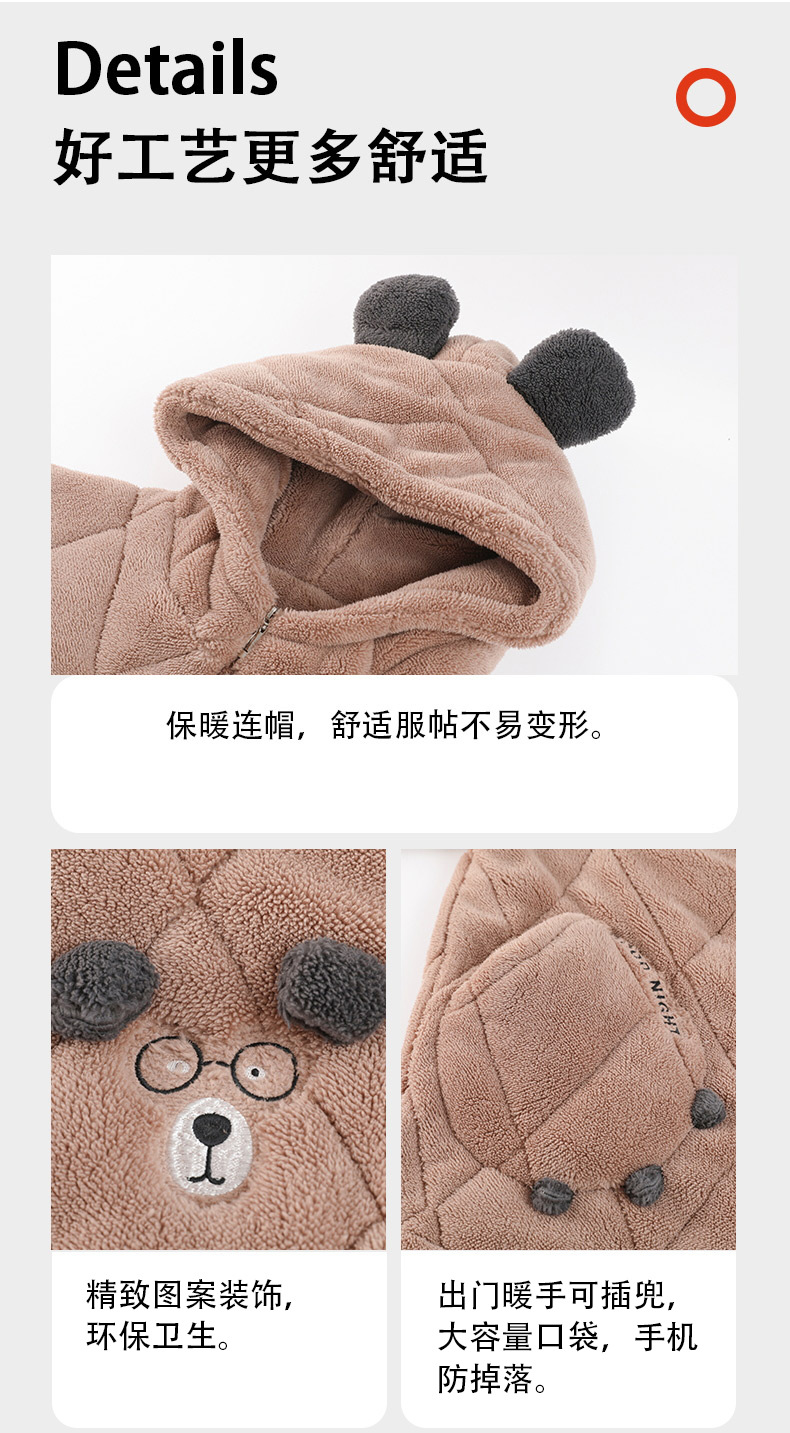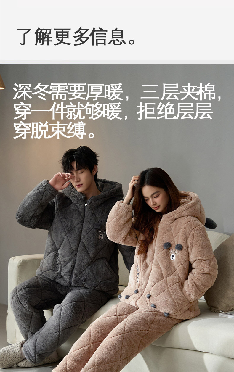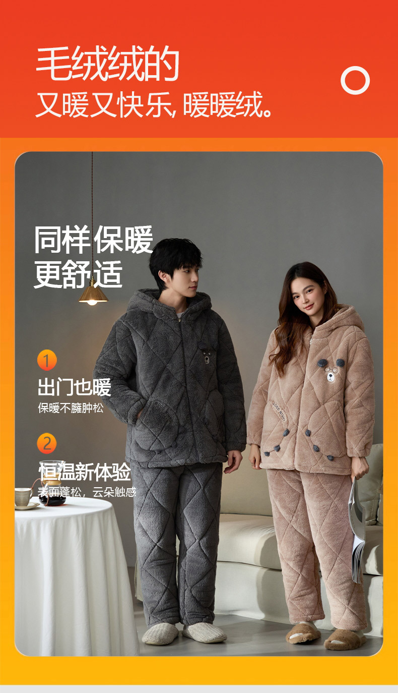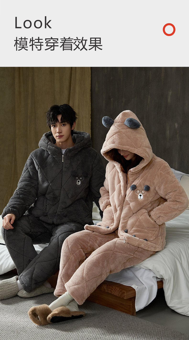 Coral de lana más lana gruesa chaqueta de algodón de tres capas super gruesa pareja de pijamas de mujer otoño invierno ropa de hogar encapuchada hombre 2024
