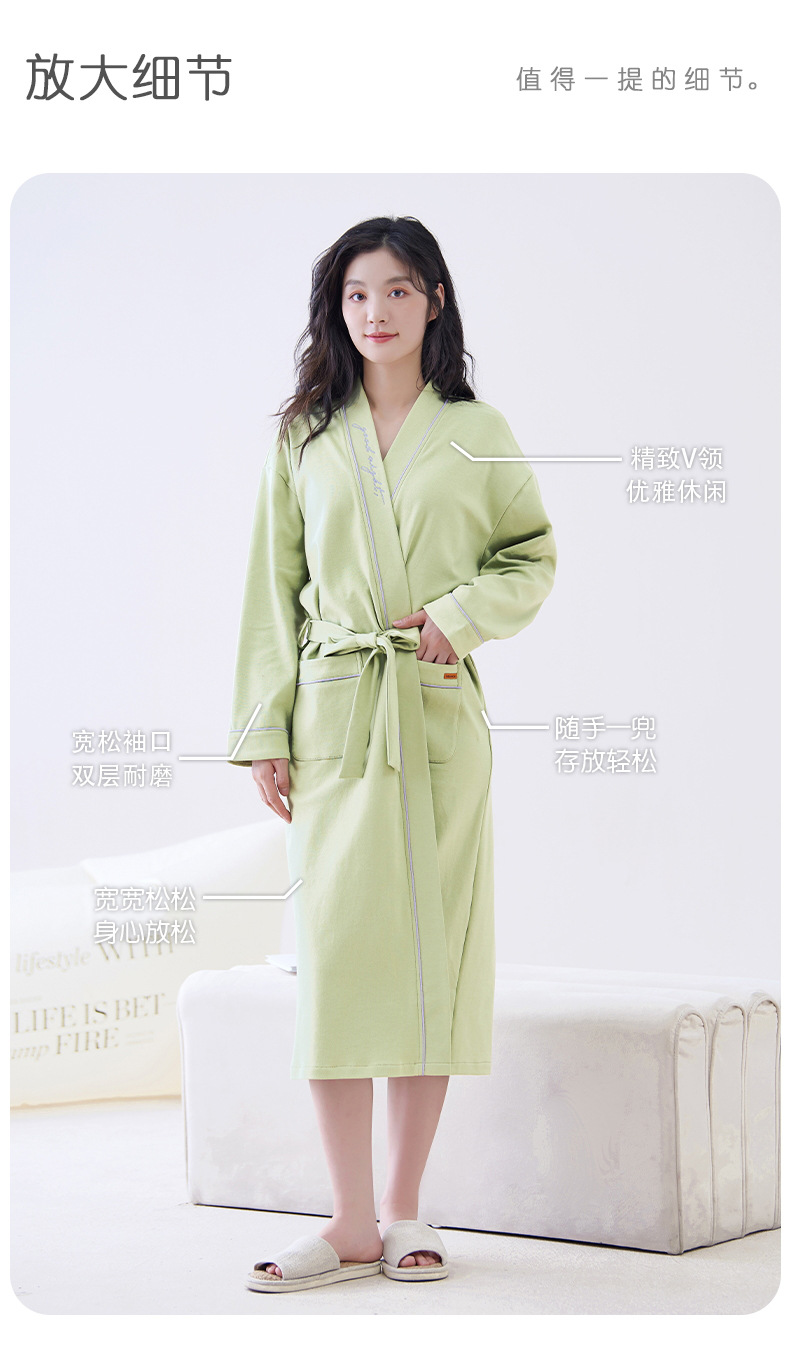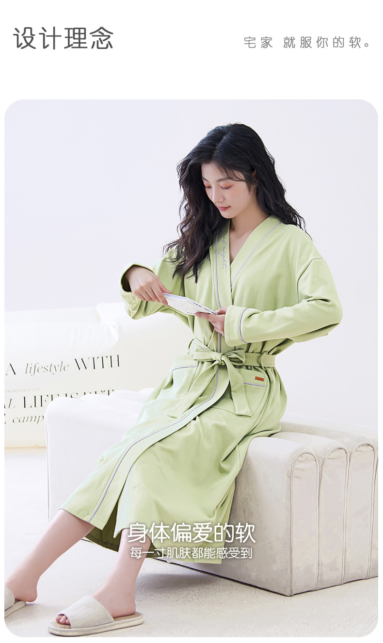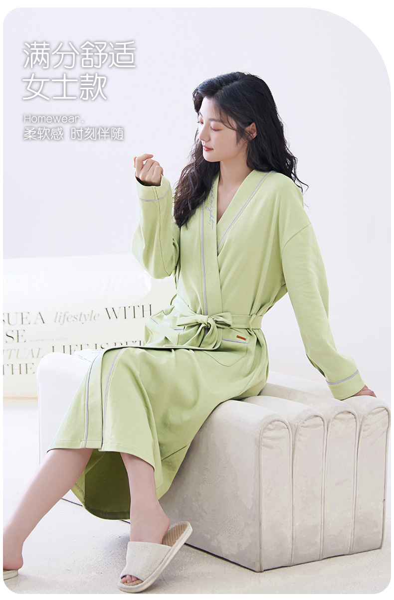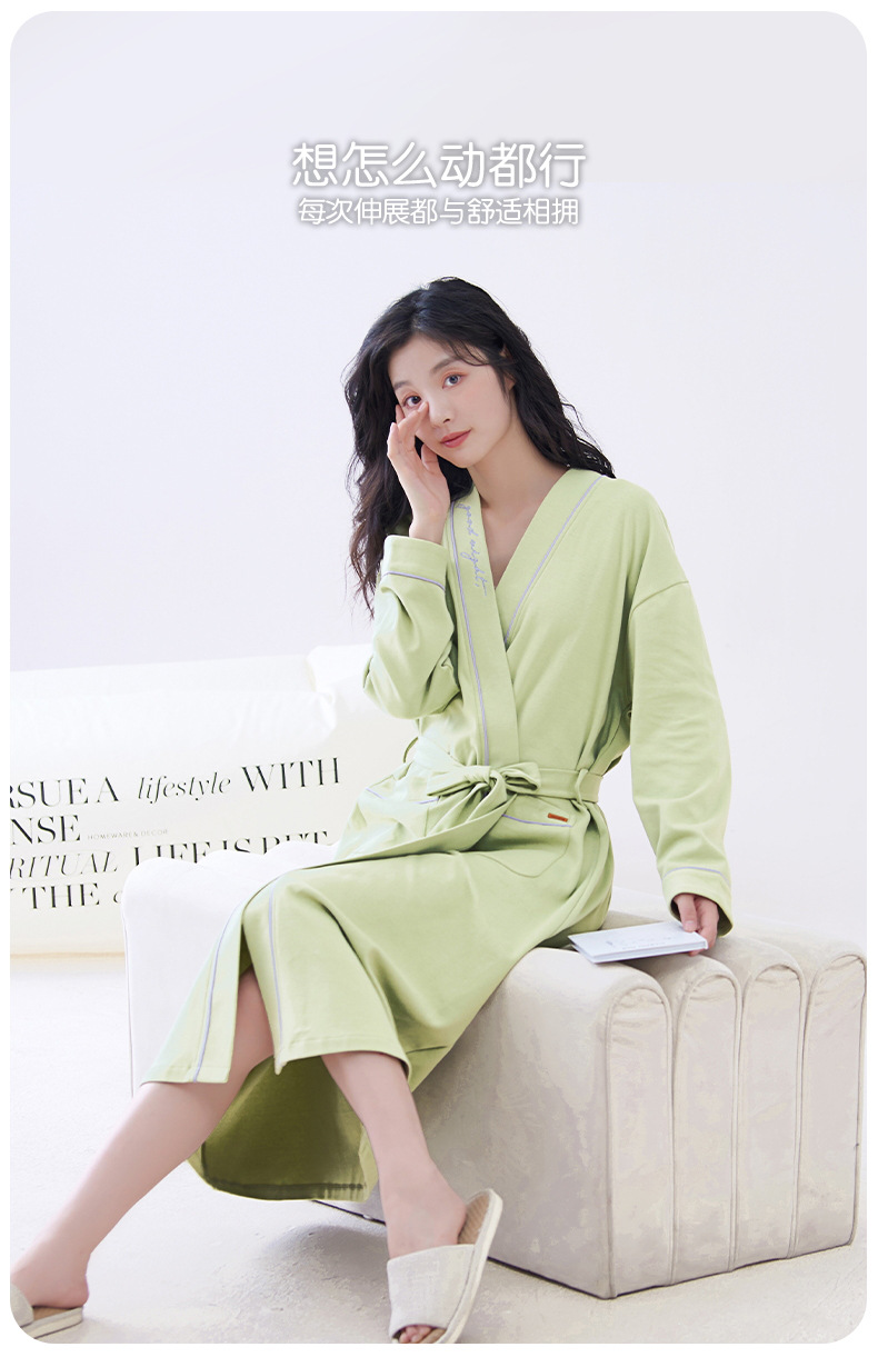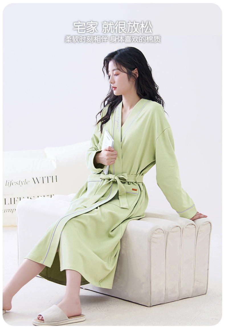 Camisón de algodón para mujer otoño nuevo traje de baño de color sólido de manga larga con cordones para mujer sexy otoño e invierno se puede usar fuera