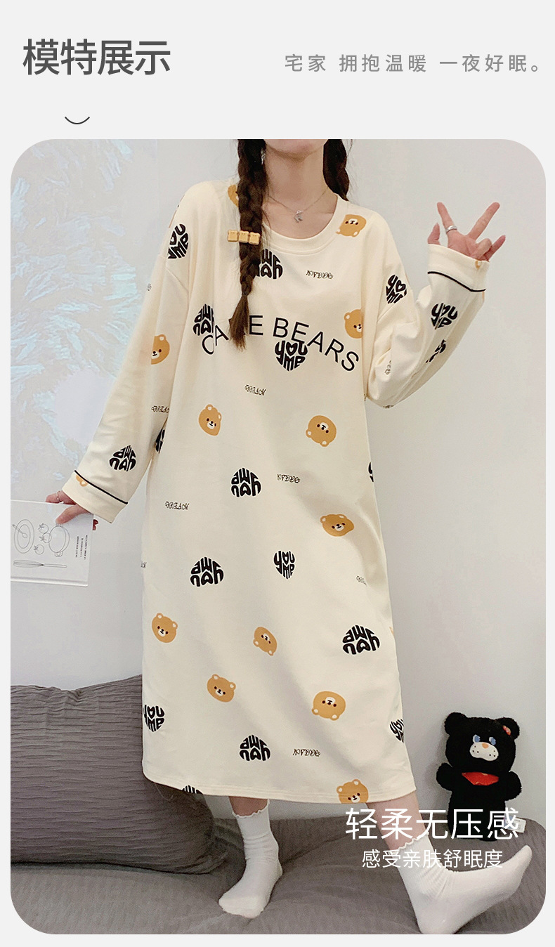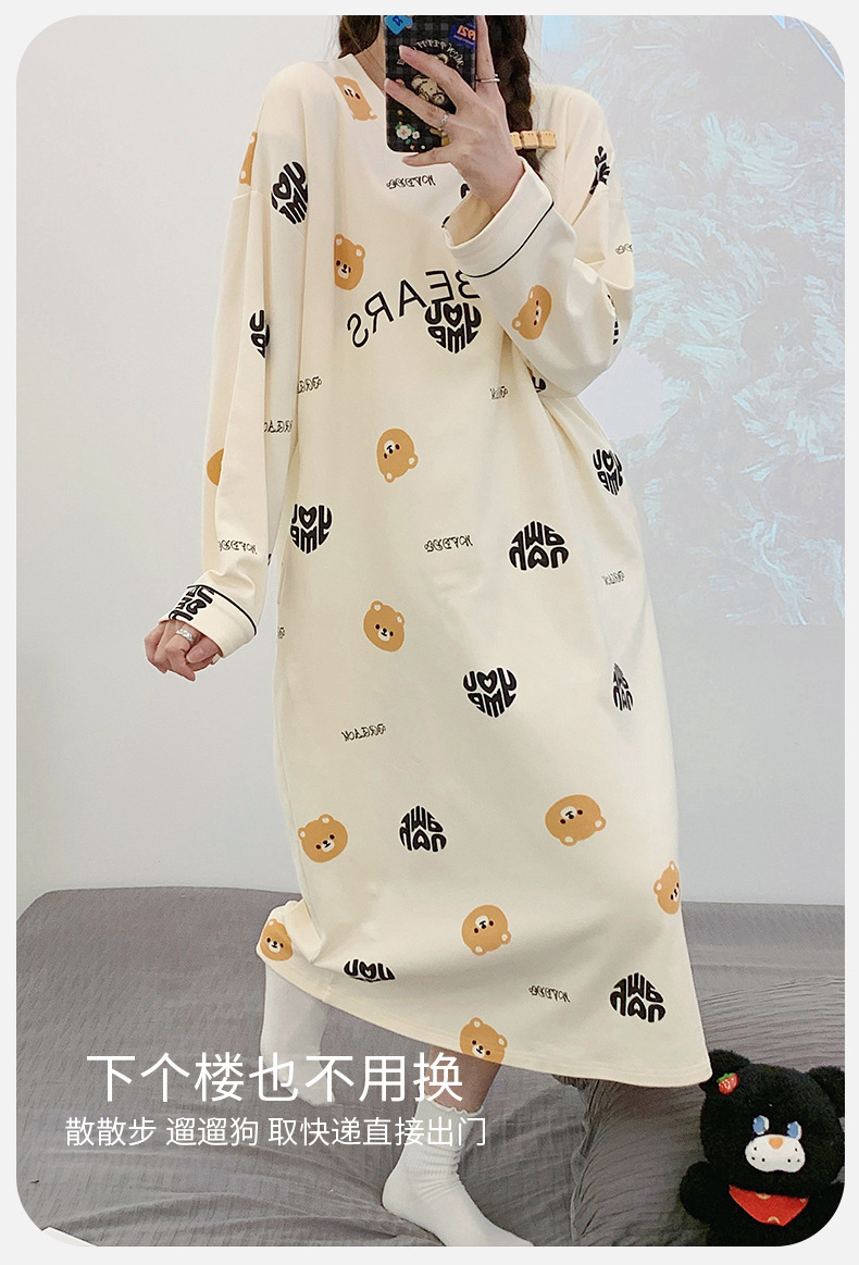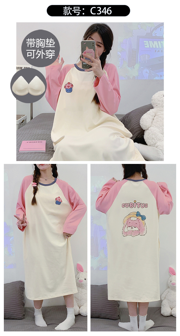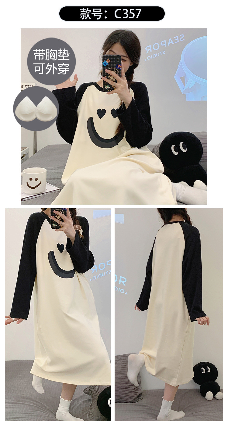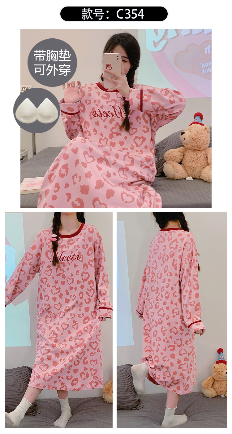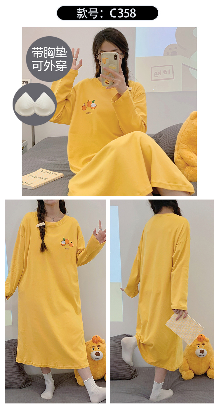 Camisón de las mujeres con almohadilla en el pecho otoño algodón de manga larga vestido dulce nuevo vestido casual de algodón desgaste del hogar de verano