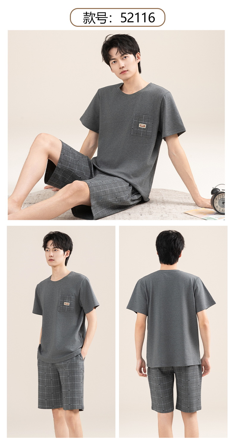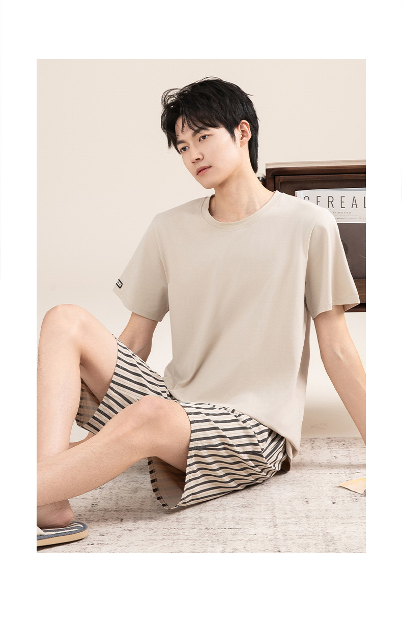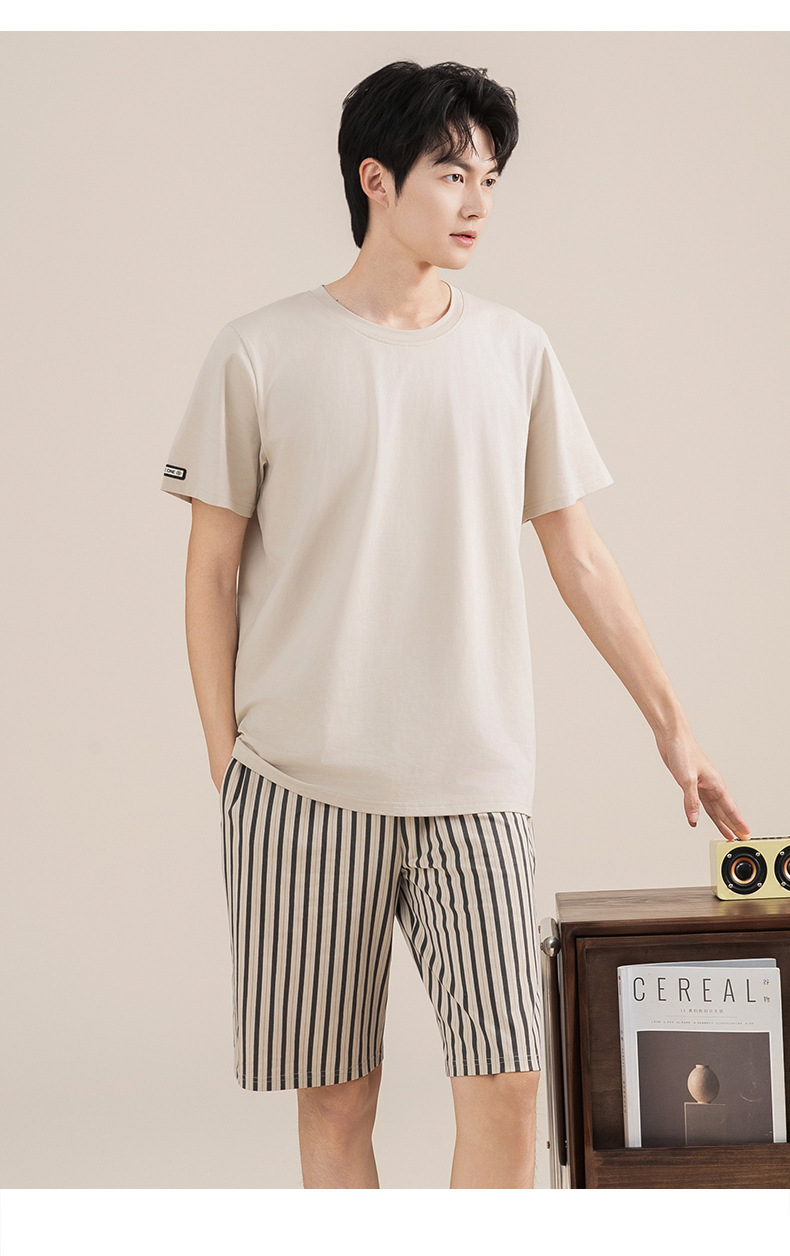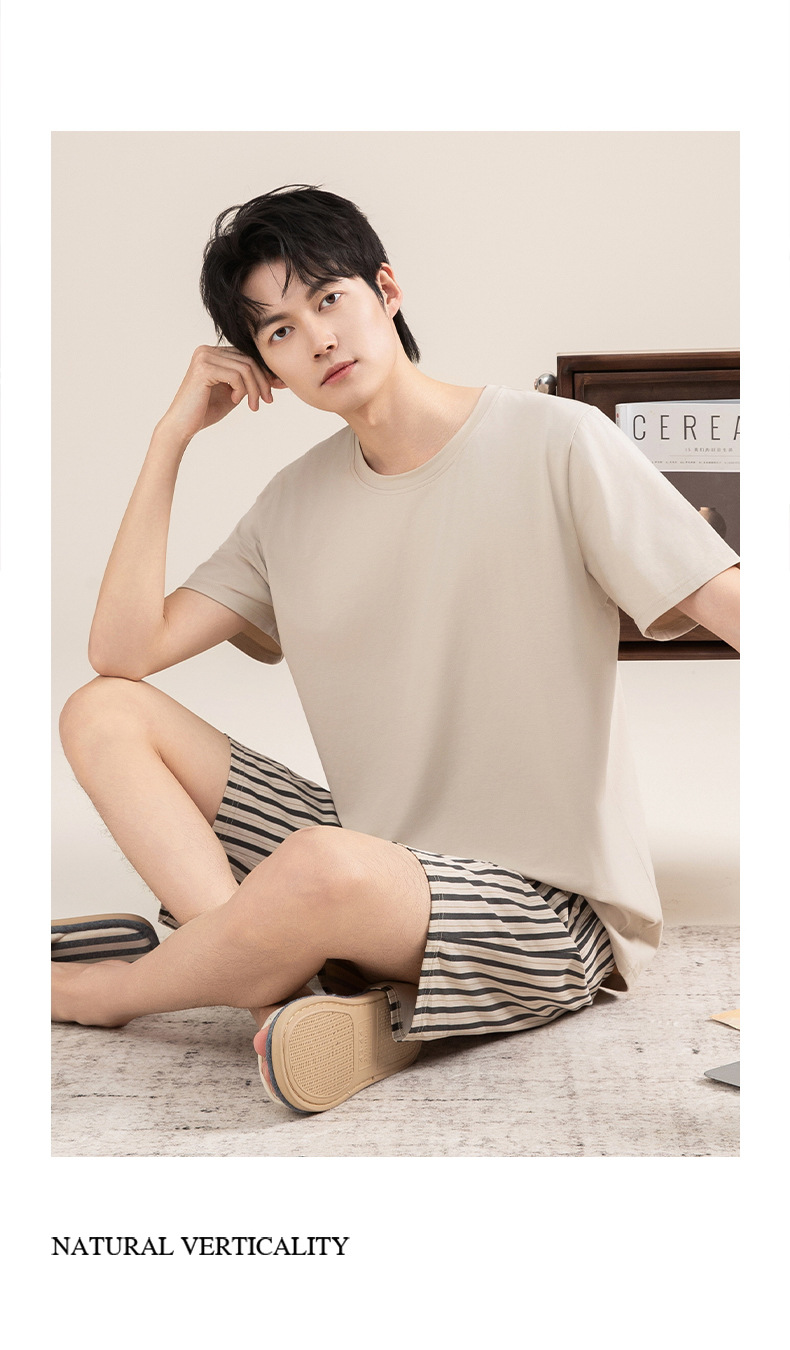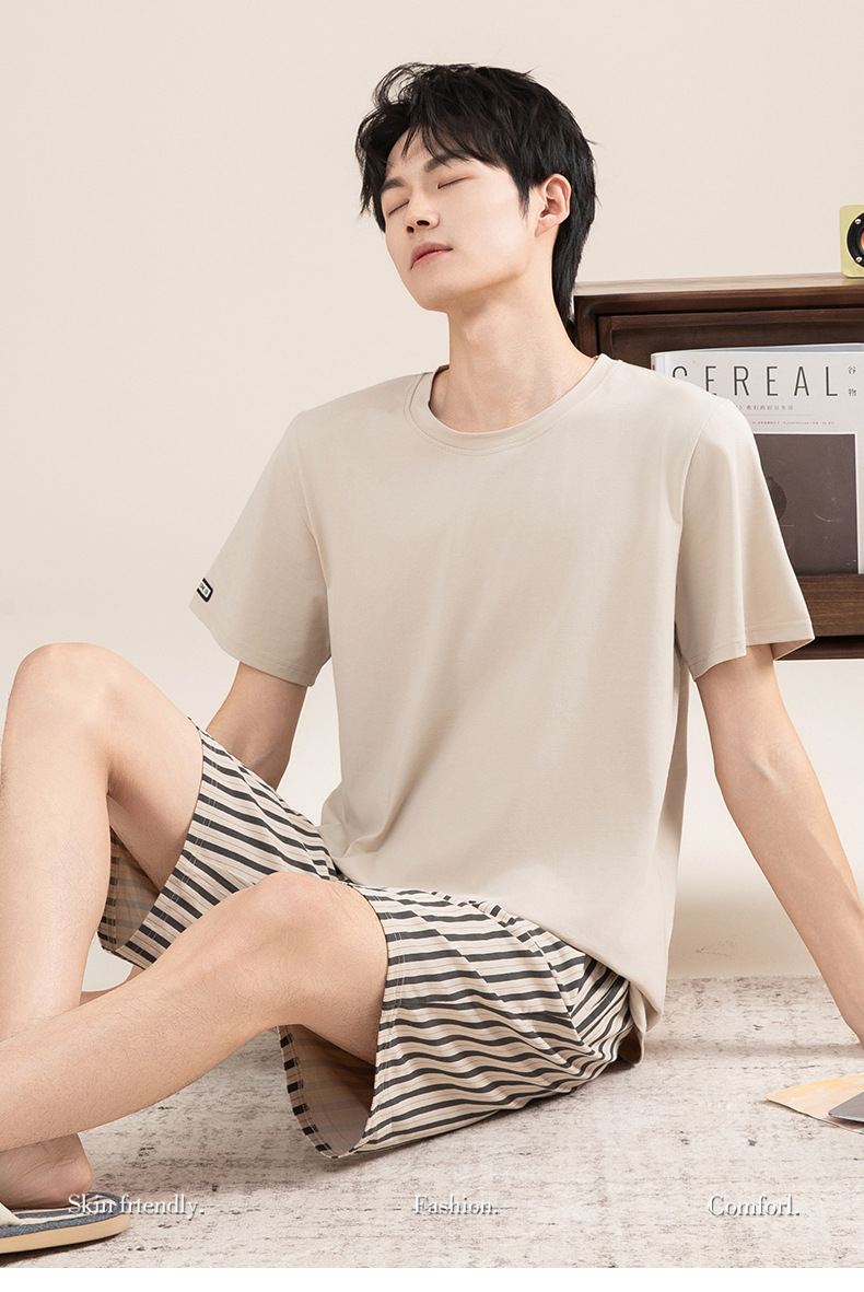 Pijamas de algodón para hombres verano 2025 nuevo cuello redondo de manga corta delgado verano se puede usar con ropa casera