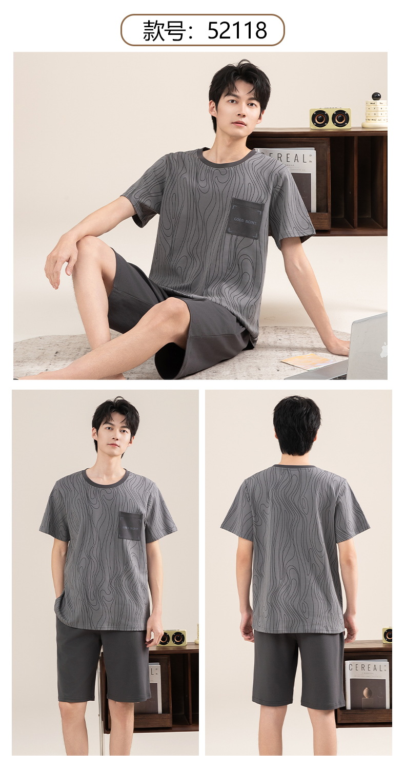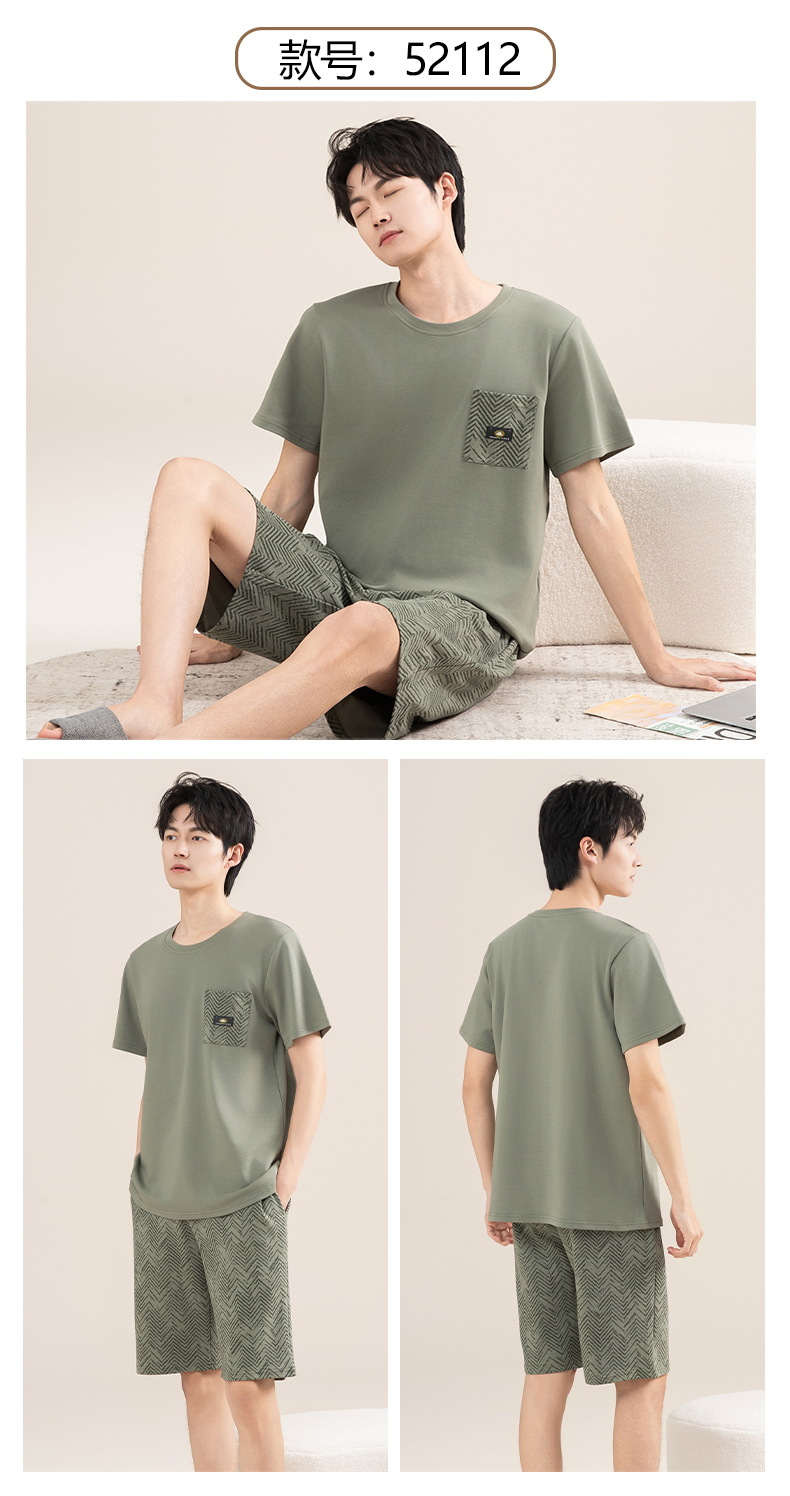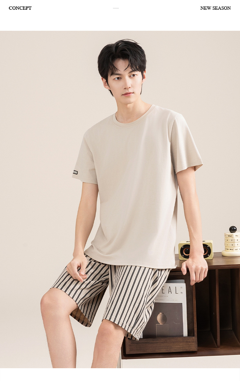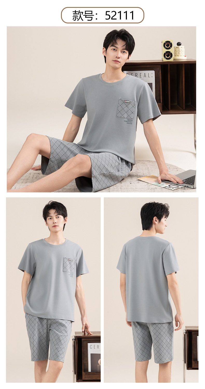 Pijamas de algodón para hombres verano 2025 nuevo cuello redondo de manga corta delgado verano se puede usar con ropa casera