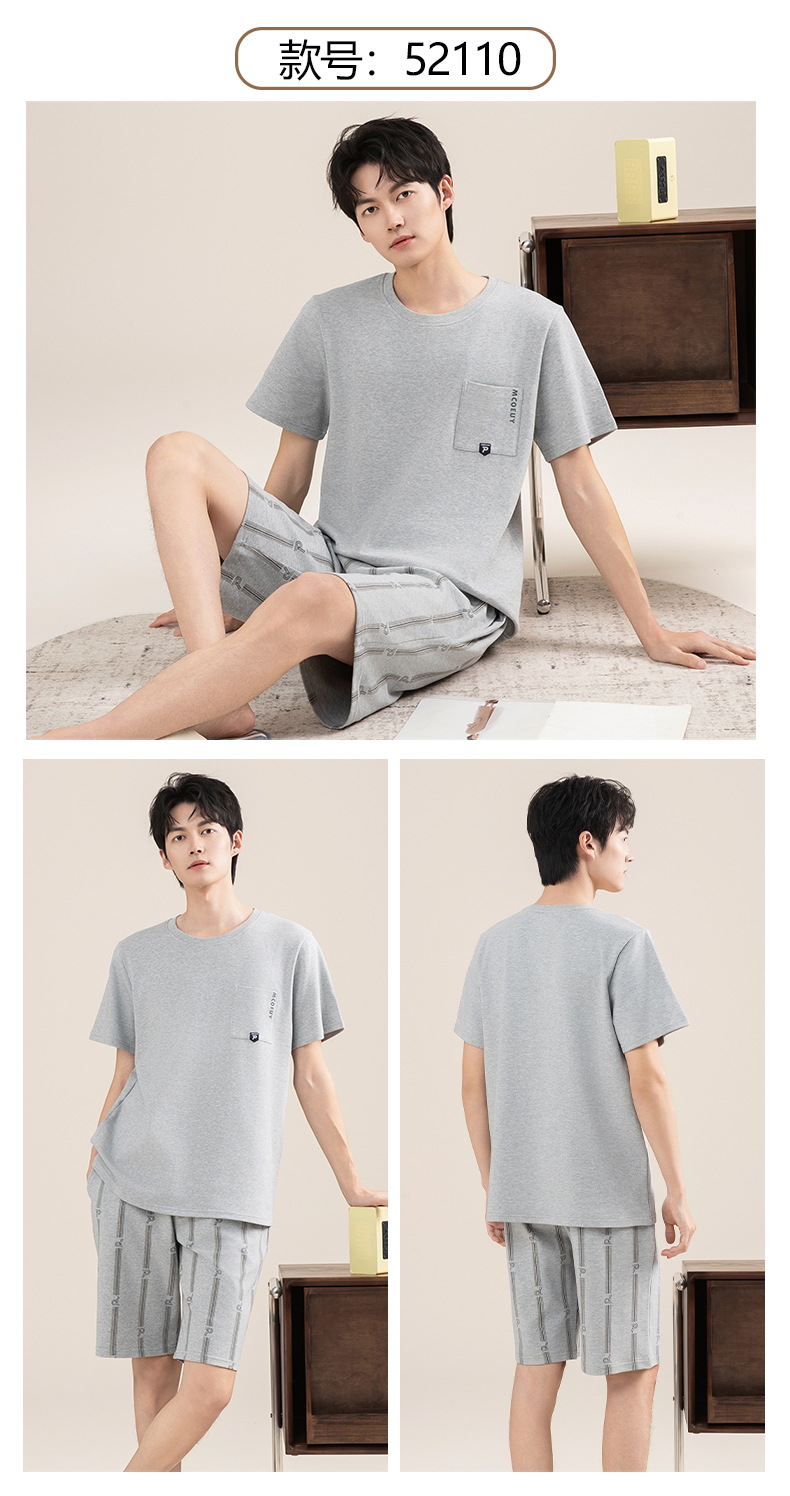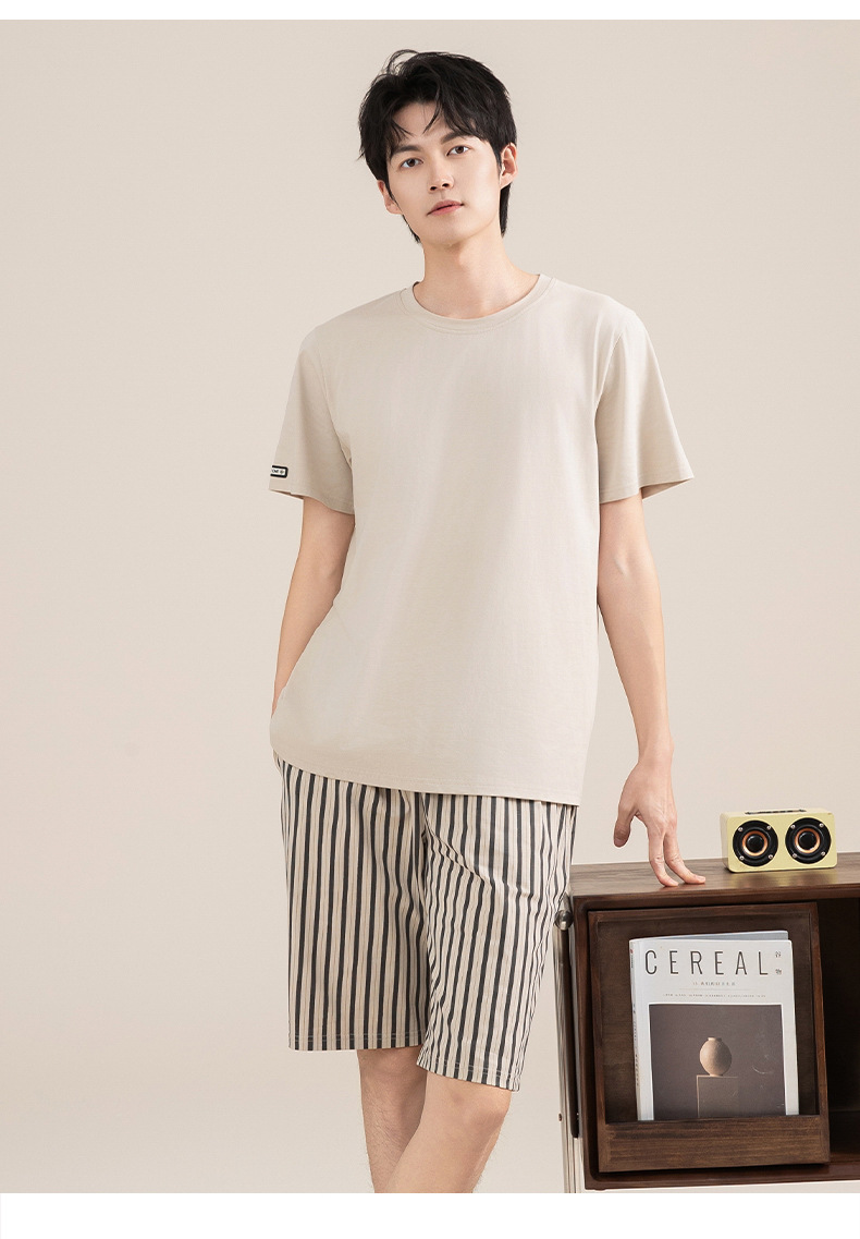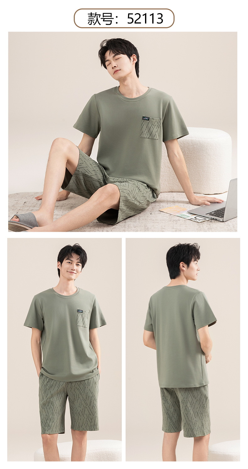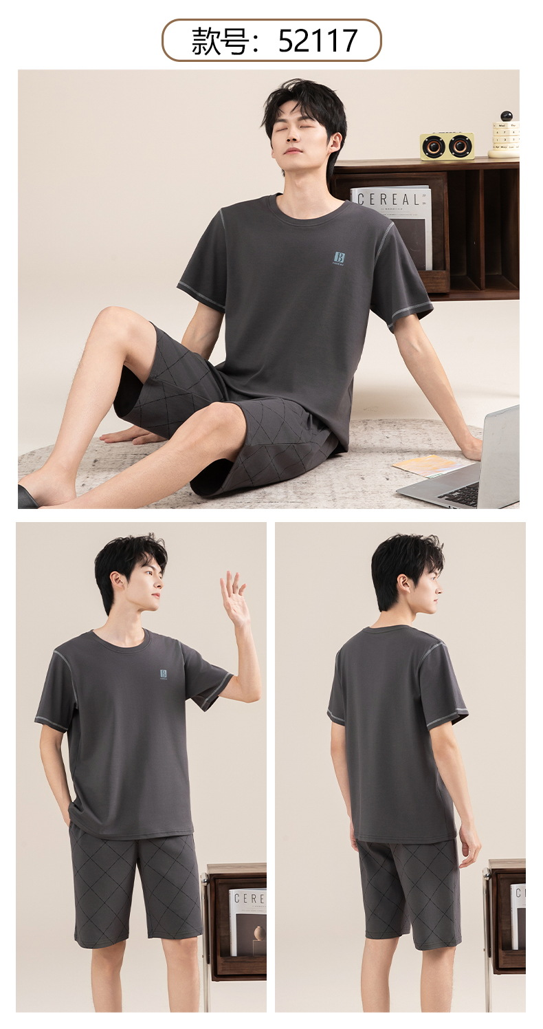 Pijamas de algodón para hombres verano 2025 nuevo cuello redondo de manga corta delgado verano se puede usar con ropa casera