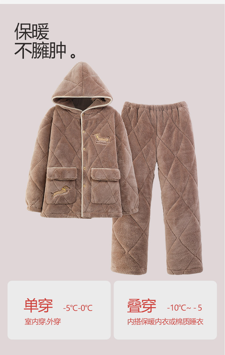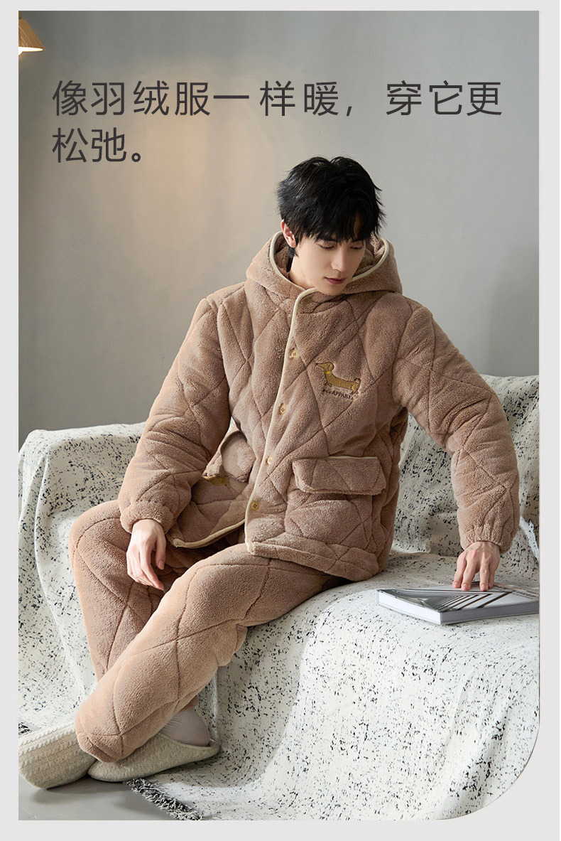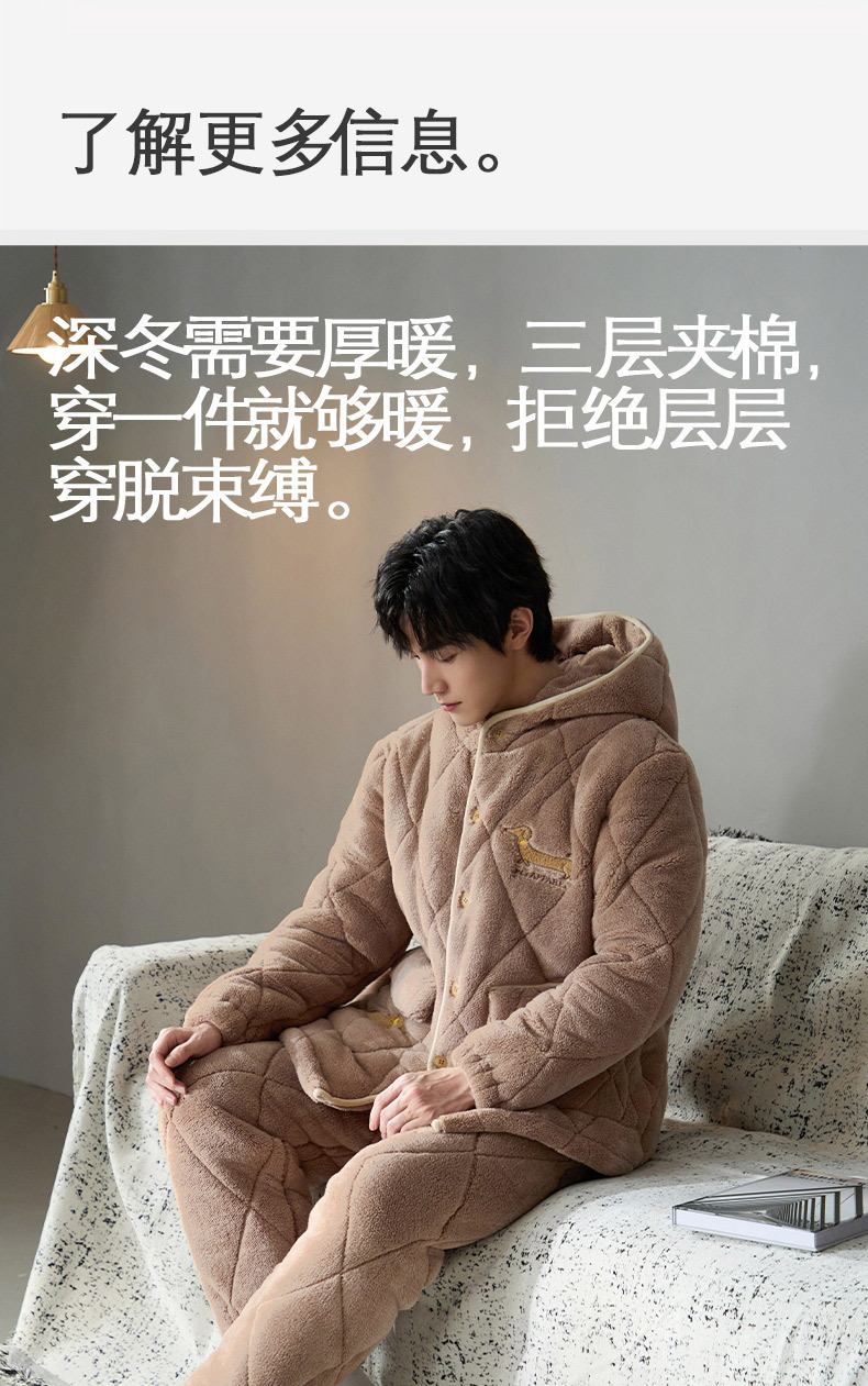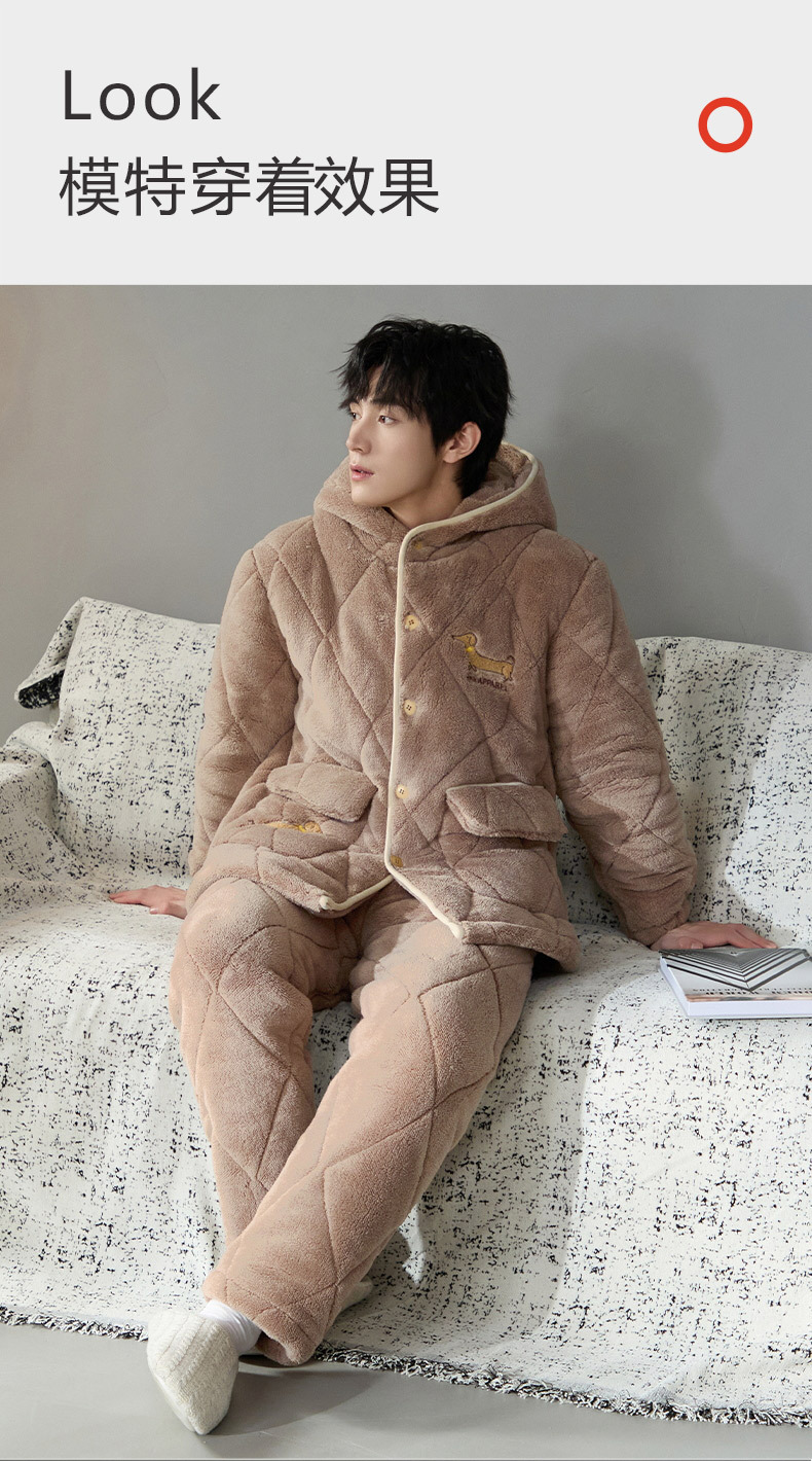 Pijama de hombre para hombre 2024 invierno encapuchado tres capas de algodón intercalado de mangas largas con camisa gruesa se puede usar en el exterior conjunto de ropa de casa
