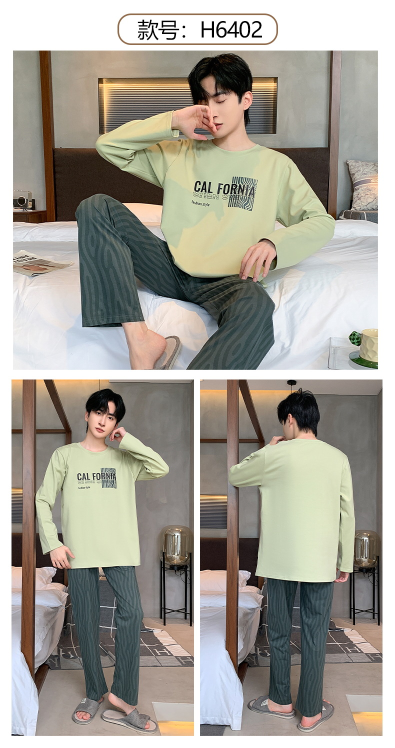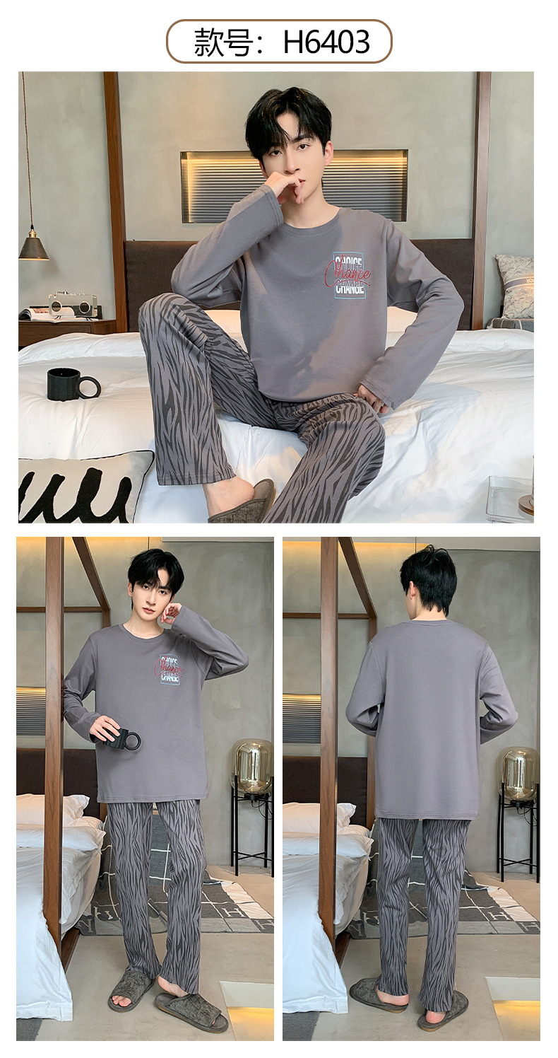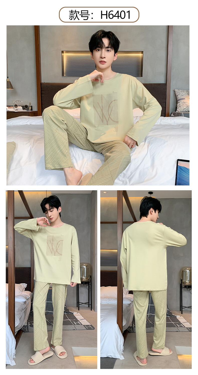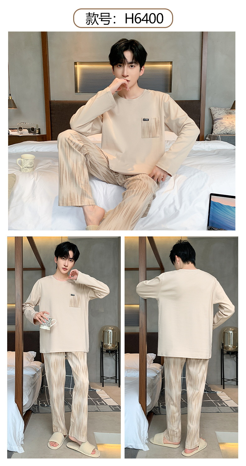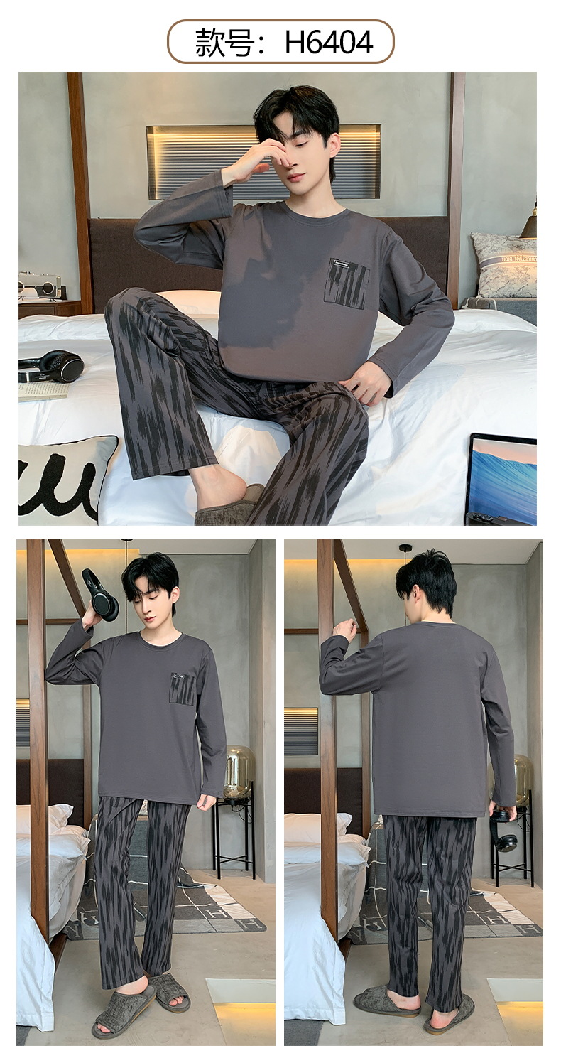 Pijama de algodón masculino primavera y otoño rayas cómodo color sólido delgado casual suelto pantalones largos de mangas largas set de ropa para el hogar