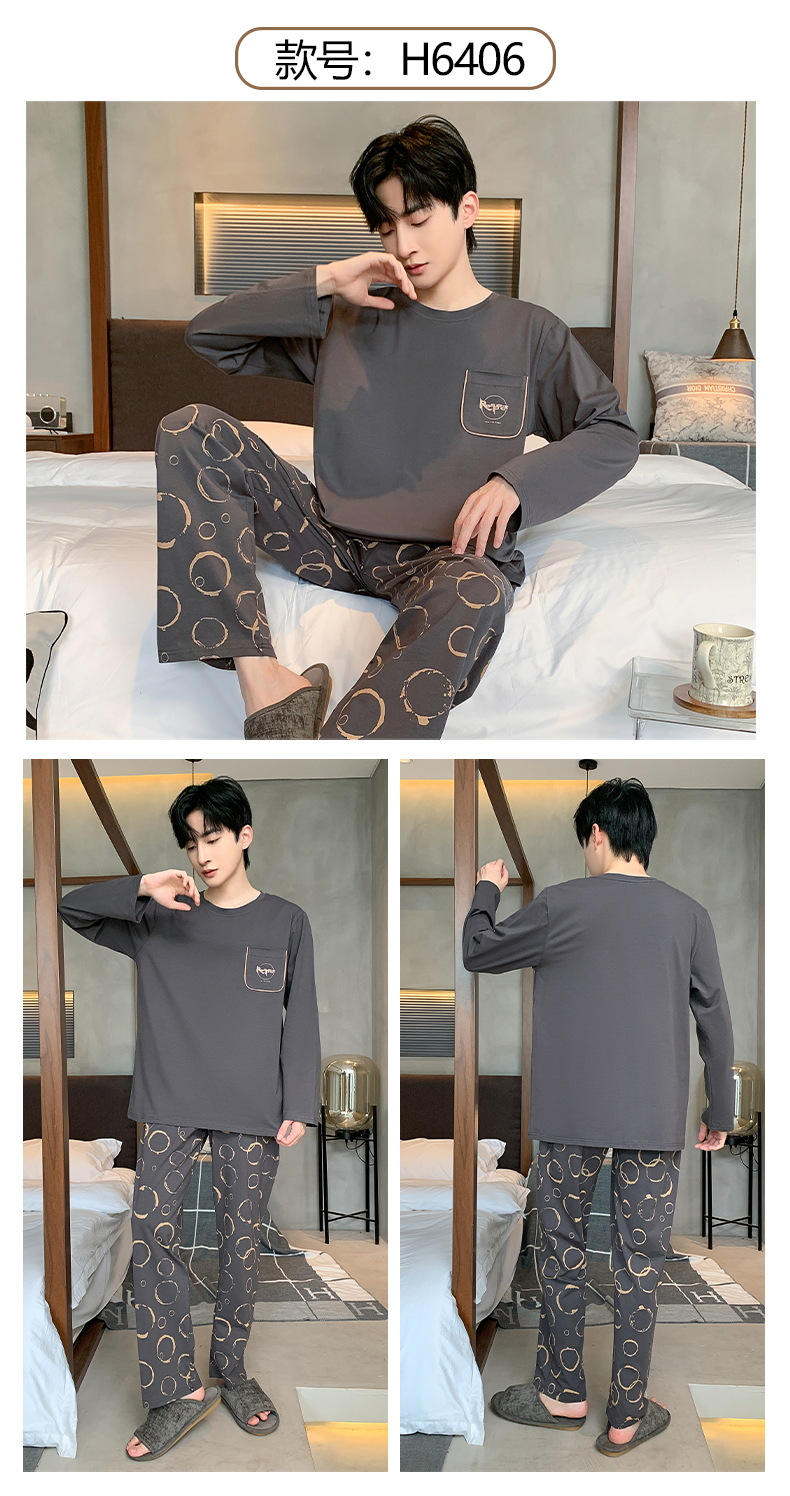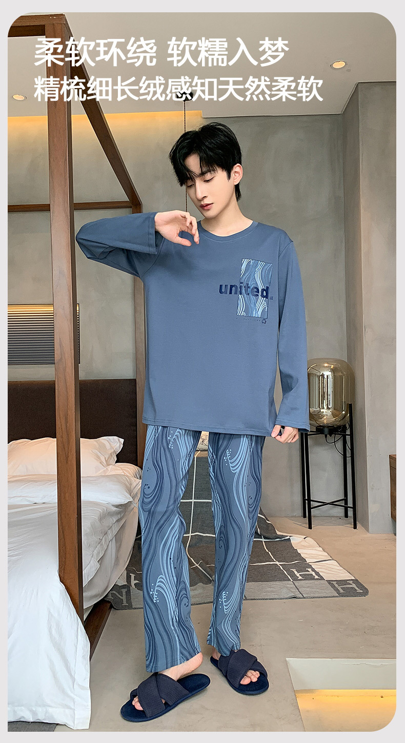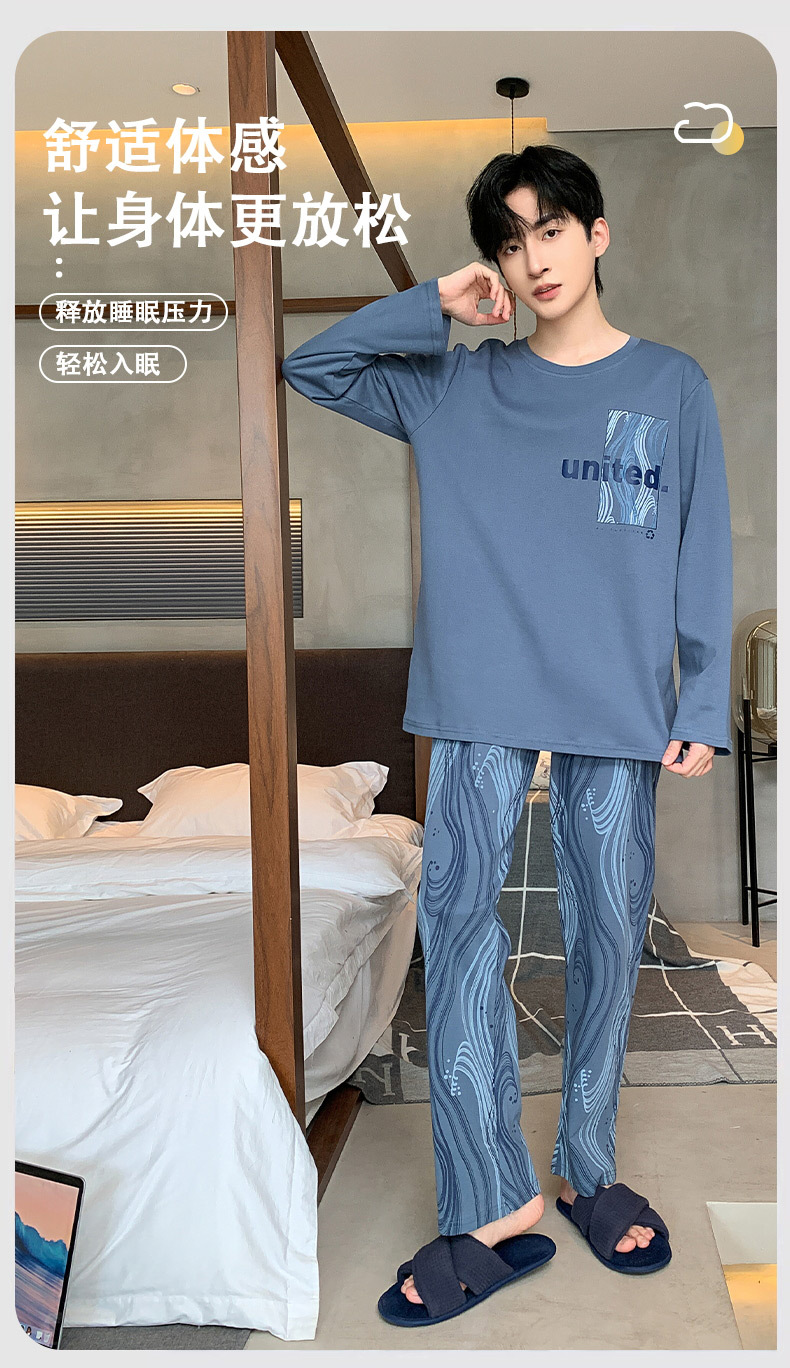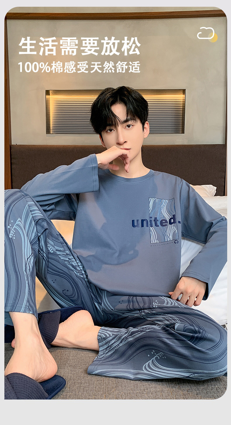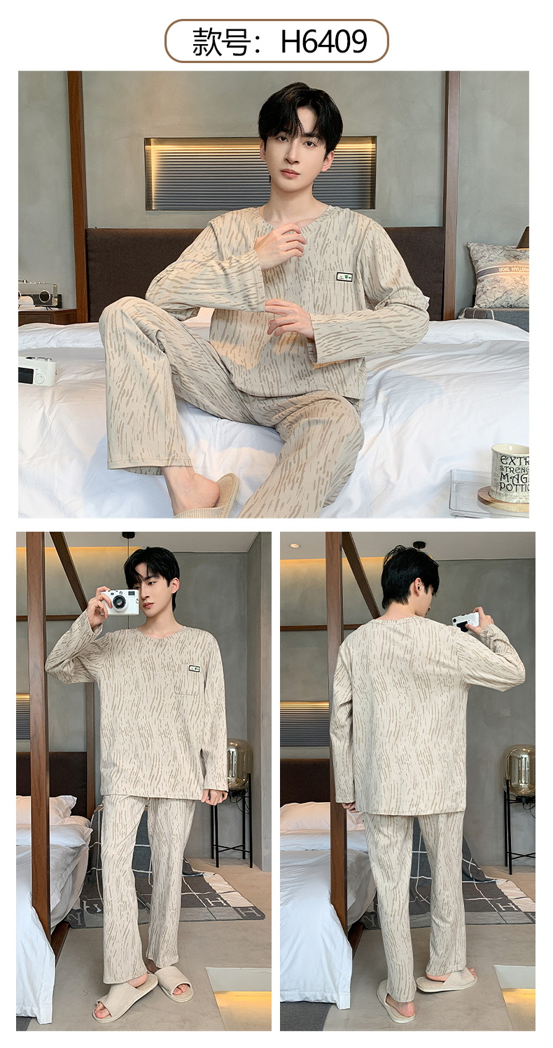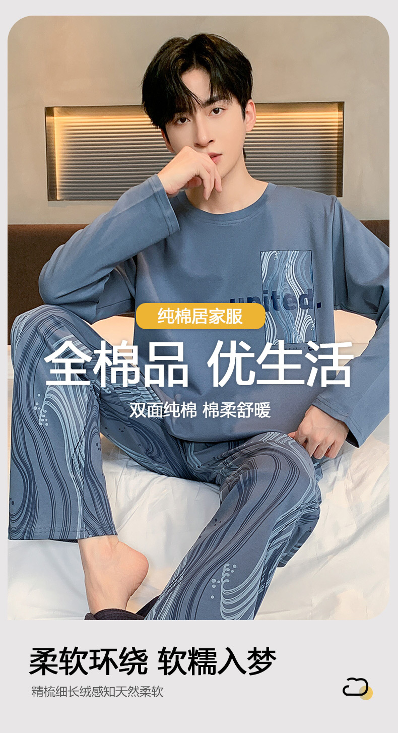 Pijama de algodón masculino primavera y otoño rayas cómodo color sólido delgado casual suelto pantalones largos de mangas largas set de ropa para el hogar