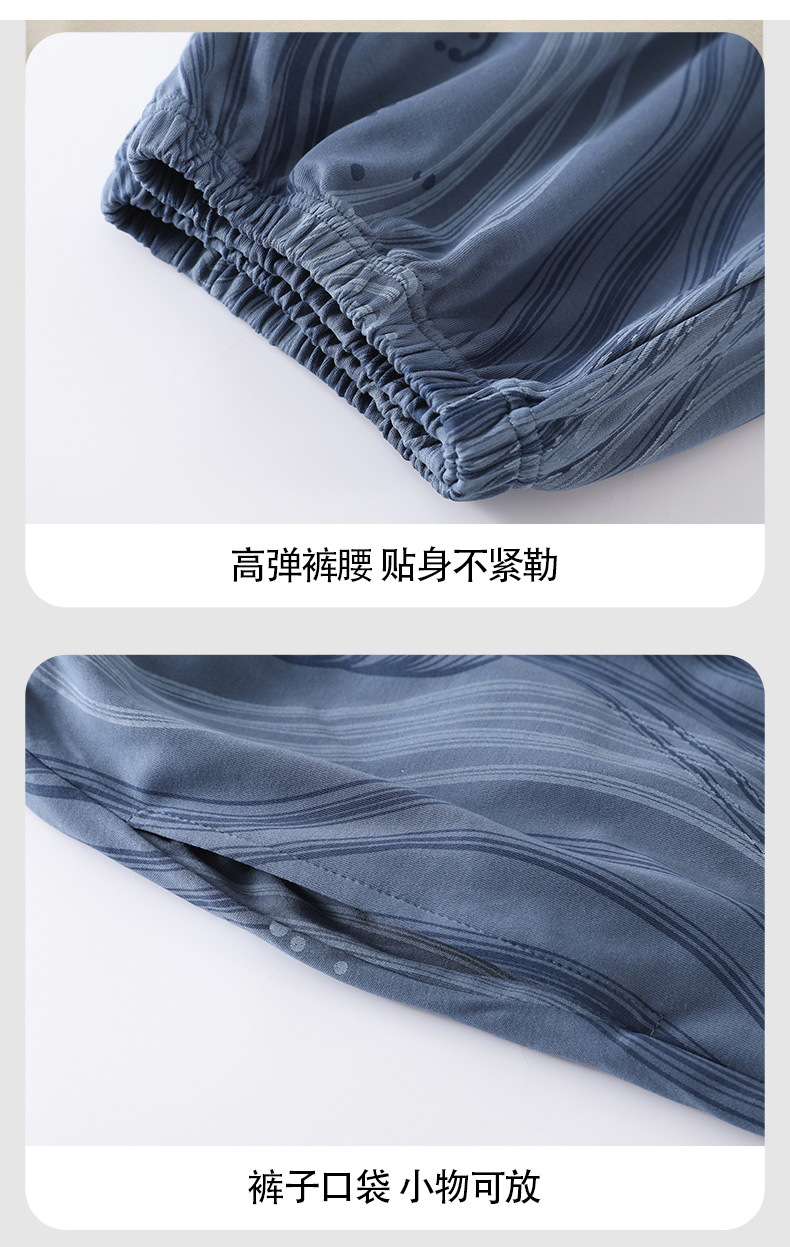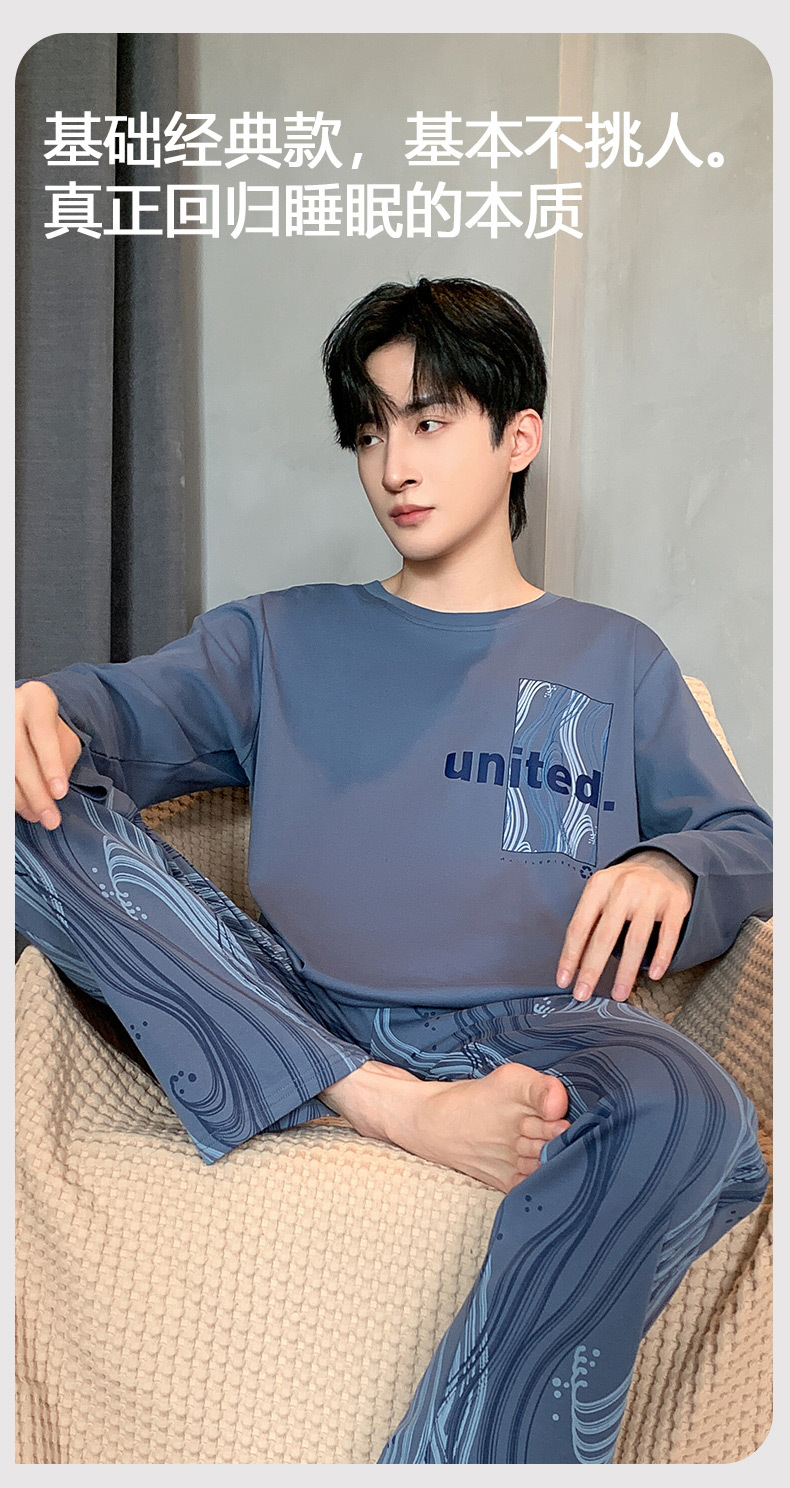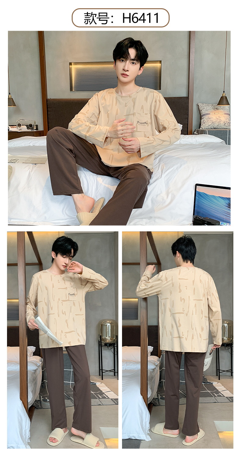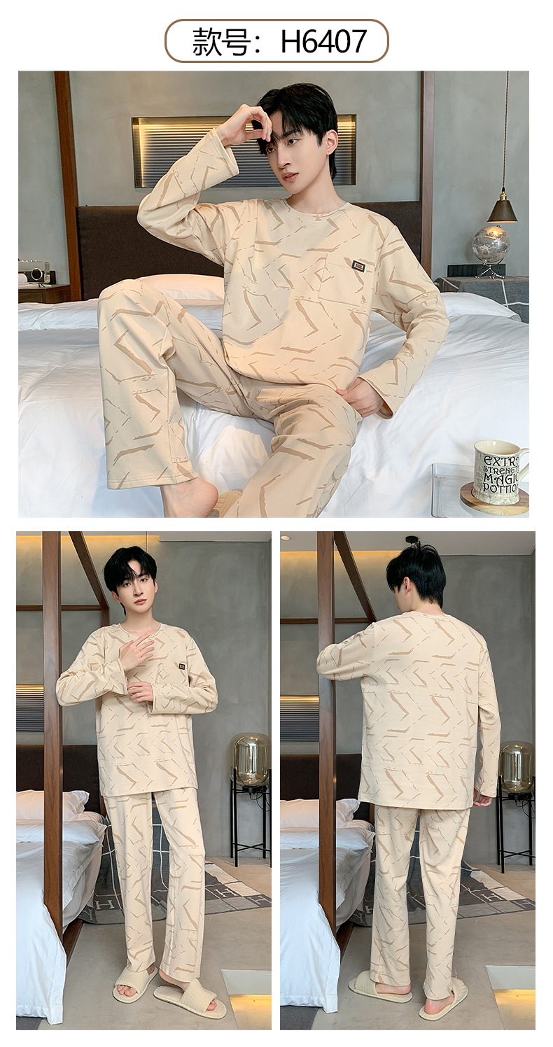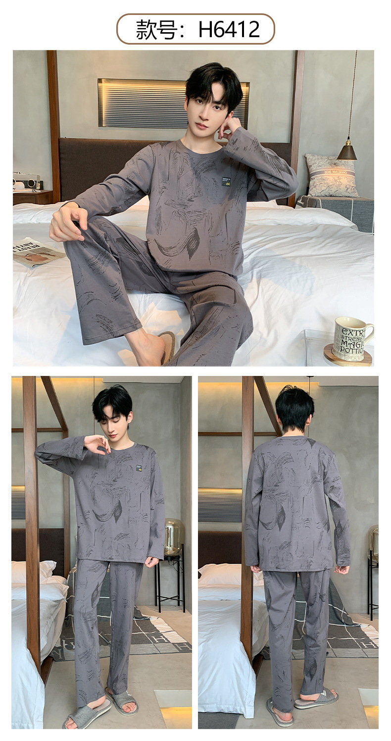 Pijama de algodón masculino primavera y otoño rayas cómodo color sólido delgado casual suelto pantalones largos de mangas largas set de ropa para el hogar