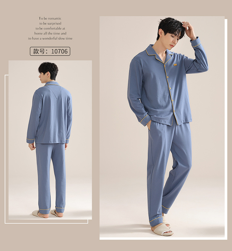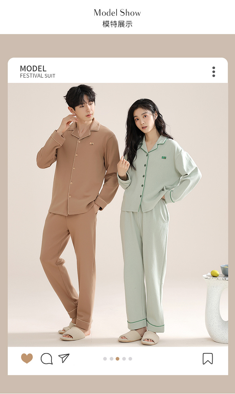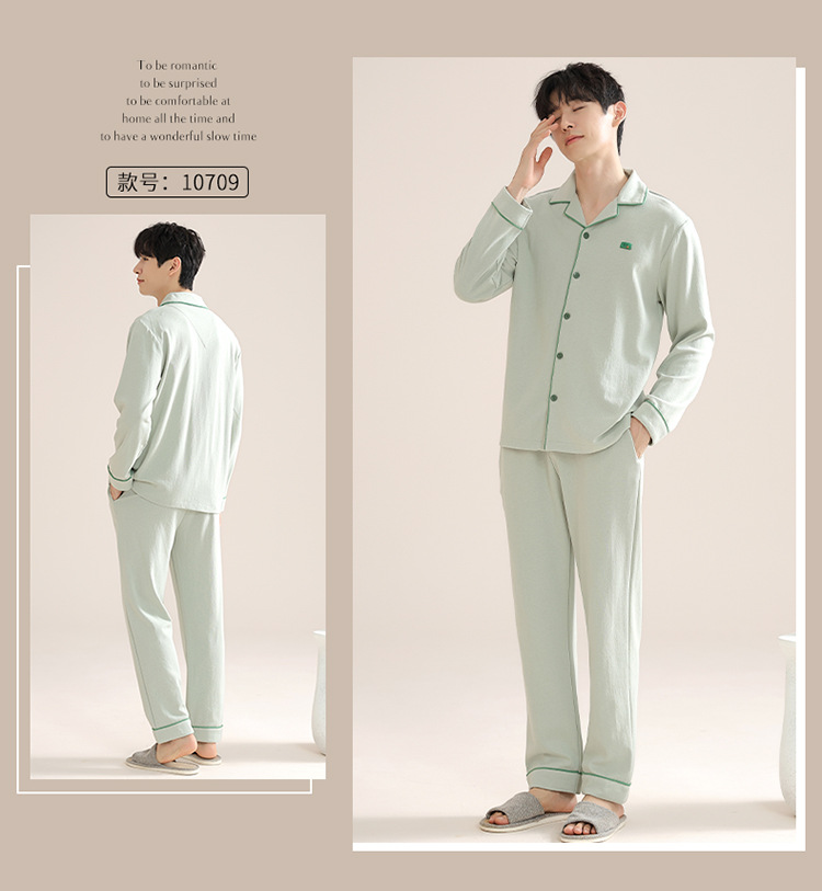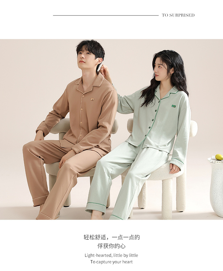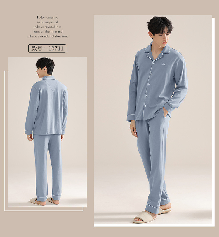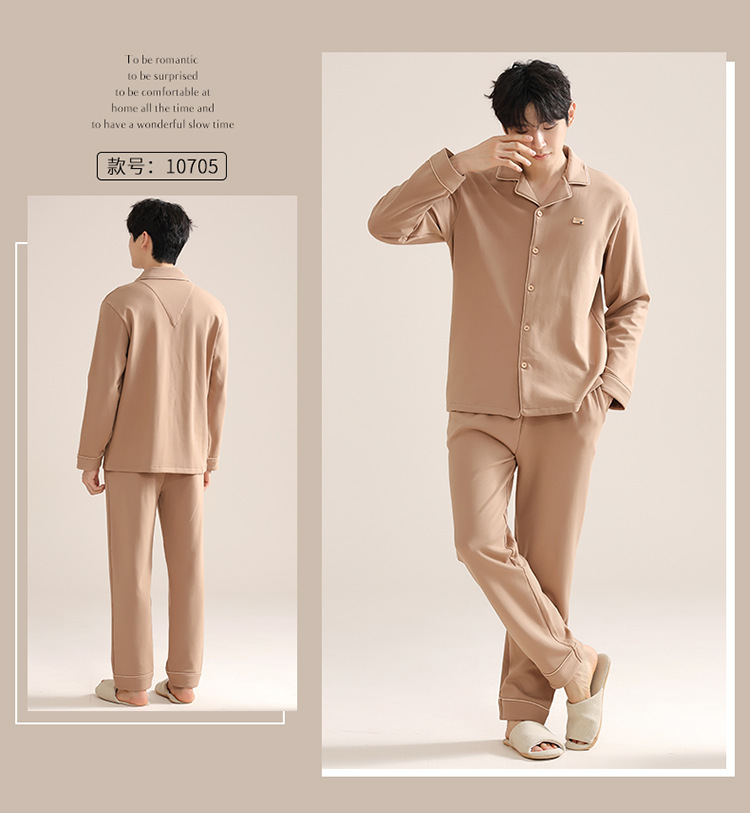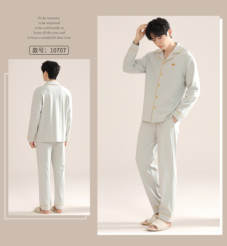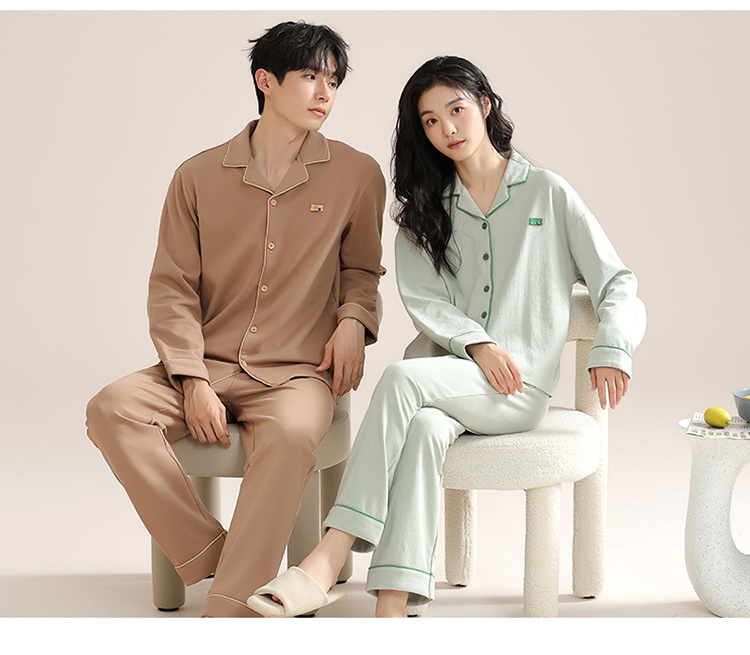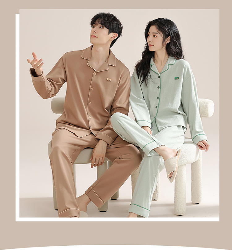 Algodón puro pareja pijamas de las mujeres del otoño nuevo simple chica lycra algodón manga larga vestir prendas exteriores desgaste los hombres traje