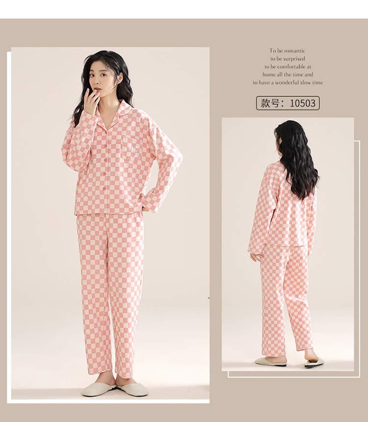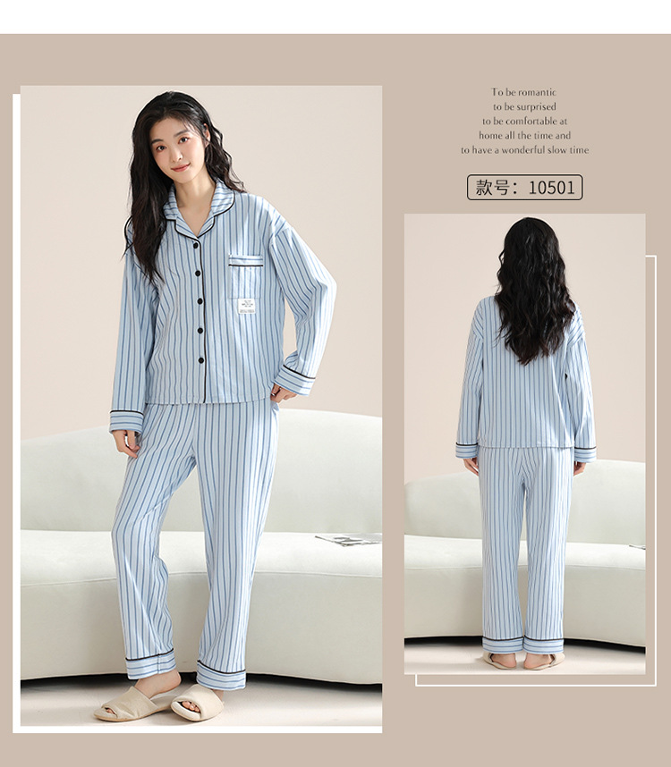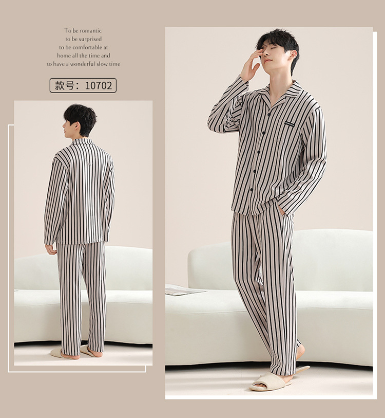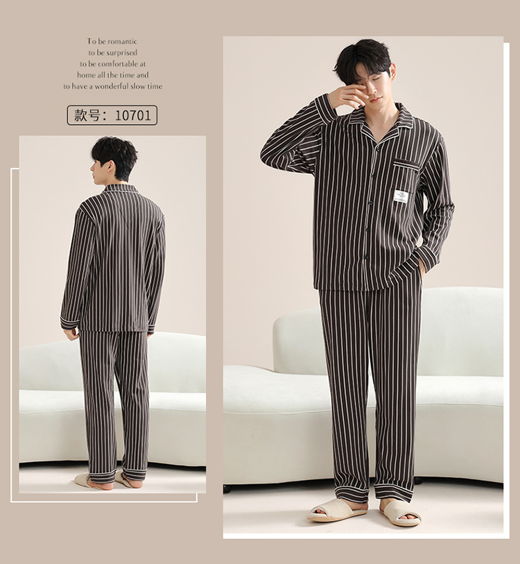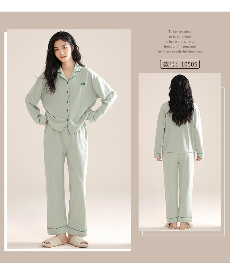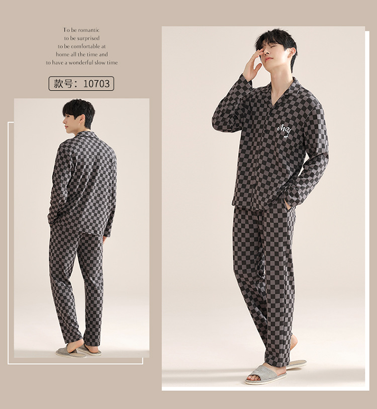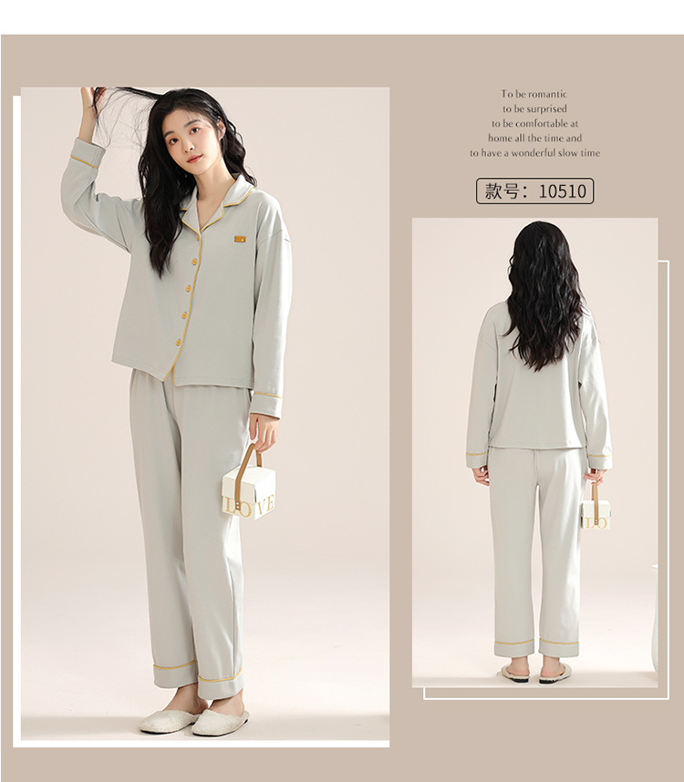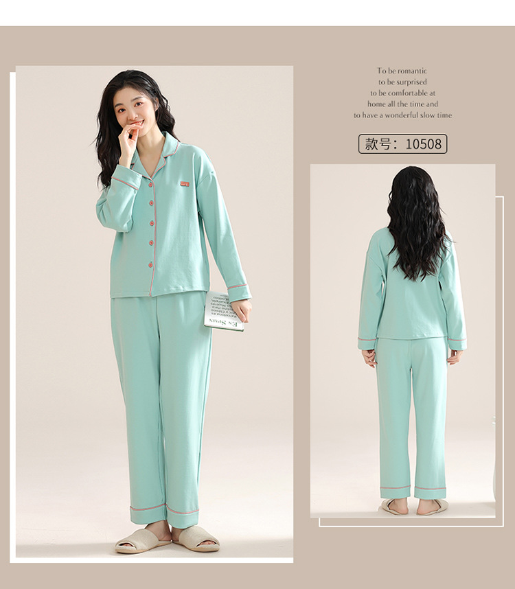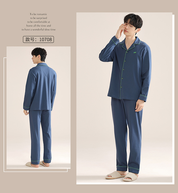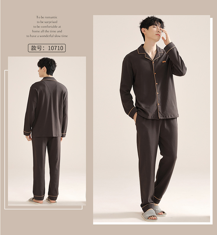 Algodón puro pareja pijamas de las mujeres del otoño nuevo simple chica lycra algodón manga larga vestir prendas exteriores desgaste los hombres traje