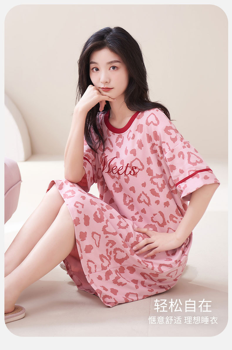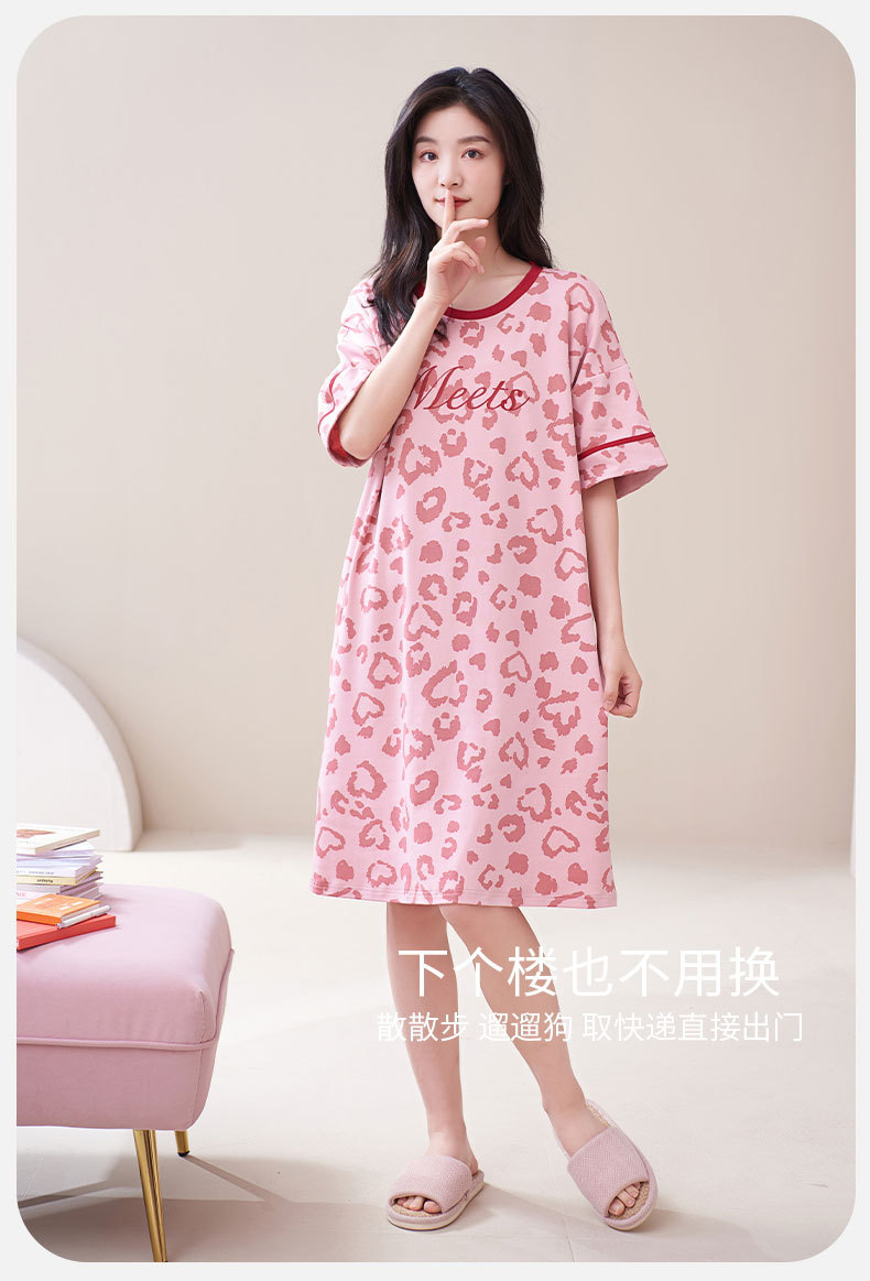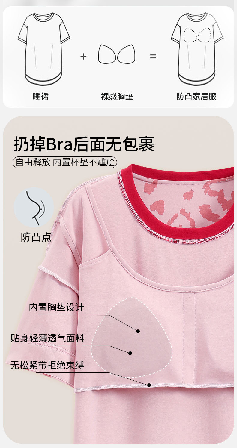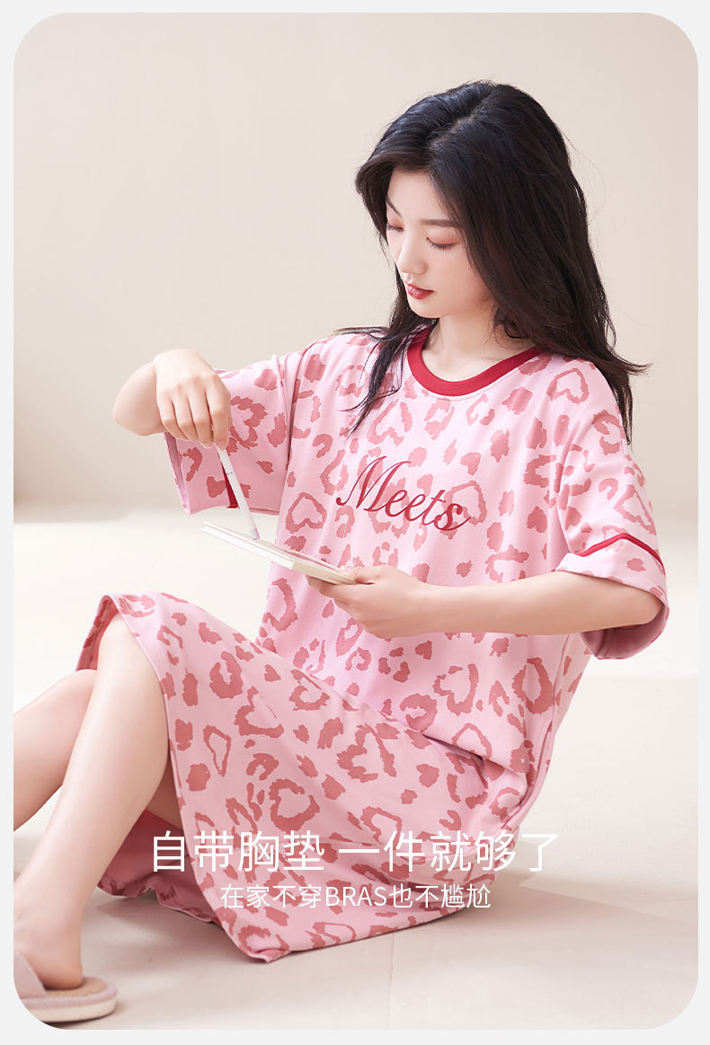 Camisón con almohadilla en el pecho pijamas de manga corta de algodón de verano para mujer dulce fresco cuello redondo ropa para el hogar vestido de verano