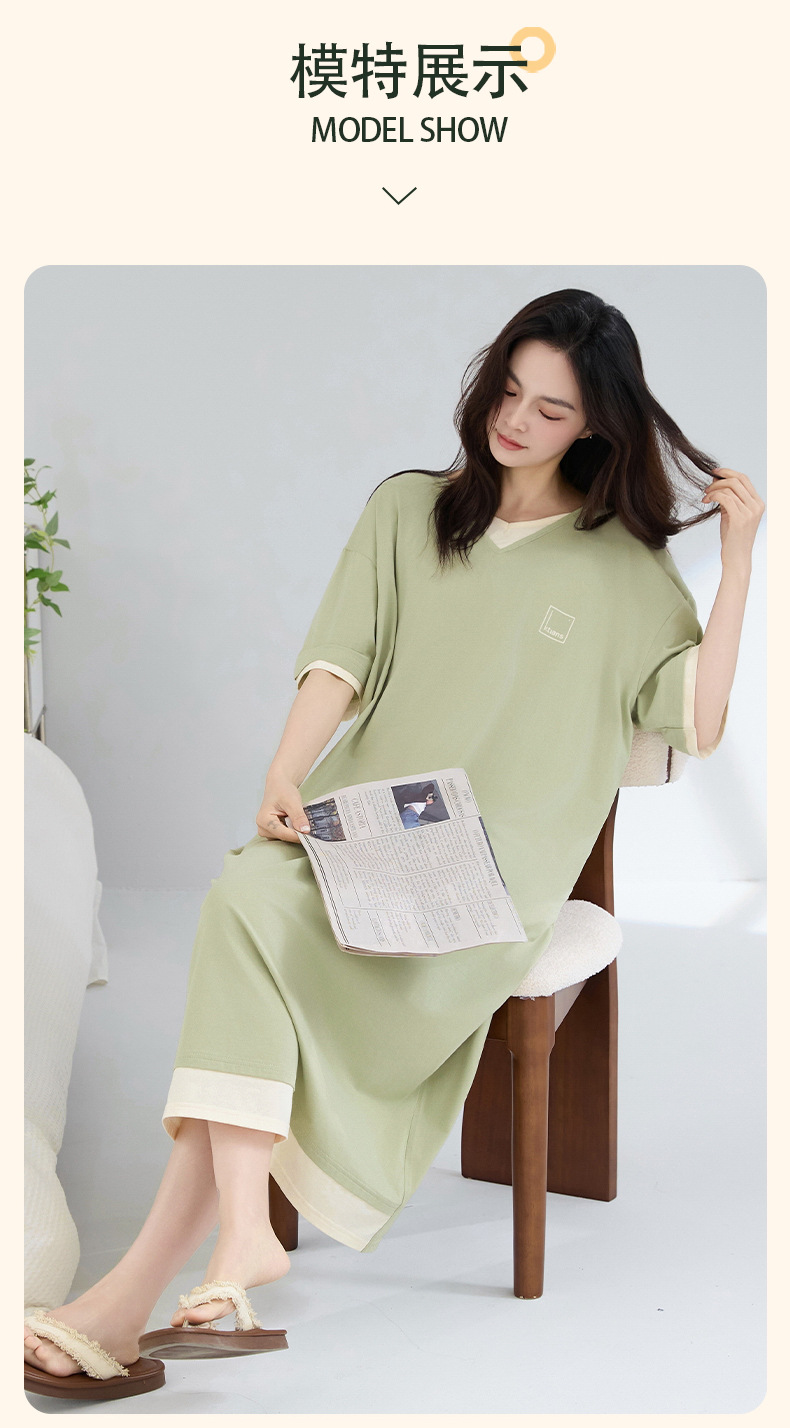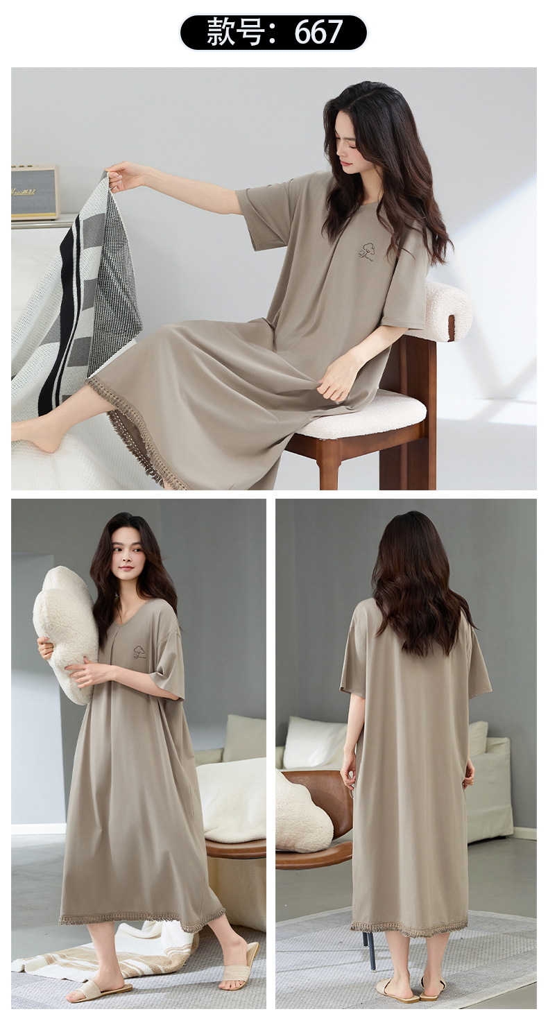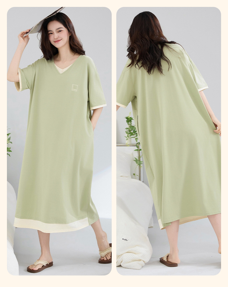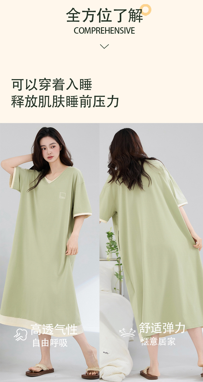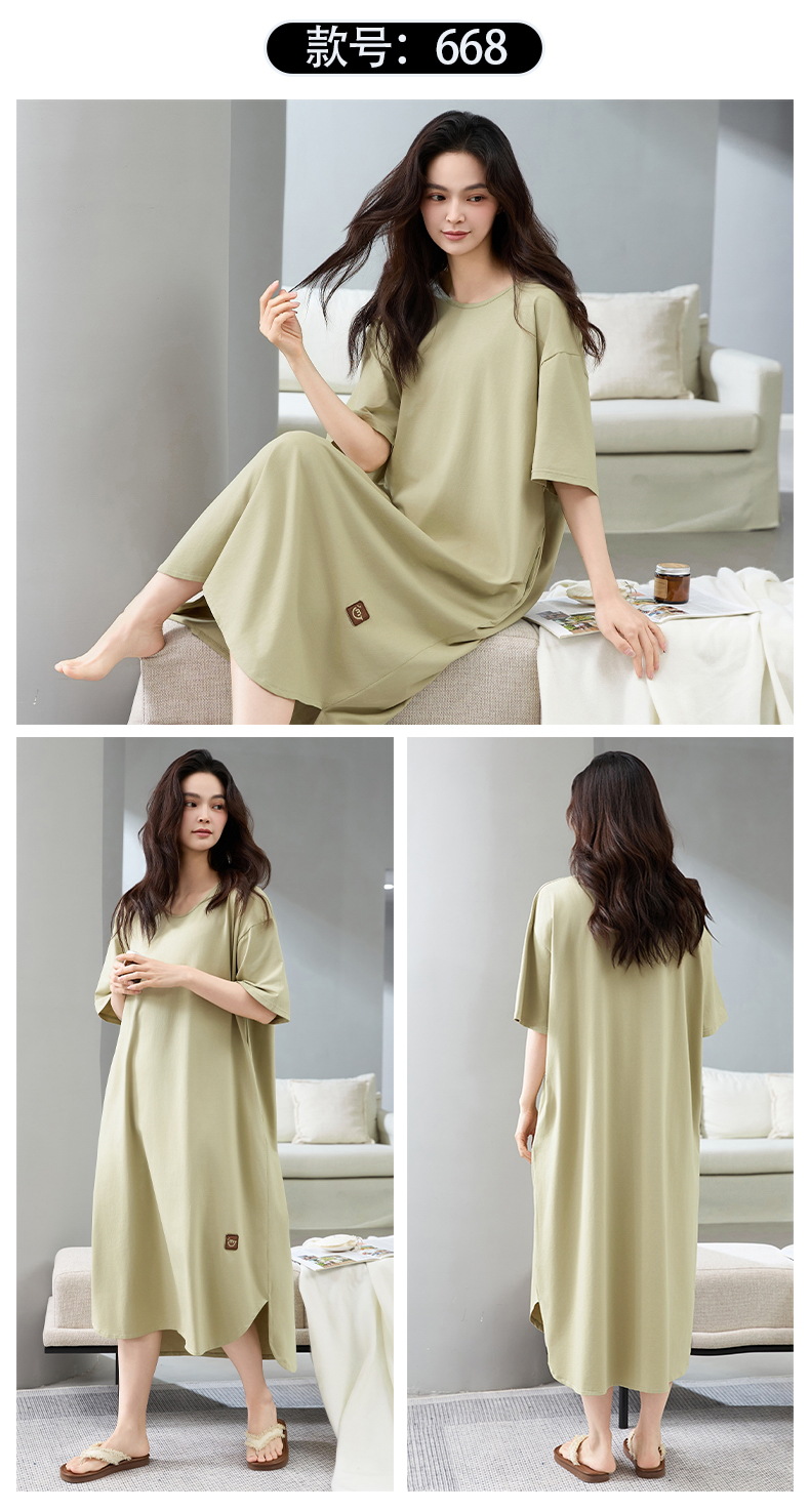 Camisón mujer verano algodón de manga corta tirante largo pijama de algodón fresco falda suelta ropa de hogar de gran tamaño se puede usar afuera