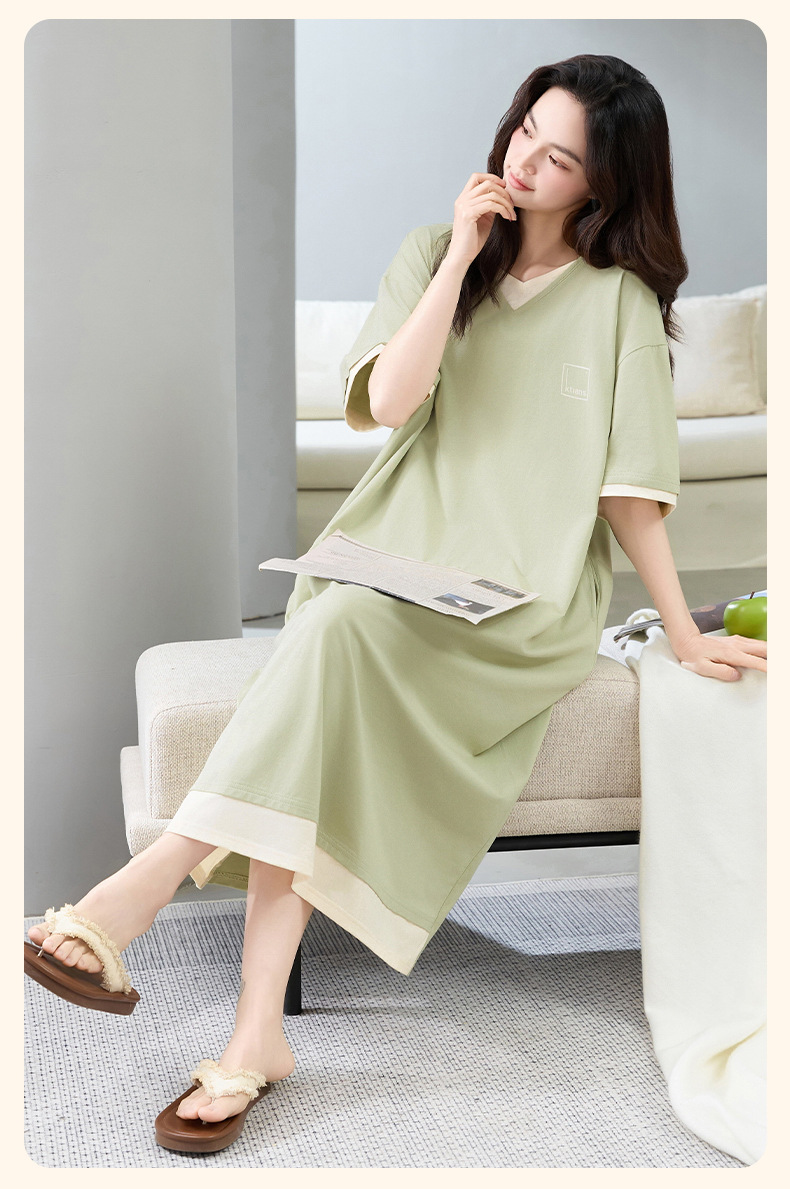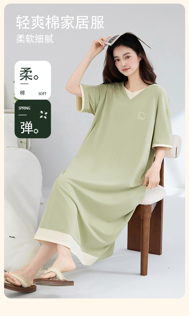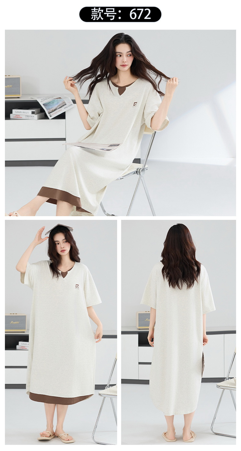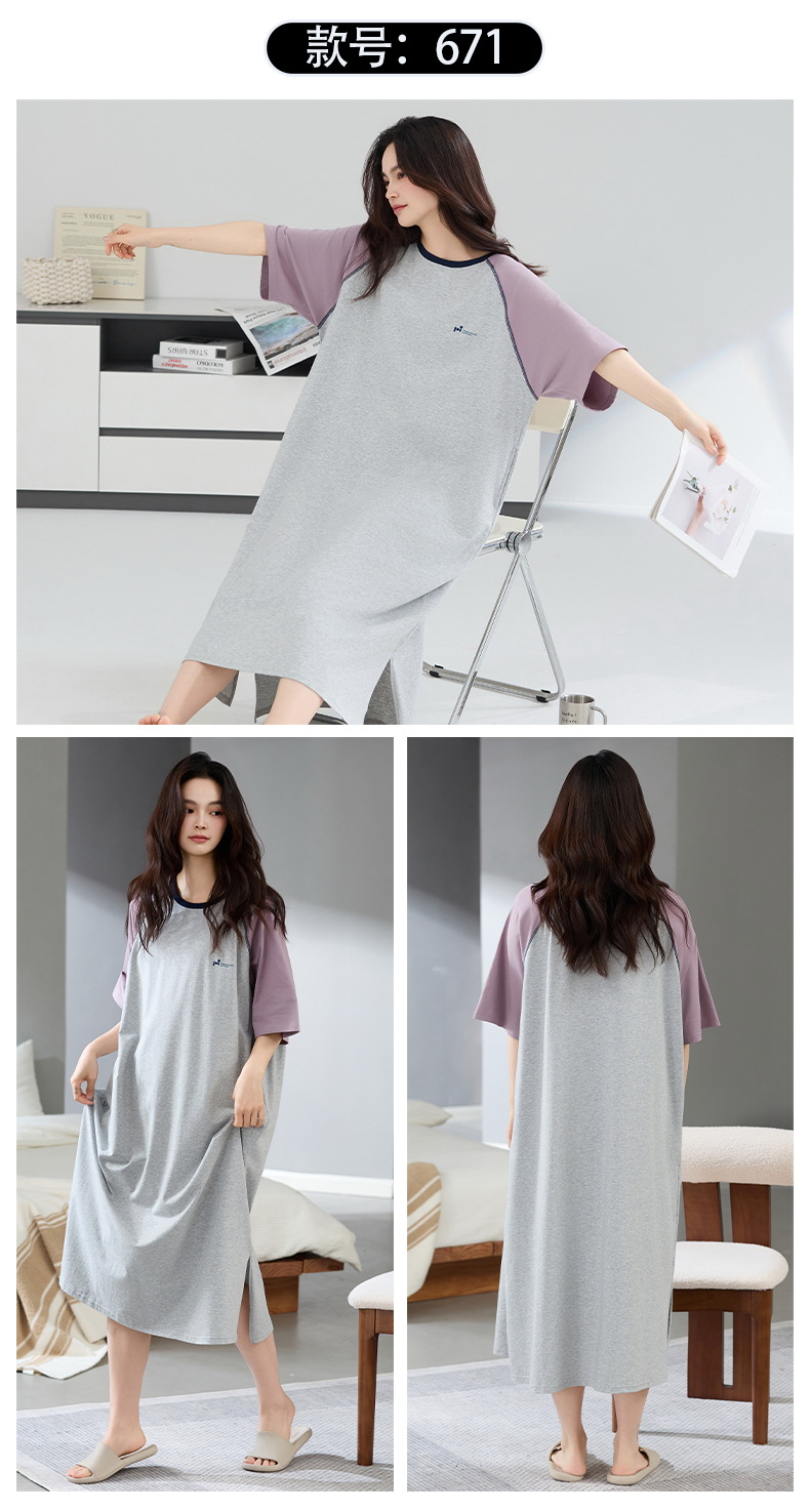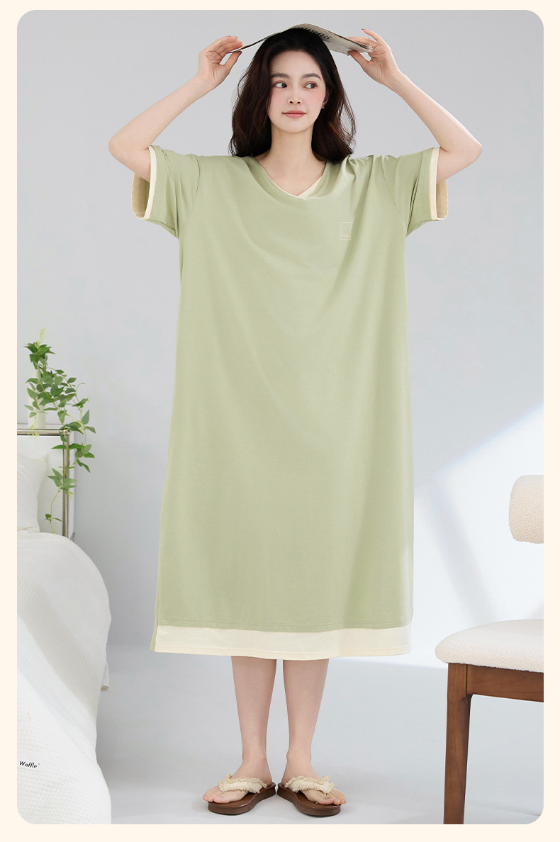 Camisón mujer verano algodón de manga corta tirante largo pijama de algodón fresco falda suelta ropa de hogar de gran tamaño se puede usar afuera