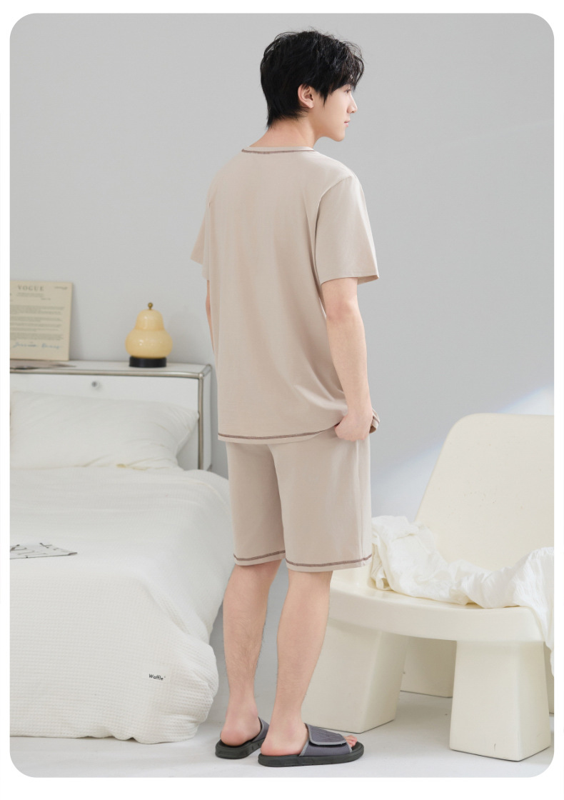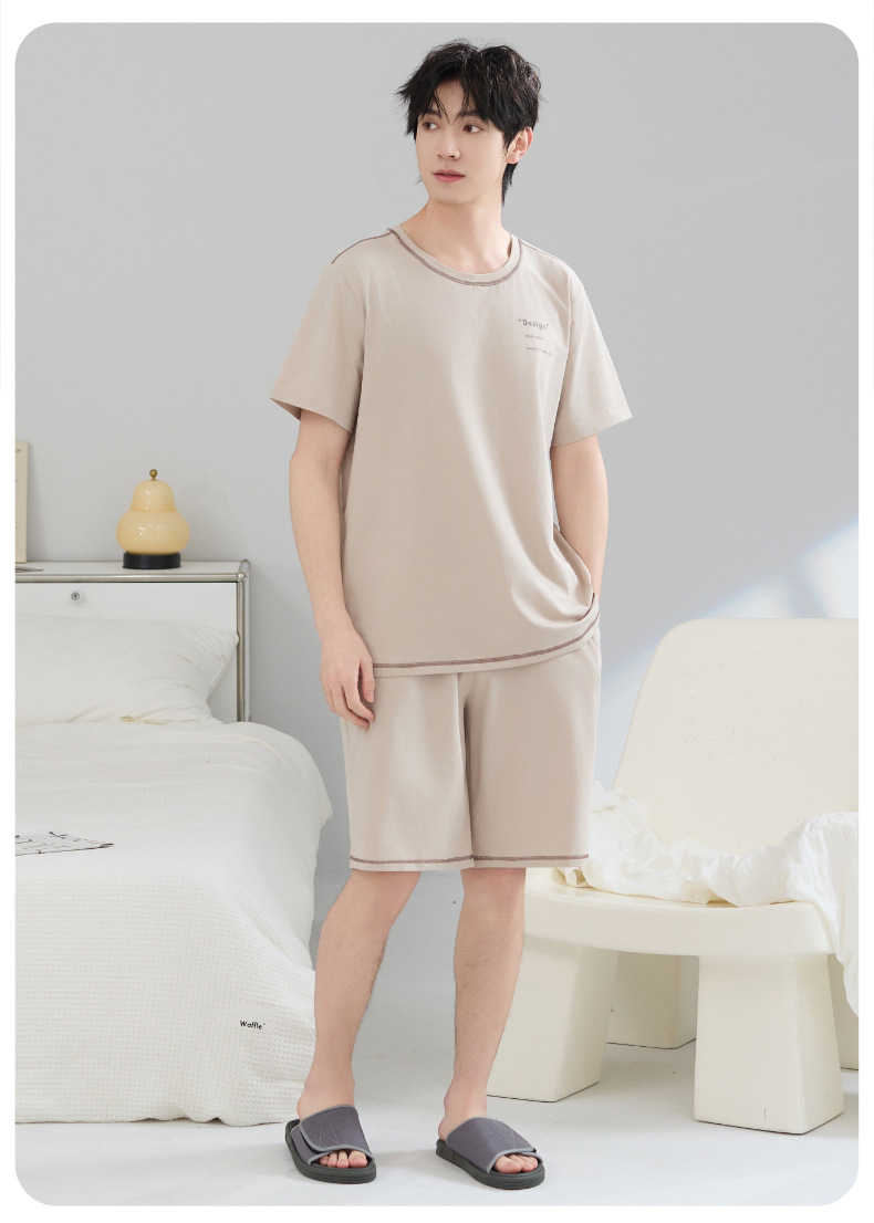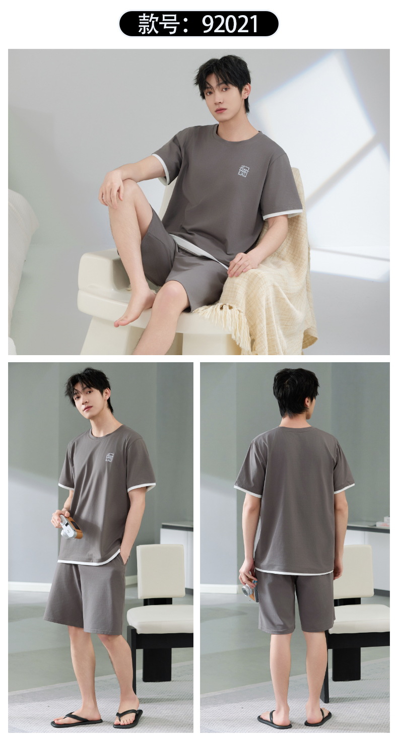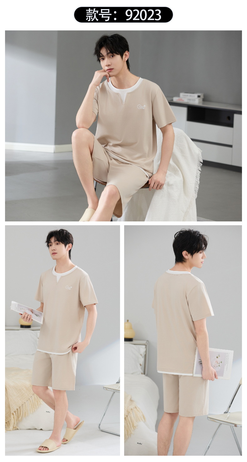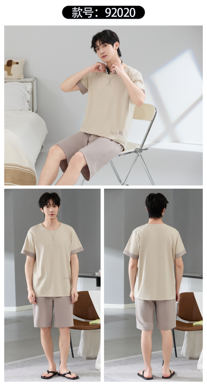 Pijamas de hombre verano algodón fino cuello redondo pantalones cortos de manga corta adolescente suelto de gran tamaño casual simple servicio a domicilio