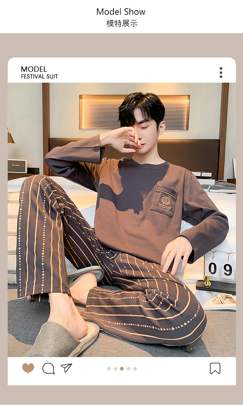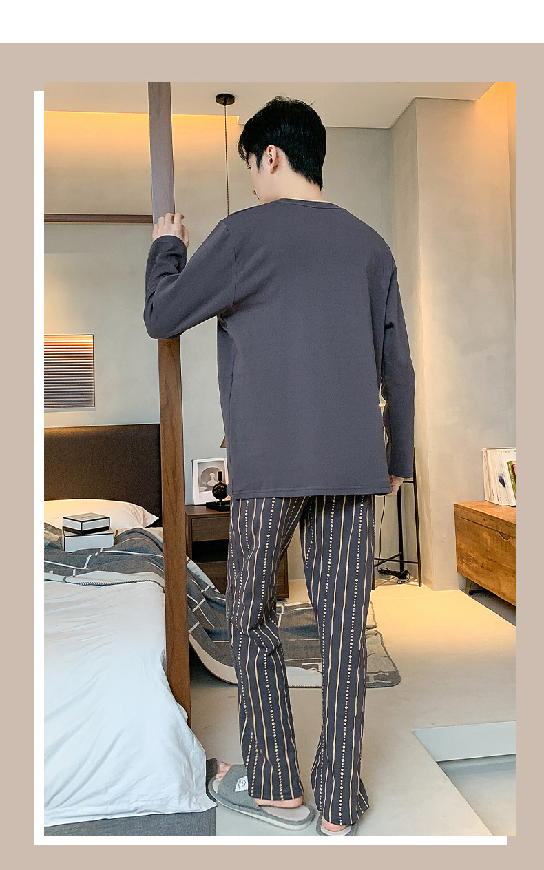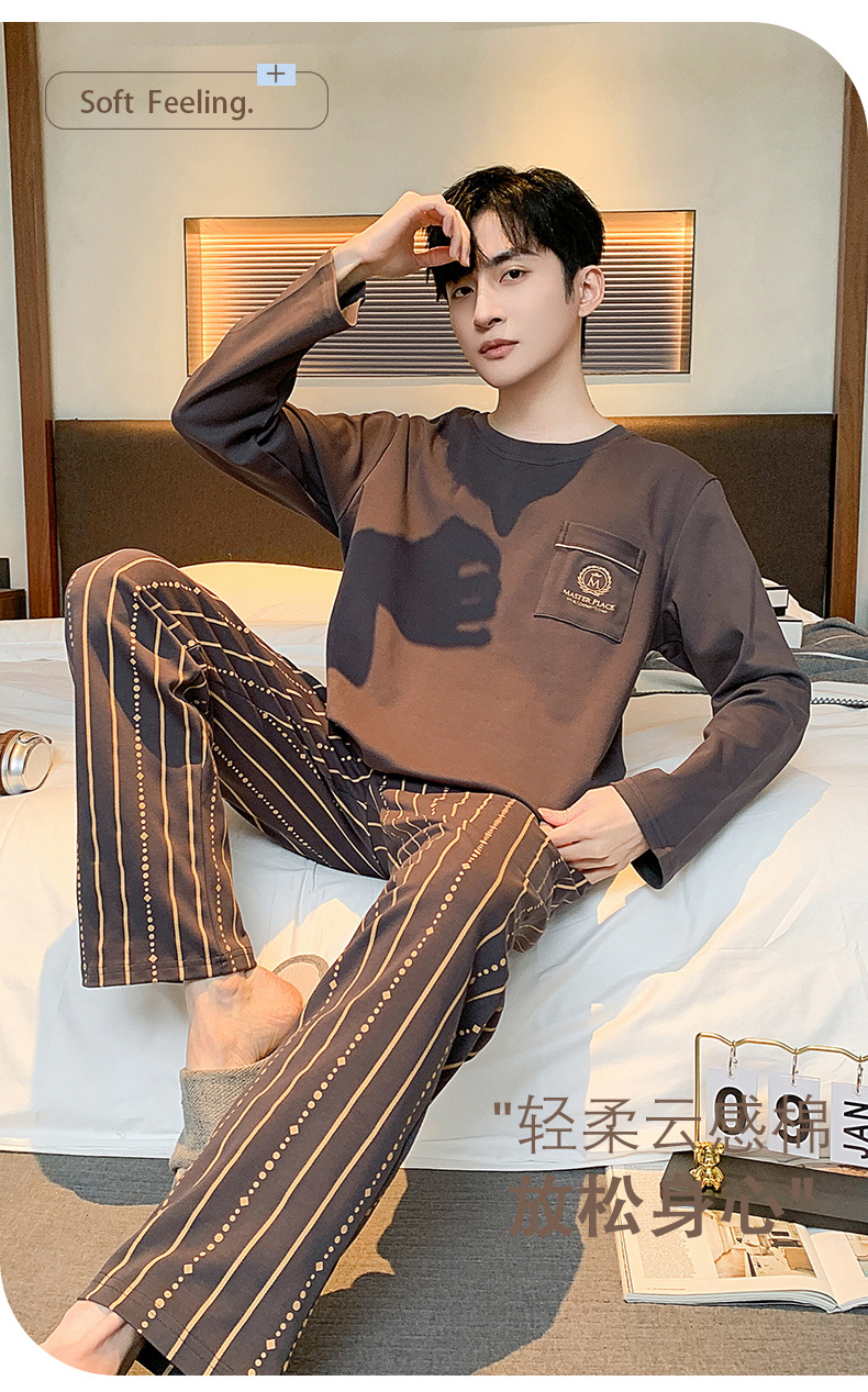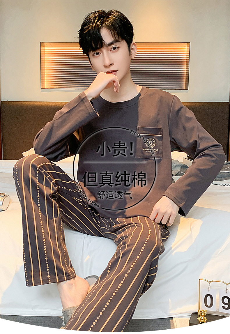 Pijamas de algodón para hombres de primavera y otoño de manga larga delgada Juventud de mediana edad casual de algodón suelto más el tamaño de desgaste para el hogar traje de hombre