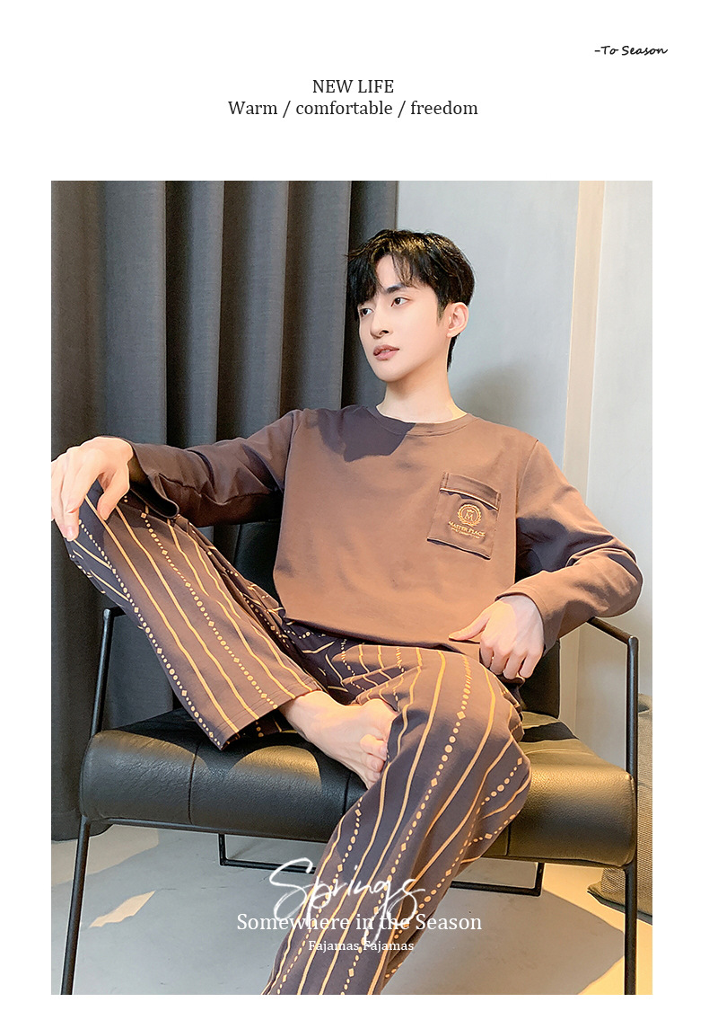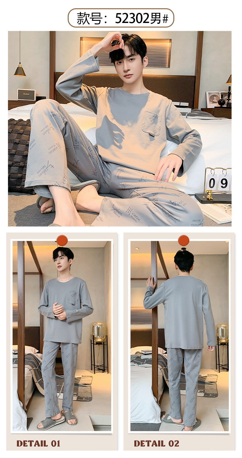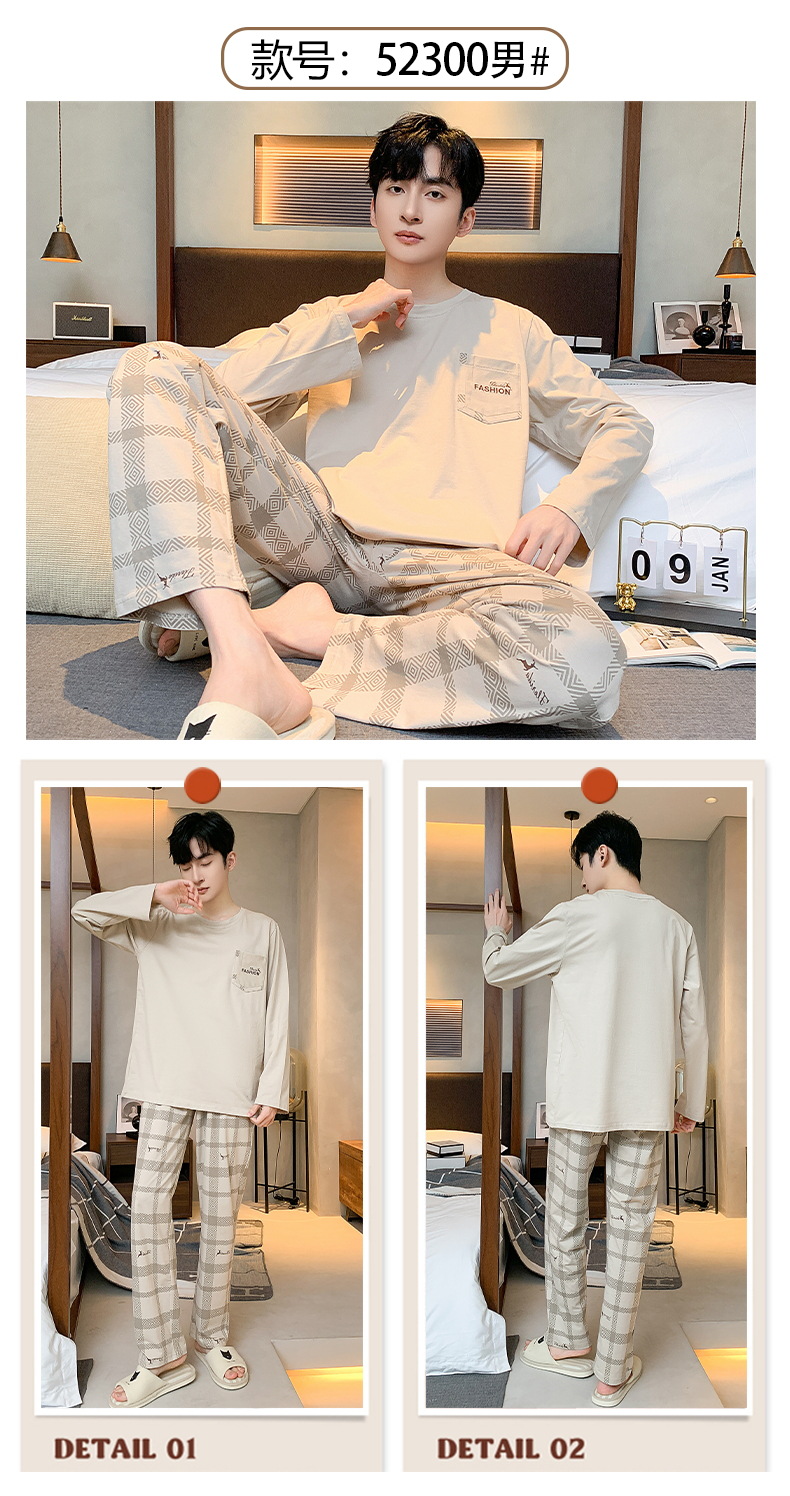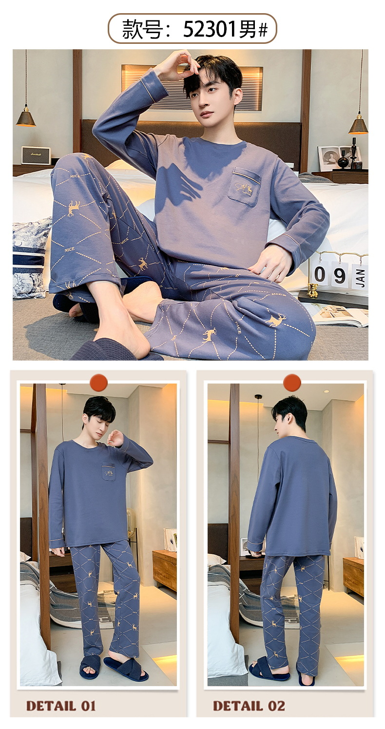 Pijamas de algodón para hombres de primavera y otoño de manga larga delgada Juventud de mediana edad casual de algodón suelto más el tamaño de desgaste para el hogar traje de hombre