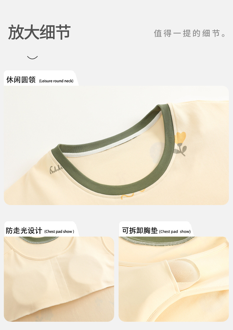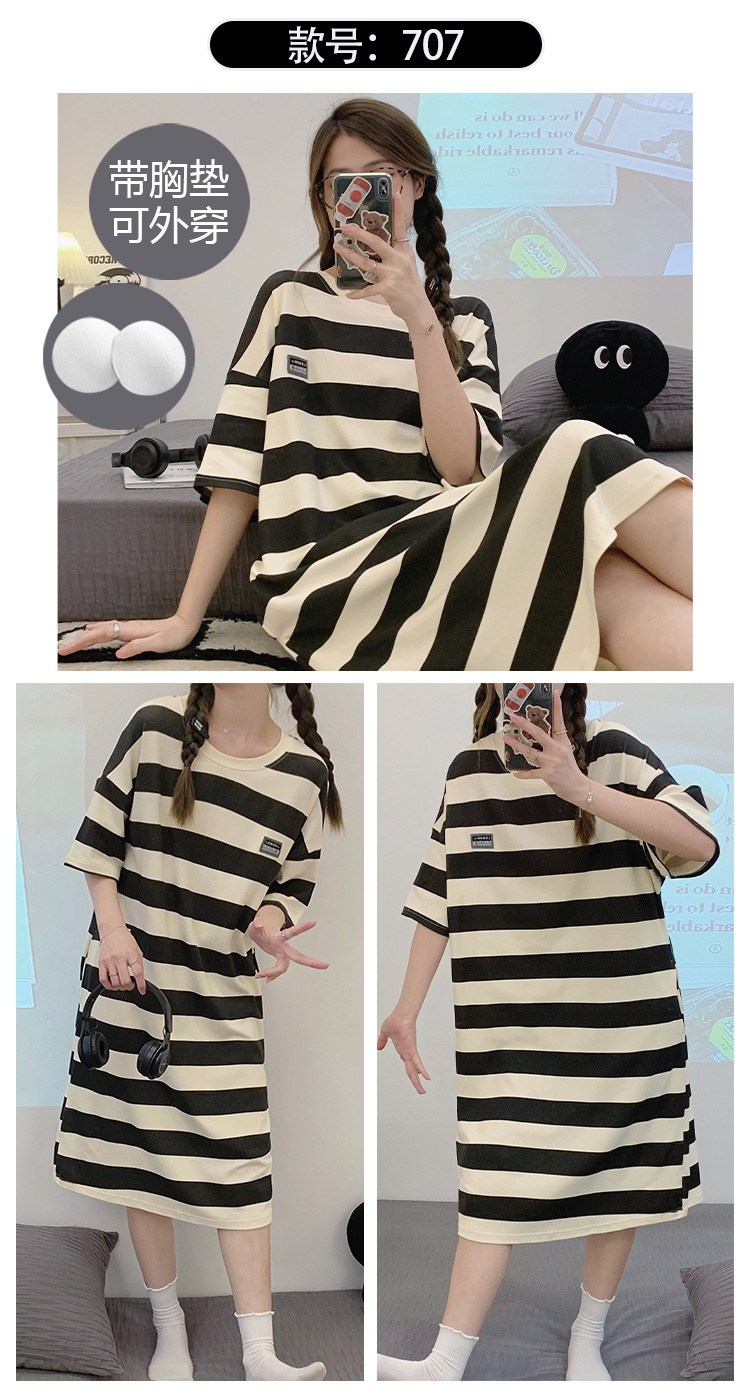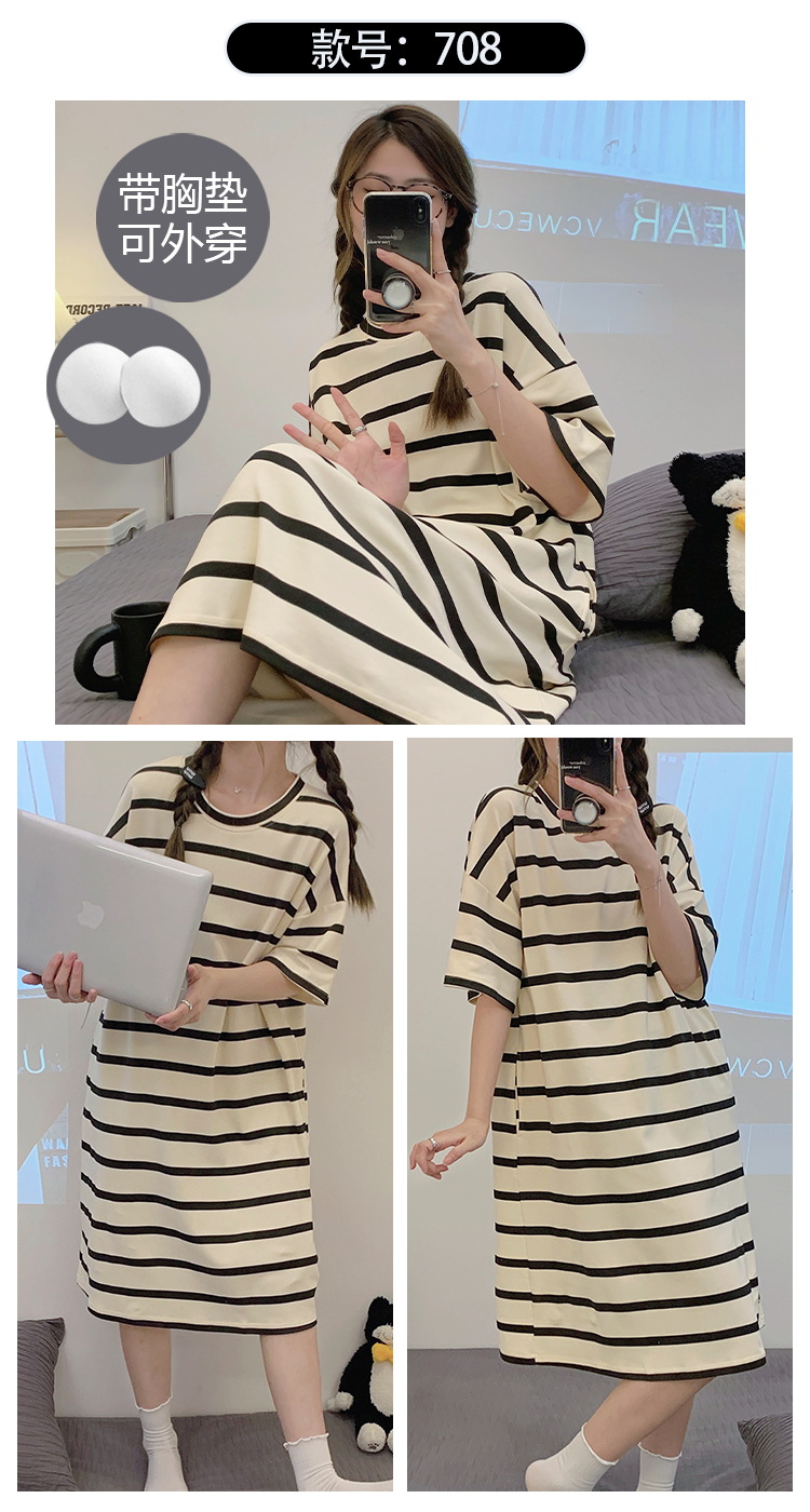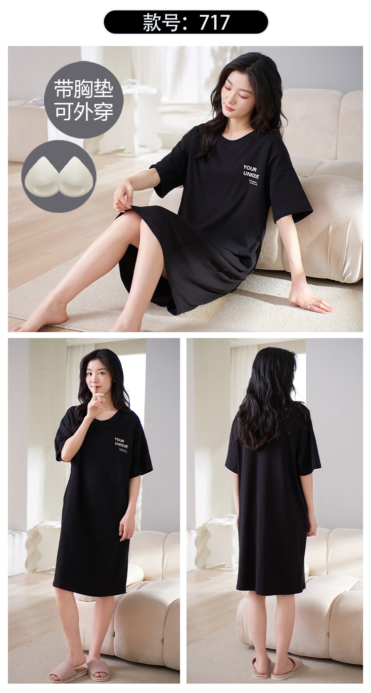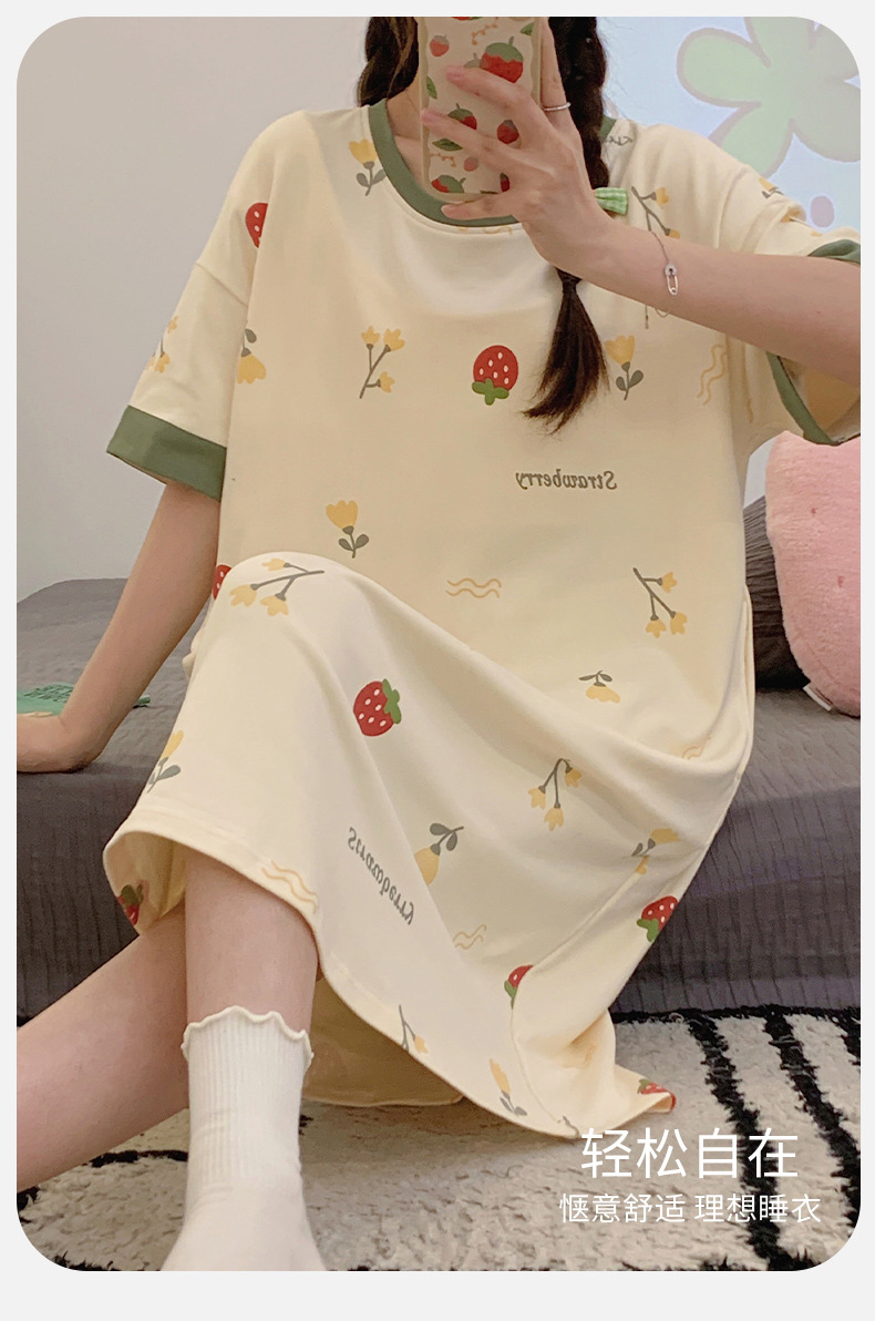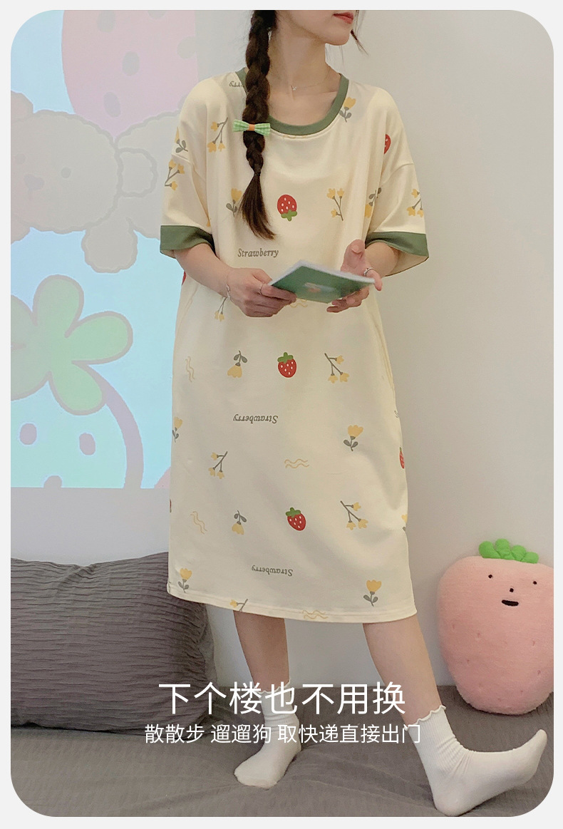 Pijamas con almohadillas para el pecho para mujer, vestido de verano de algodón puro de manga corta y largo medio con dibujos animados, pijamas por encima de la rodilla para mujer, nuevo estilo 2025