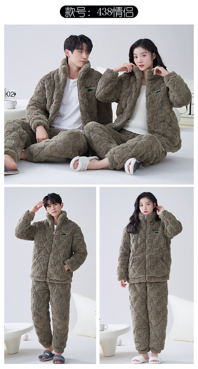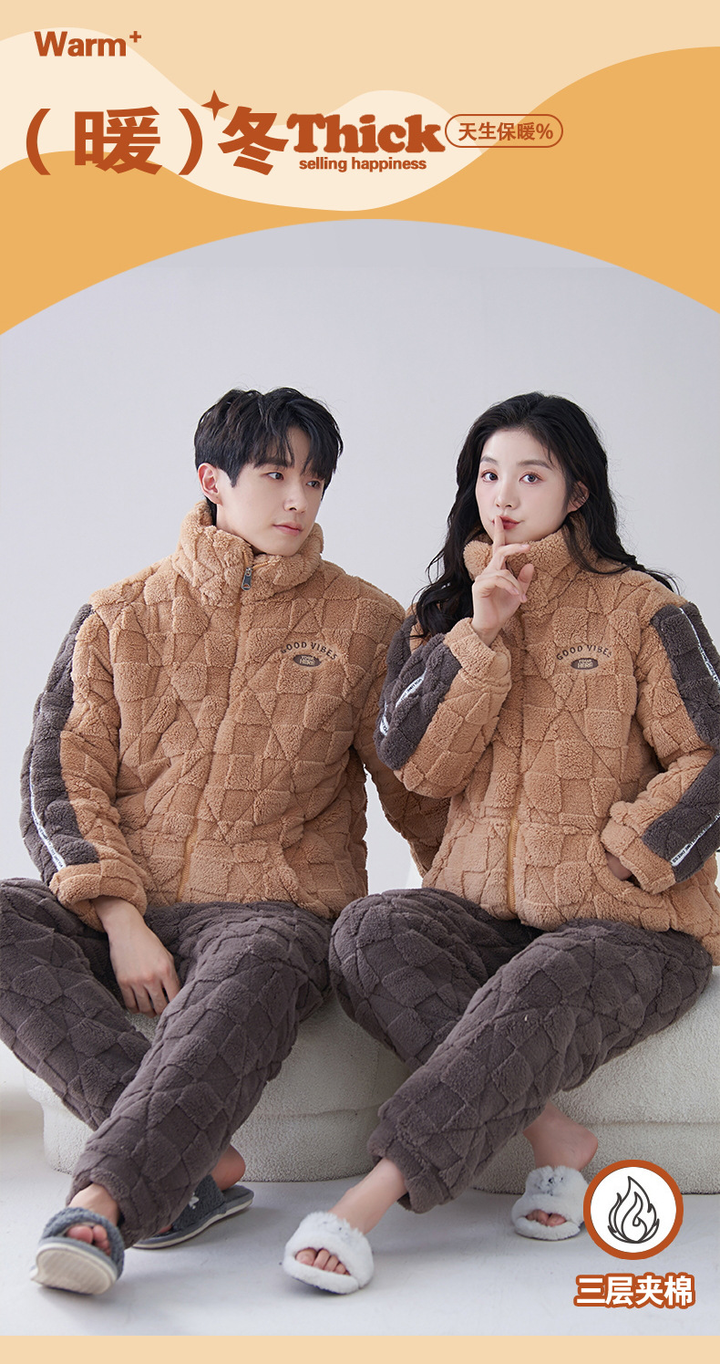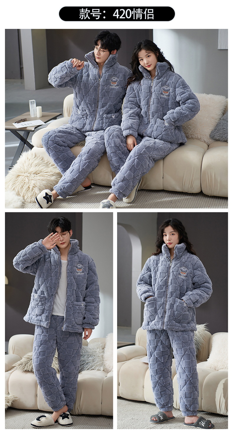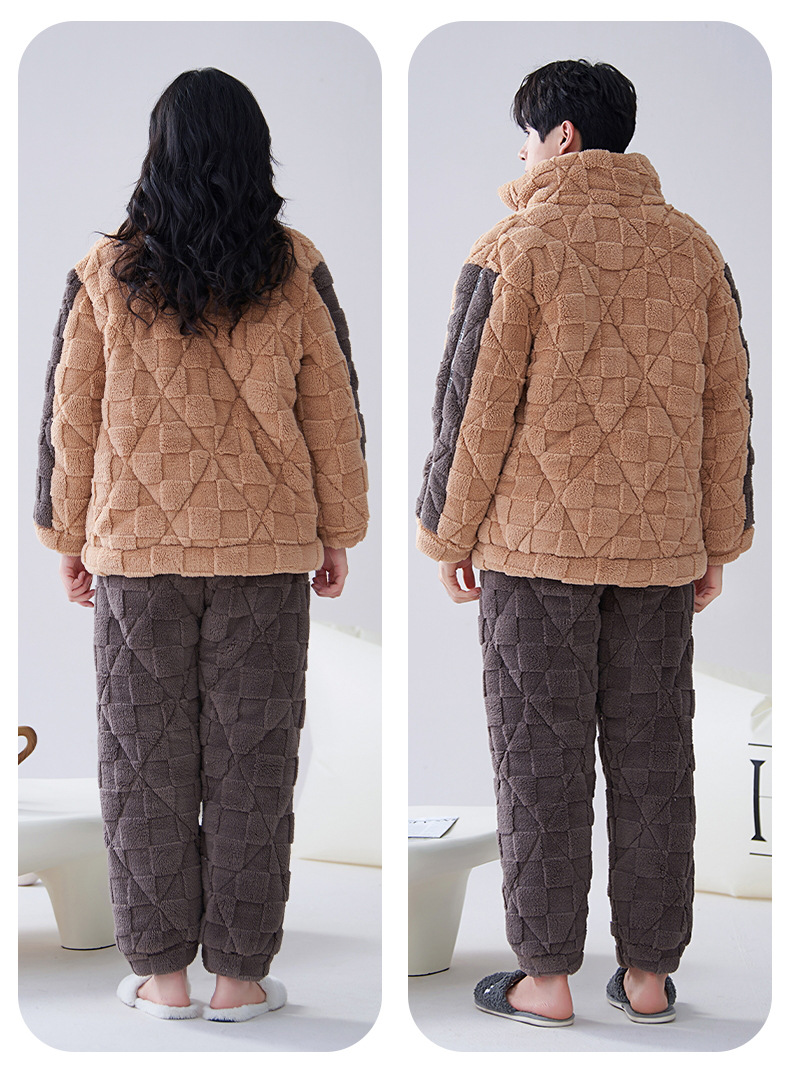 Pijamas acolchados de algodón para pareja de invierno de los hombres de tres capas engrosadas cálidas de las mujeres más el tamaño simple casual Otoño e Invierno traje de desgaste para el hogar