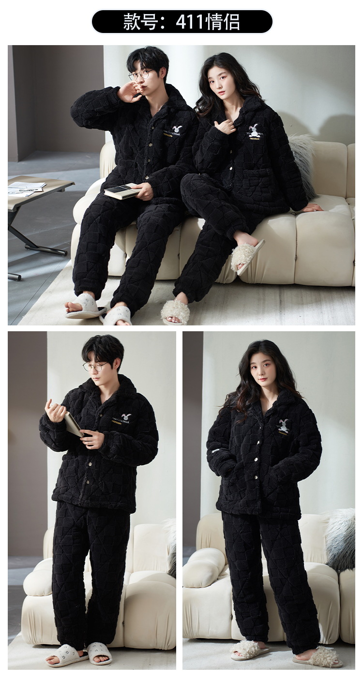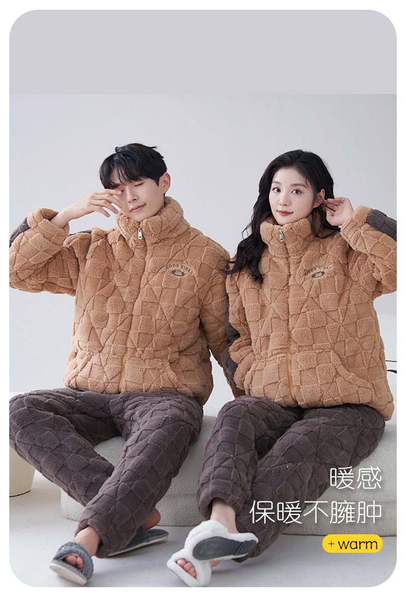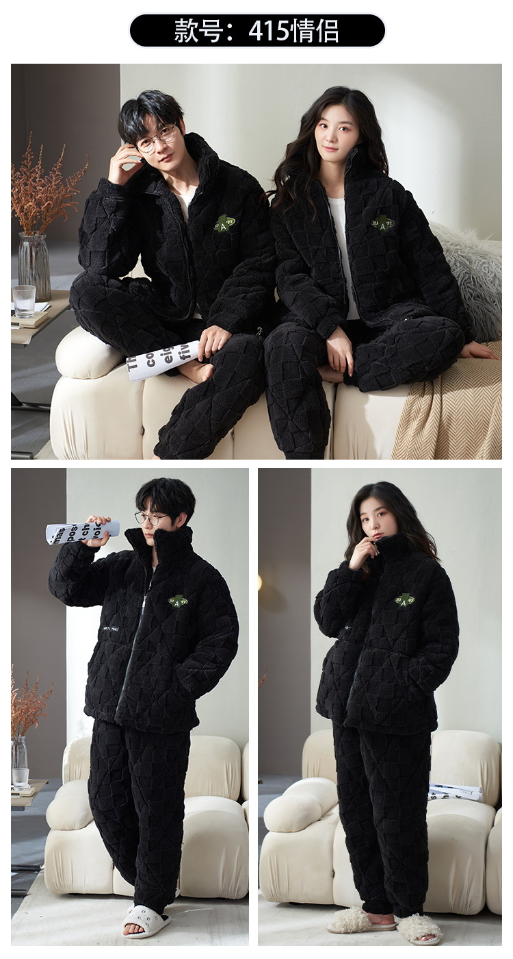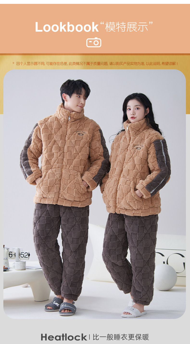 Pijamas acolchados de algodón para pareja de invierno de los hombres de tres capas engrosadas cálidas de las mujeres más el tamaño simple casual Otoño e Invierno traje de desgaste para el hogar
