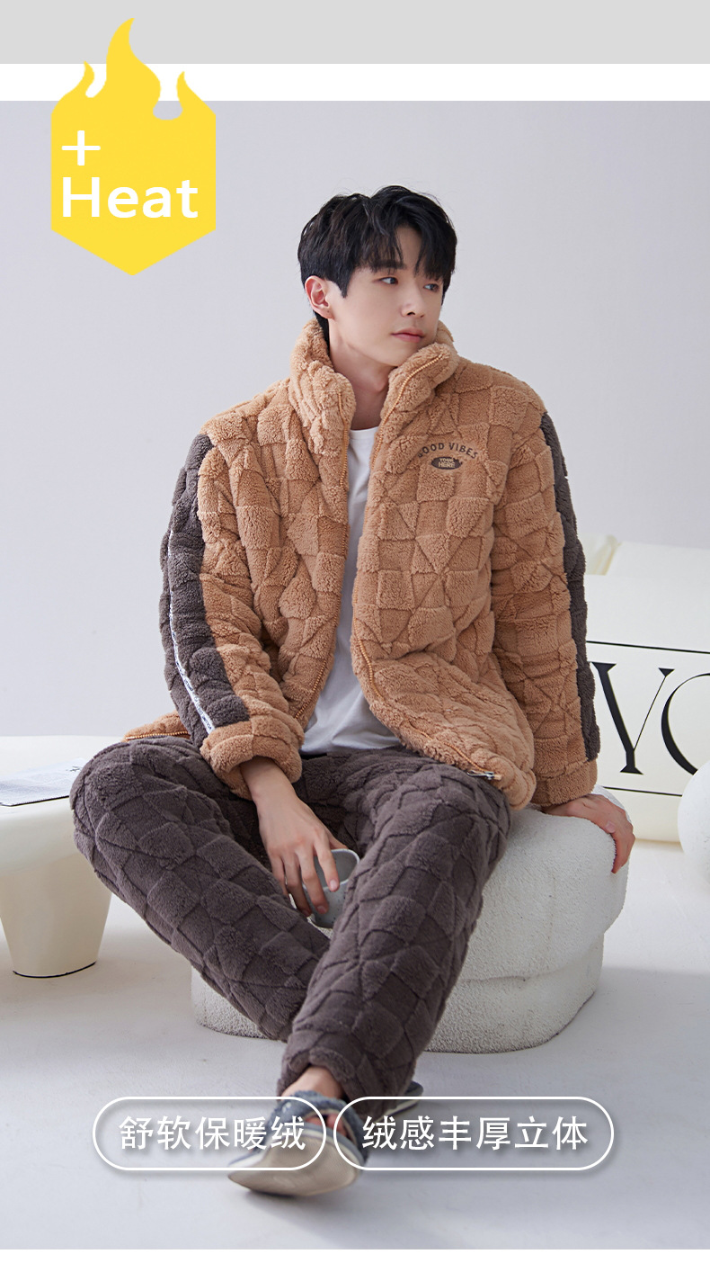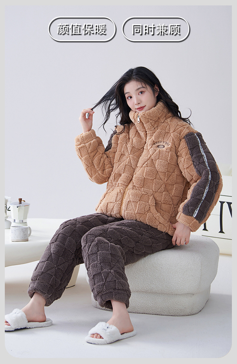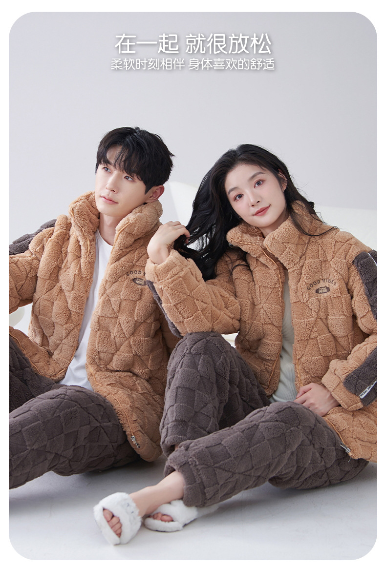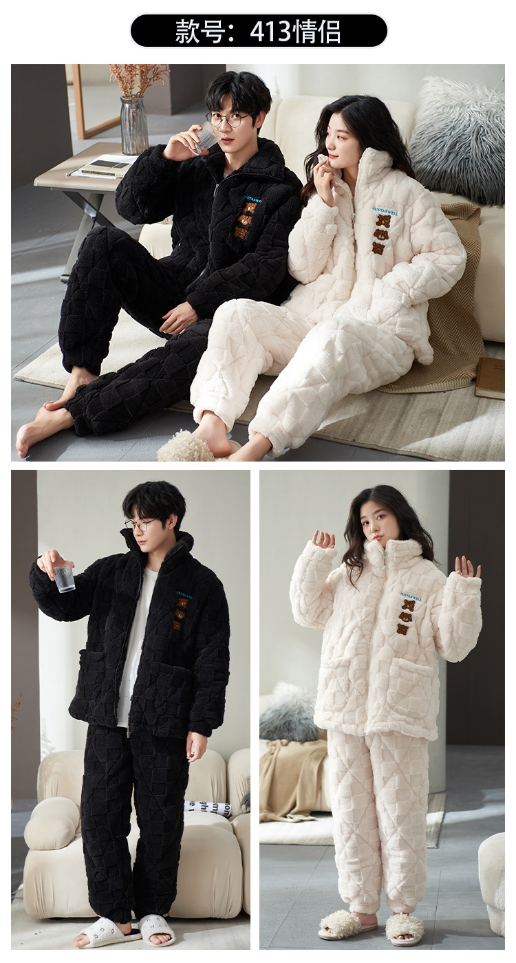 Pijamas acolchados de algodón para pareja de invierno de los hombres de tres capas engrosadas cálidas de las mujeres más el tamaño simple casual Otoño e Invierno traje de desgaste para el hogar