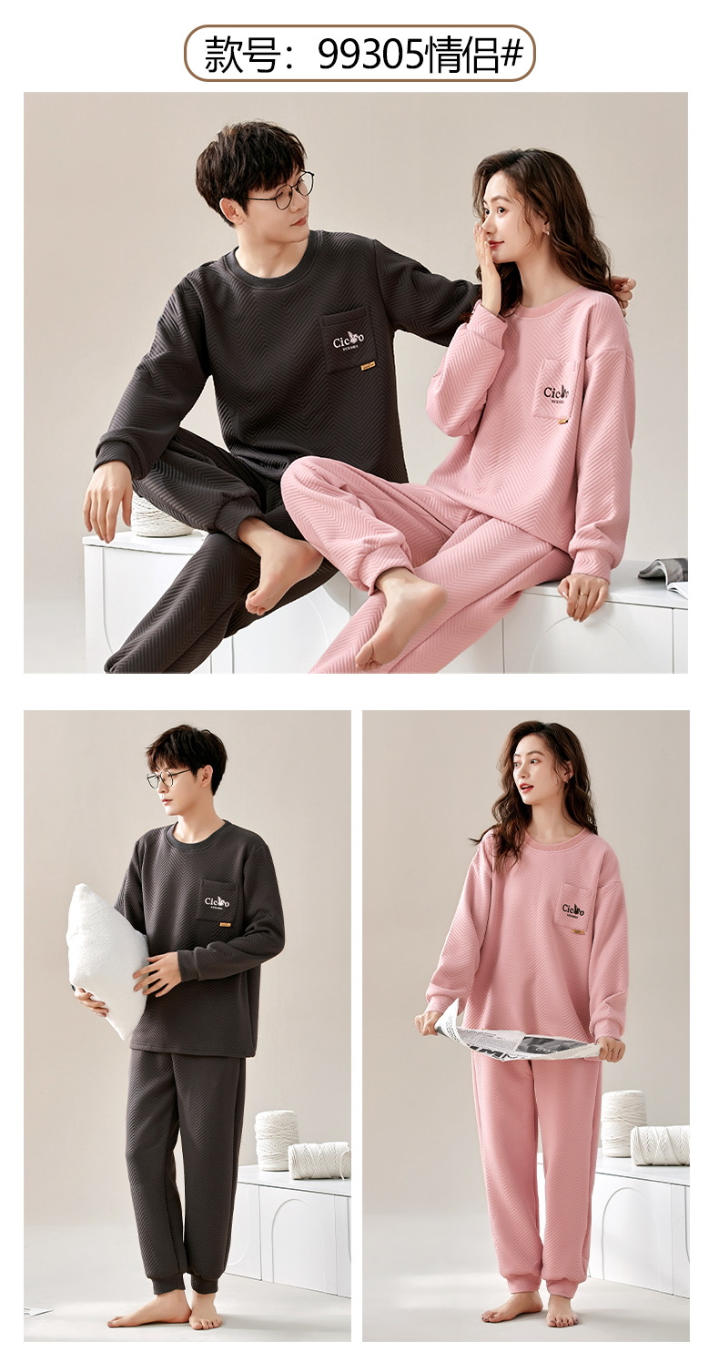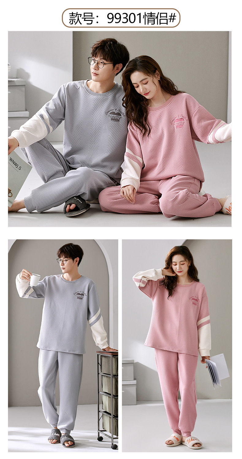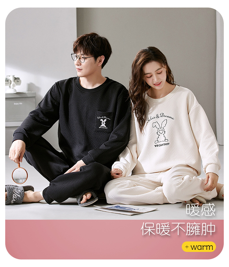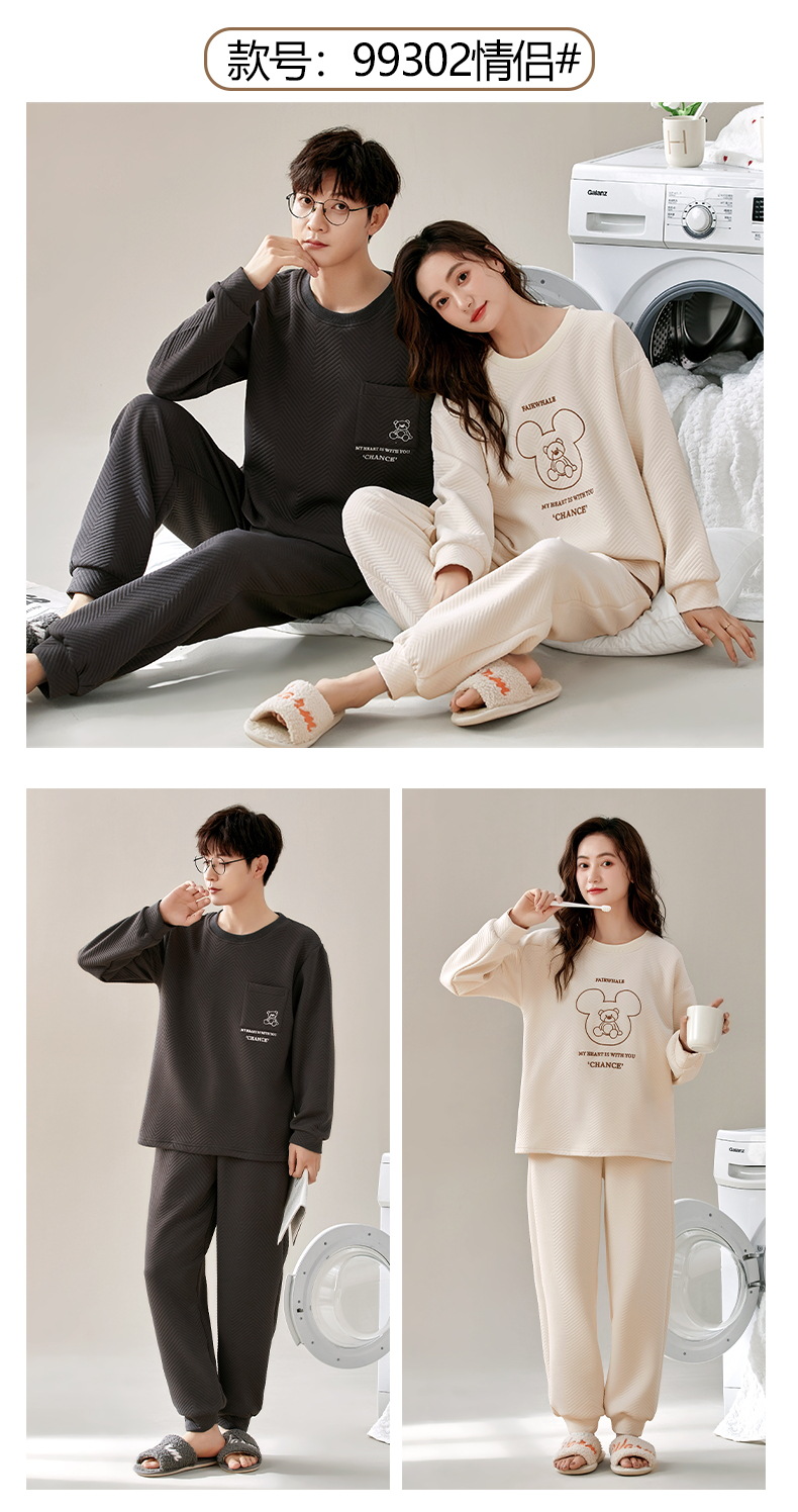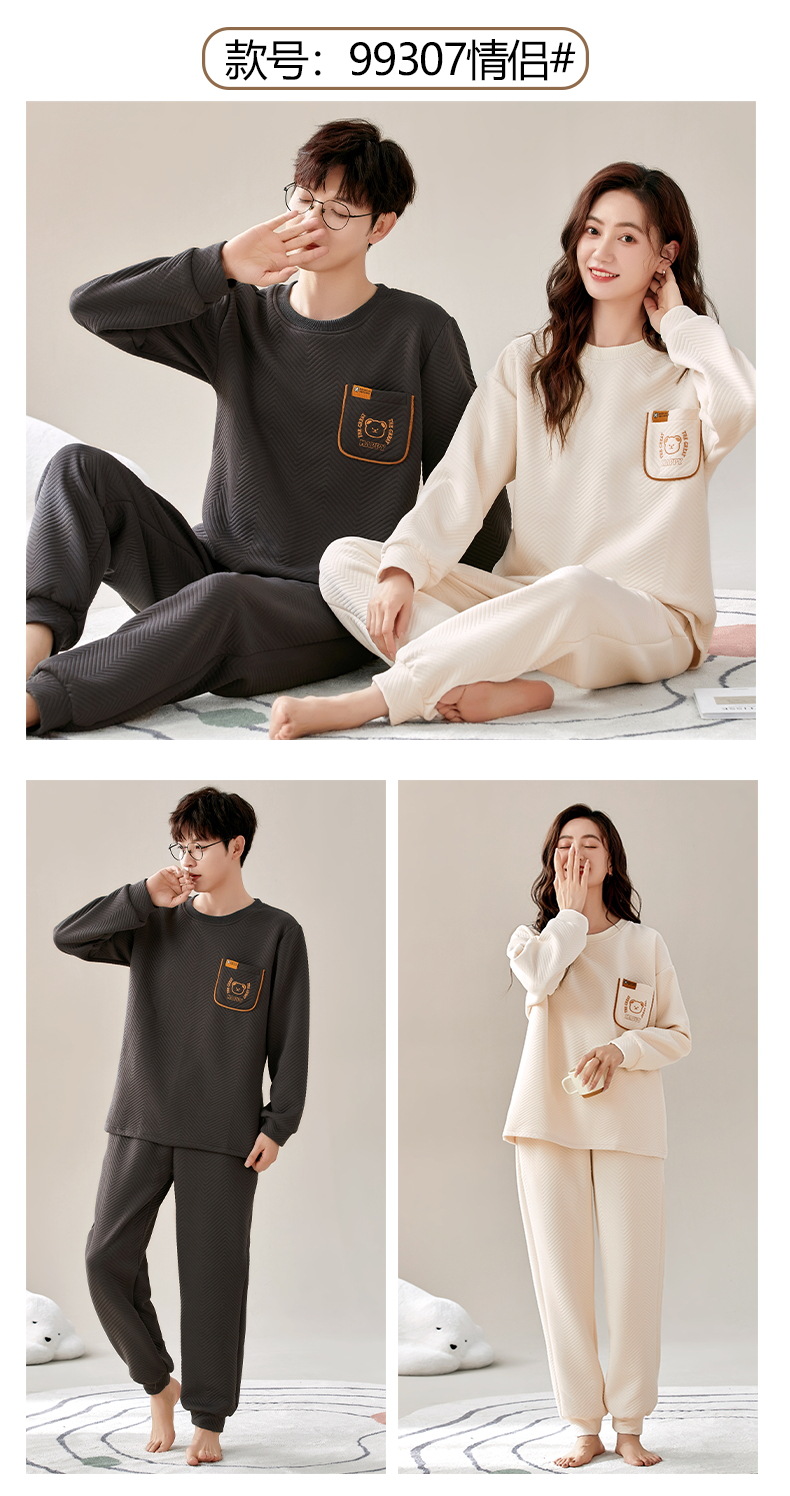 El otoño y el invierno sándwich de manga larga pareja pijamas engrosada de dibujos animados cuello redondo jersey de los hombres y las mujeres de ropa de casa caliente se puede usar fuera