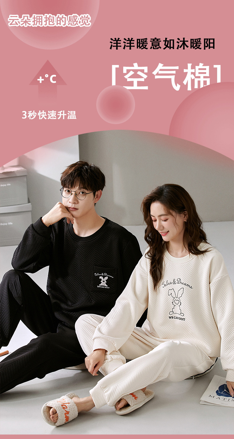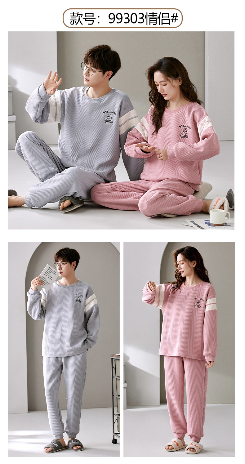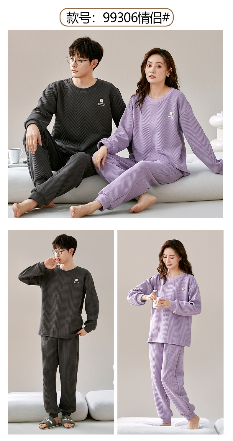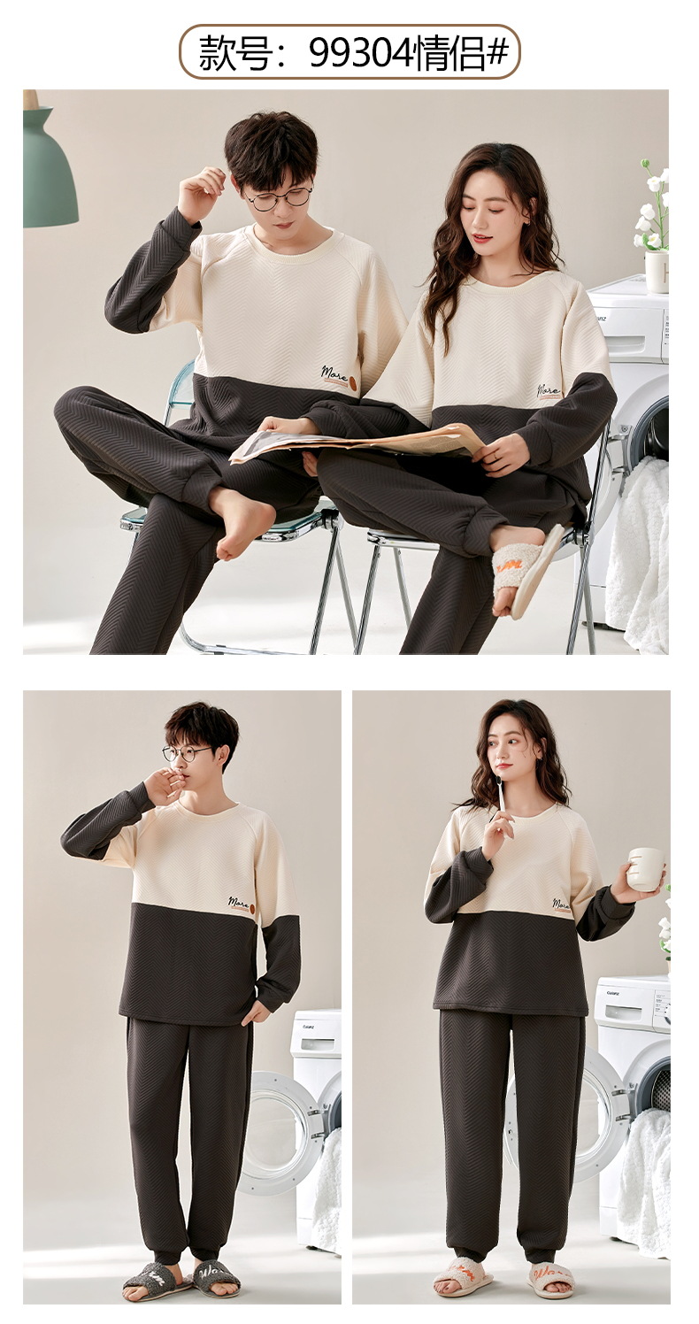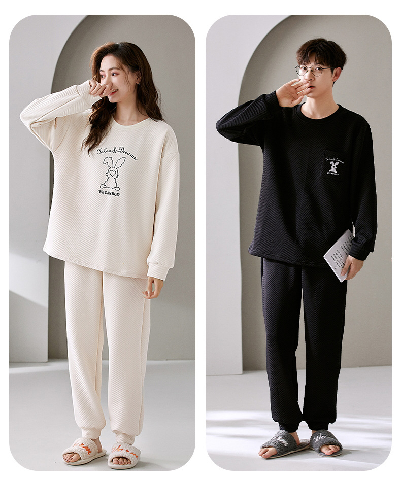 El otoño y el invierno sándwich de manga larga pareja pijamas engrosada de dibujos animados cuello redondo jersey de los hombres y las mujeres de ropa de casa caliente se puede usar fuera