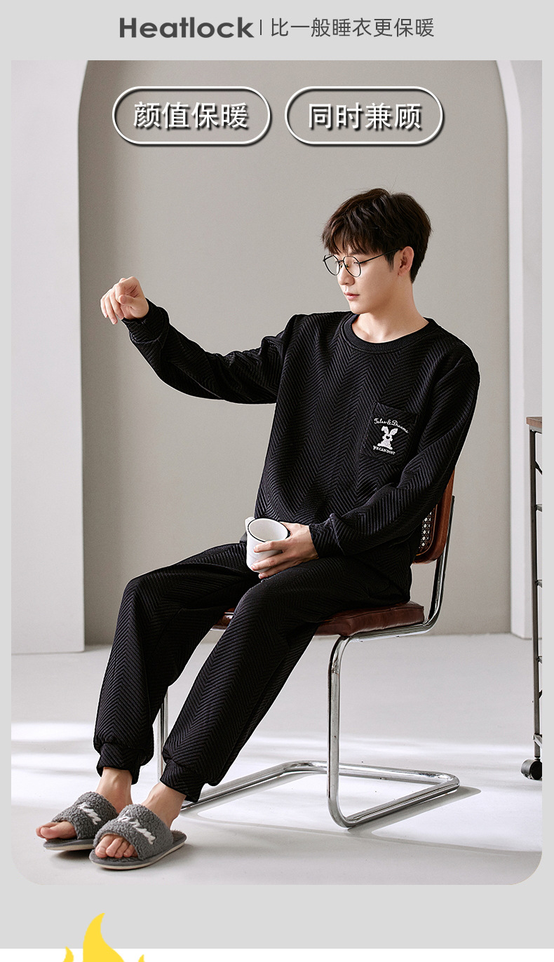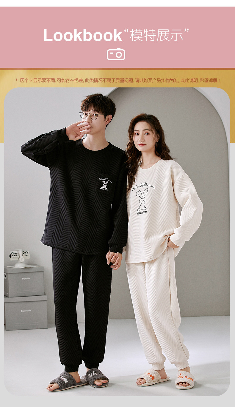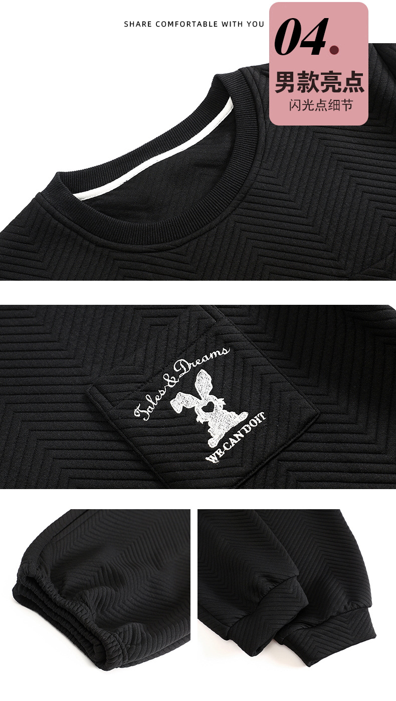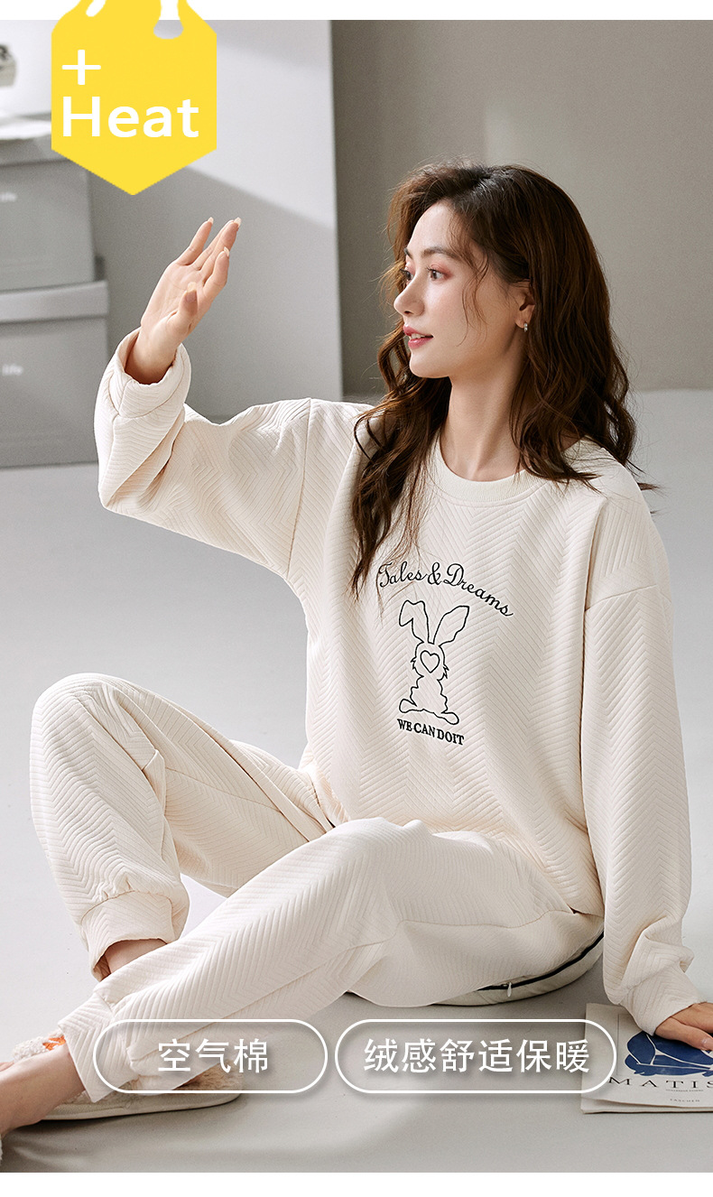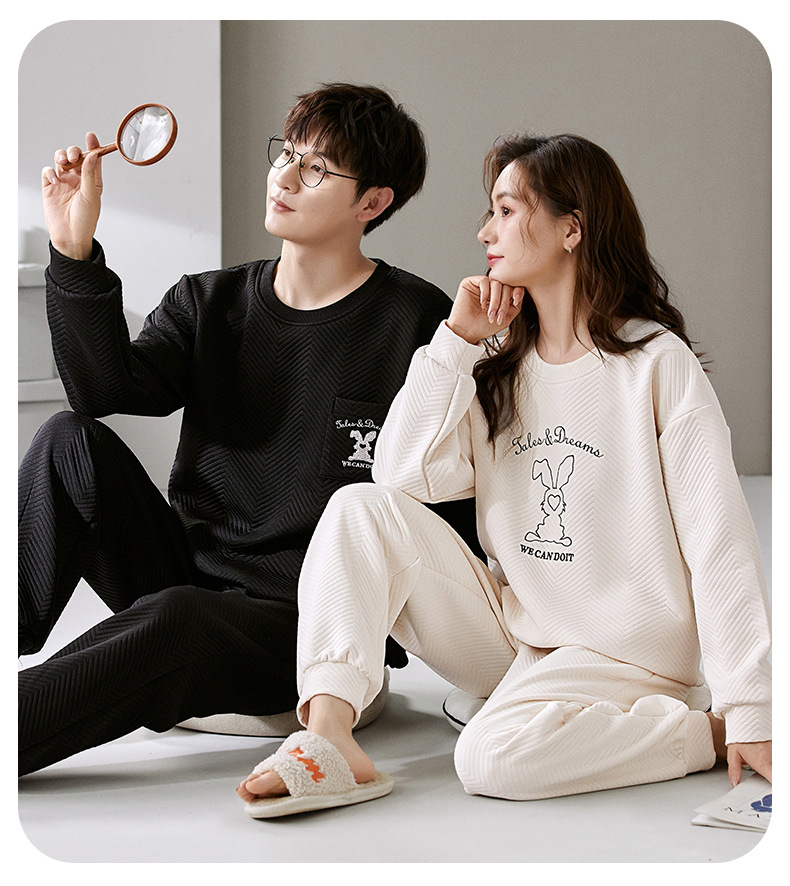 El otoño y el invierno sándwich de manga larga pareja pijamas engrosada de dibujos animados cuello redondo jersey de los hombres y las mujeres de ropa de casa caliente se puede usar fuera